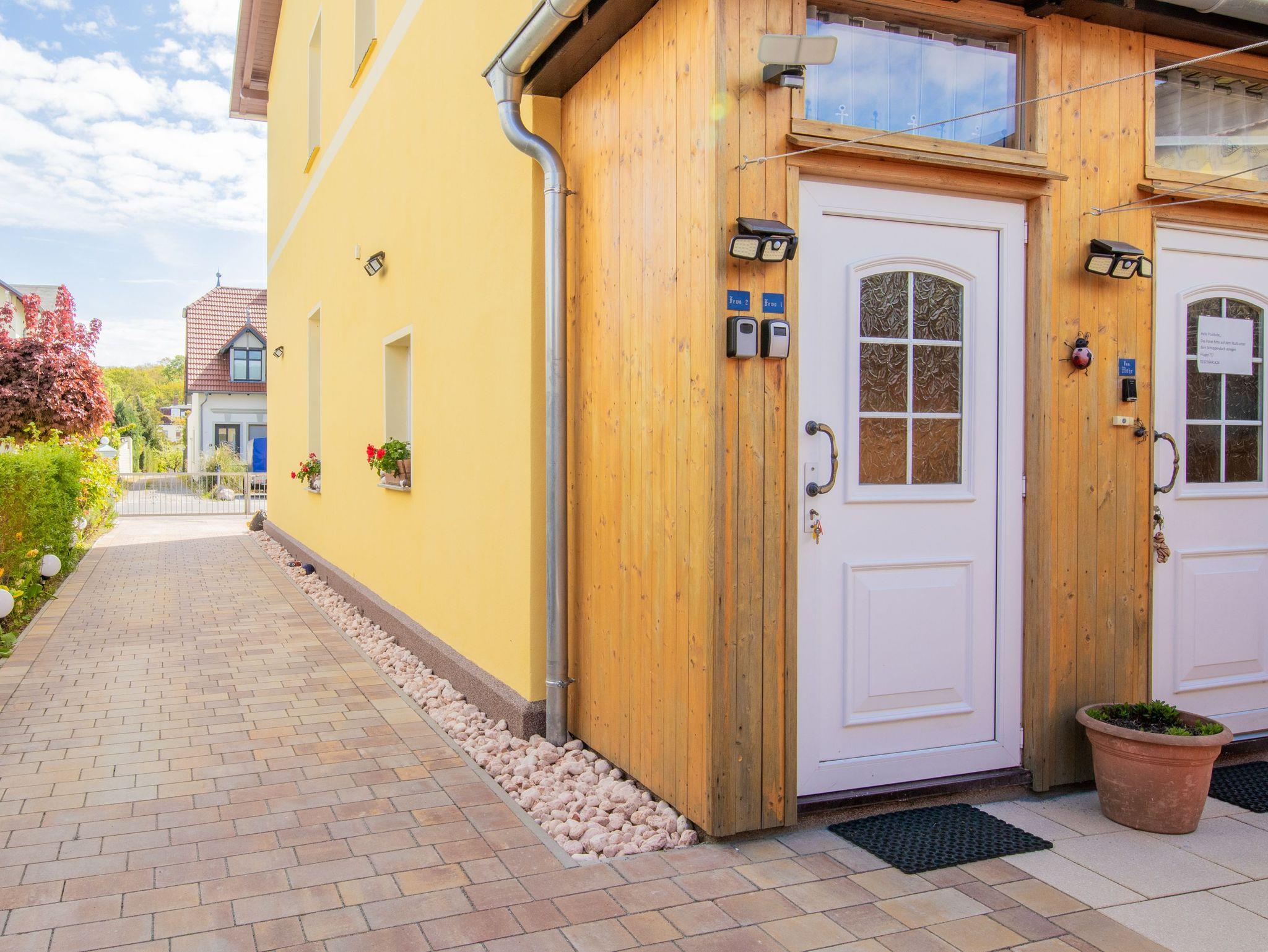Möhrchens Ferienwohnungen in Zinnowitz bieten zwei gepflegte Unterkünfte für jeweils 2 Personen und eignen sich bestens für einen entspannten Urlaub an der Ostsee. Beide Ferienwohnungen befinden sich in einem ruhig gelegenen Haus in einer verkehrsberuhigten Straße - nur rund 750Meter vom Strand entfernt. Die Ferienwohnung 1 liegt im Obergeschoss und bietet auf ca. 50m² ein separates Schlafzimmer mit Doppelbett, ein gemütliches Wohnzimmer, eine voll ausgestattete Küche sowie ein Bad mit Badewanne. Im Außenbereich steht dir eine kleine Terrasse mit Sitzgelegenheiten zur Verfügung. Auch ein Fahrradschuppen kann mitgenutzt werden. Ferienwohnung 2, ein kompaktes Apartment mit Pantryküche, befindet sich ebenfalls im Obergeschoss - oberhalb deiner Vermieter. Sie verfügt über ein Wohnzimmer mit integrierter Kochzeile und ein angrenzendes Schlafzimmer mit Doppelbett. Das dazugehörige Badezimmer liegt direkt gegenüber auf dem Flur - gut erreichbar und ausschließlich zur Wohnung gehörend. Beide Ferienwohnungen sind über einen separaten Eingang auf der Rückseite des Hauses zugänglich und teilen sich das Treppenhaus. Auf dem umzäunten Hof stehen dir eigene Parkplätze zur Verfügung. Die zentrale, aber ruhige Lage macht Möhrchens Ferienwohnungen zu einem angenehmen Ausgangspunkt für deinen Urlaub an der Ostsee.