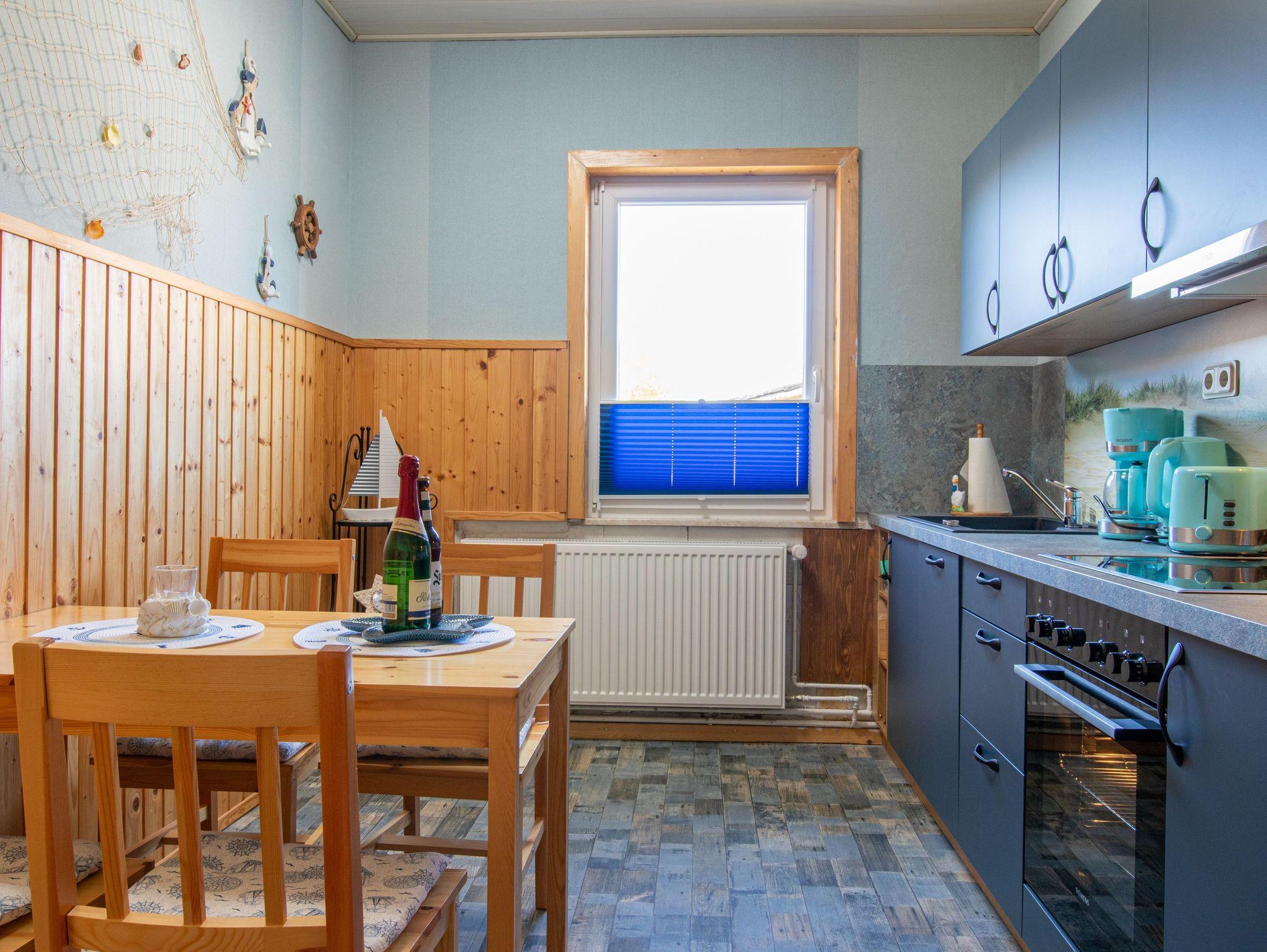 Die 50m² große Ferienwohnung 1 befindet sich im Obergeschoss des Hauses und bietet Platz für bis zu 2 Personen. Über eine Treppe gelangst du in dein Zuhause auf Zeit, das mit einer freundlichen, gemütlichen Ausstattung überzeugt. Das helle Wohnzimmer ist mit einem Sofa, bequemen Sesseln und TV ausgestattet - ideal zum Entspannen nach einem Tag am Strand. Durch eine Schiebetür erreichst du das separate Schlafzimmer mit Doppelbett (180x200), Nachttischen und einem geräumigen Kleiderschrank. In der separaten Küche findest du alles, was du für eine entspannte Selbstversorgung brauchst: eine voll ausgestattete Küchenzeile mit Backofen, Kühlschrank, Spülmaschine, Kaffeemaschine, Toaster, Wasserkocher und einen Esstisch für zwei Personen. Das Badezimmer verfügt über eine Badewanne, ein Waschbecken und eine Toilette. Ein kostenloser Parkplatz und eine Fahrradunterstellmöglichkeit stehen dir kostenlos auf dem umzäunten Hof zur Verfügung.