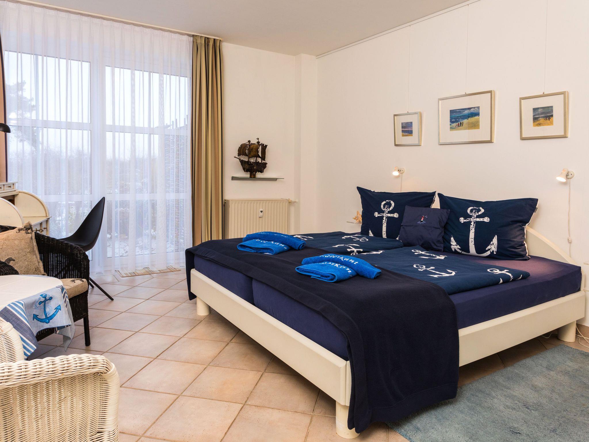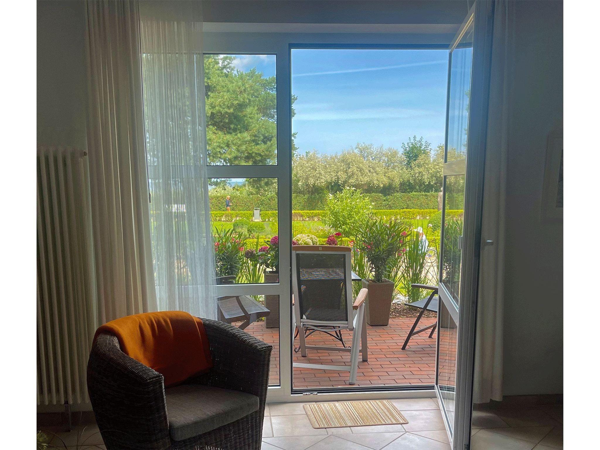 Die 2-Raum-Komfort-Ferienwohnung ist ca. 68qm groß und befindet sich im Erdgeschoss des Hauses. Der großzügige Wohn-Essbreich ist mit einer gemütlichen Couch und Sesseln sowie einem Flat-TV ausgestattet und schließt sich an die offene und vollausgestattete Küchenzeile mit Backofen, Cerankochfeld, Kühlschrank mit Gefrierfach, Mikrowelle, Kaffeemaschine, Wasserkocher und Toaster an. Das Schlafzimmer verfügt über ein Doppelbett, Einbauschrank, Safe, Bügelbrett und Bügeleisen. Das Badezimmer ist mit einer Dusche, Haartrockner und Kosmetikspiegel ausgestattet. Das WC ist separat vom Badezimmer. Vom Wohnzimmer aus erreichen Sie die schöne, grüne, vollmöblierte Terrasse mit Meerblick. Die Wohnung verfügt über einen kostenfreien Internetzugang via W-LAN. Alle Fenster sind zur Strandpromenade und der Ostsee ausgerichtet. Für allgemeine Fragen steht Ihnen der Hausmeister vor Ort gerne zur Verfügung.