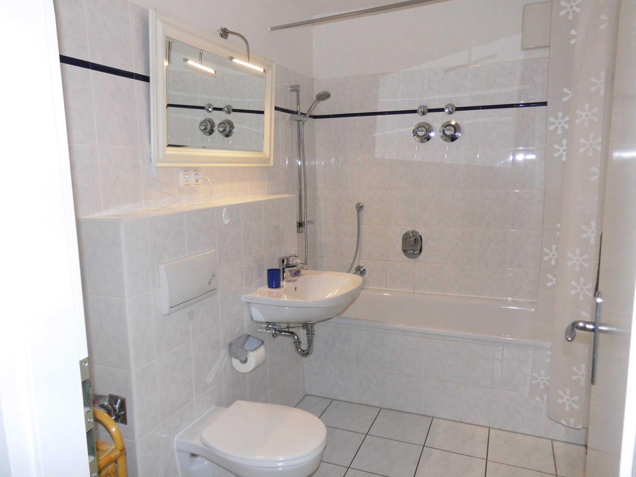 Die Parterre-Wohnung hat eine Terrasse die nach Süden ausgerichtet ist; mit 4 Terrassenstühlen, Tisch und Sonnenschirm. Die Wohnung ist hell und freundlich eingerichtet und verfügt über SAT-TV, CD-Player, und Radio. Eine gut ausgestattete Küche mit vollständigem Geschirr, Küchengeräten,Geschirrspüler, Kaffeemaschine, Wasserkocher und Toaster sind vorhanden. Schlafzimmer mit Doppelbett für 2 Personen; Wohnzimmer mit Schlafsofa für 2 Personen; Babyreisebett kann gemietet werden.