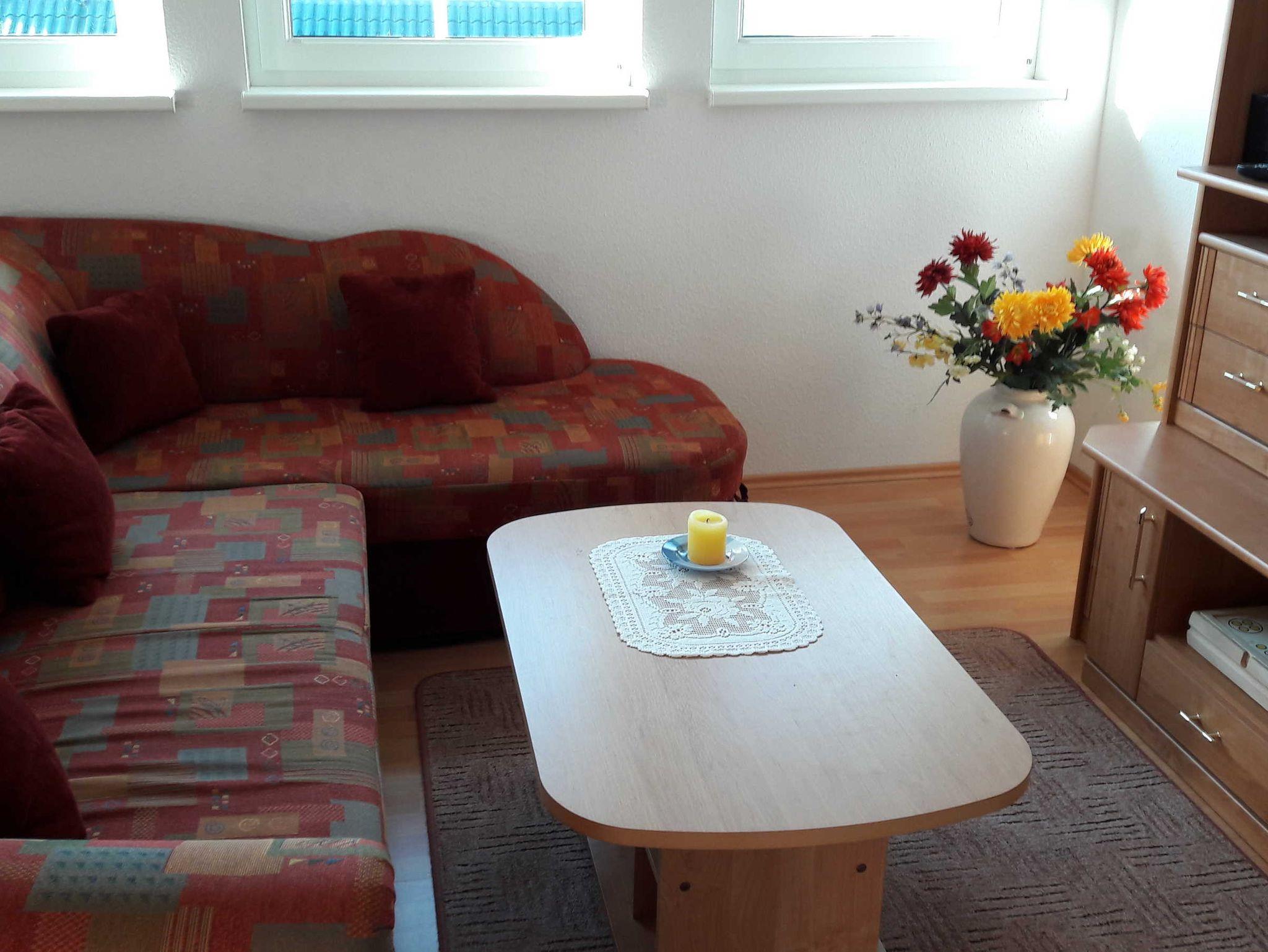 Schöne 3-Zimmer Ferienwohnung im 1.OG mit Balkon. Die Ferienwohnung hat einen sehr geräumigen Wohnbereich mit Elektrokamin und einen offenen Küchenbereich. Zu Ferienwohnung gehört außerdem ein Abstellschuppen und ein PKW-Stellplatz.