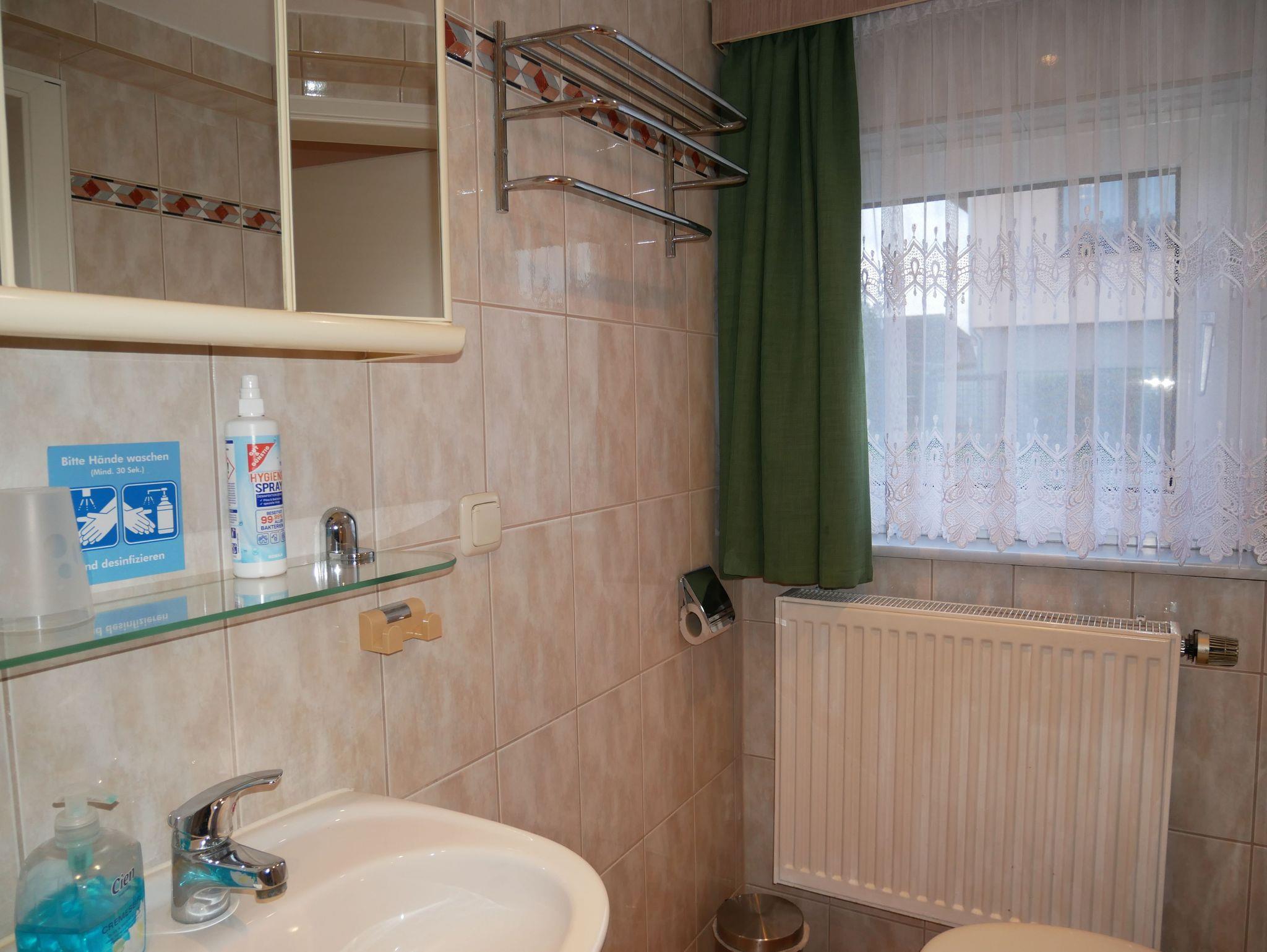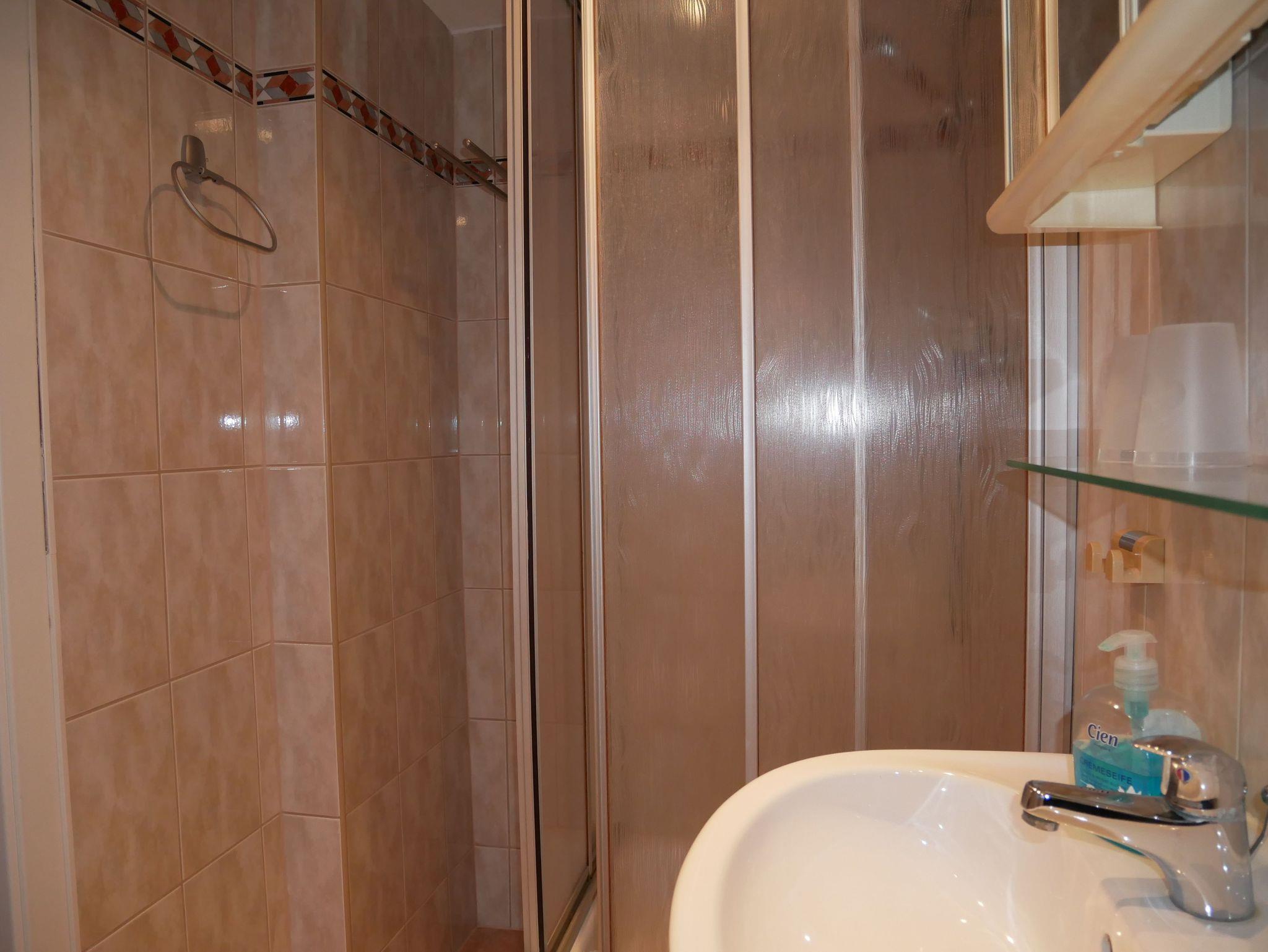 Das separate Badezimmer befindet sich im Ferienzimmer und ist mit einer Dusche ausgestattet.
