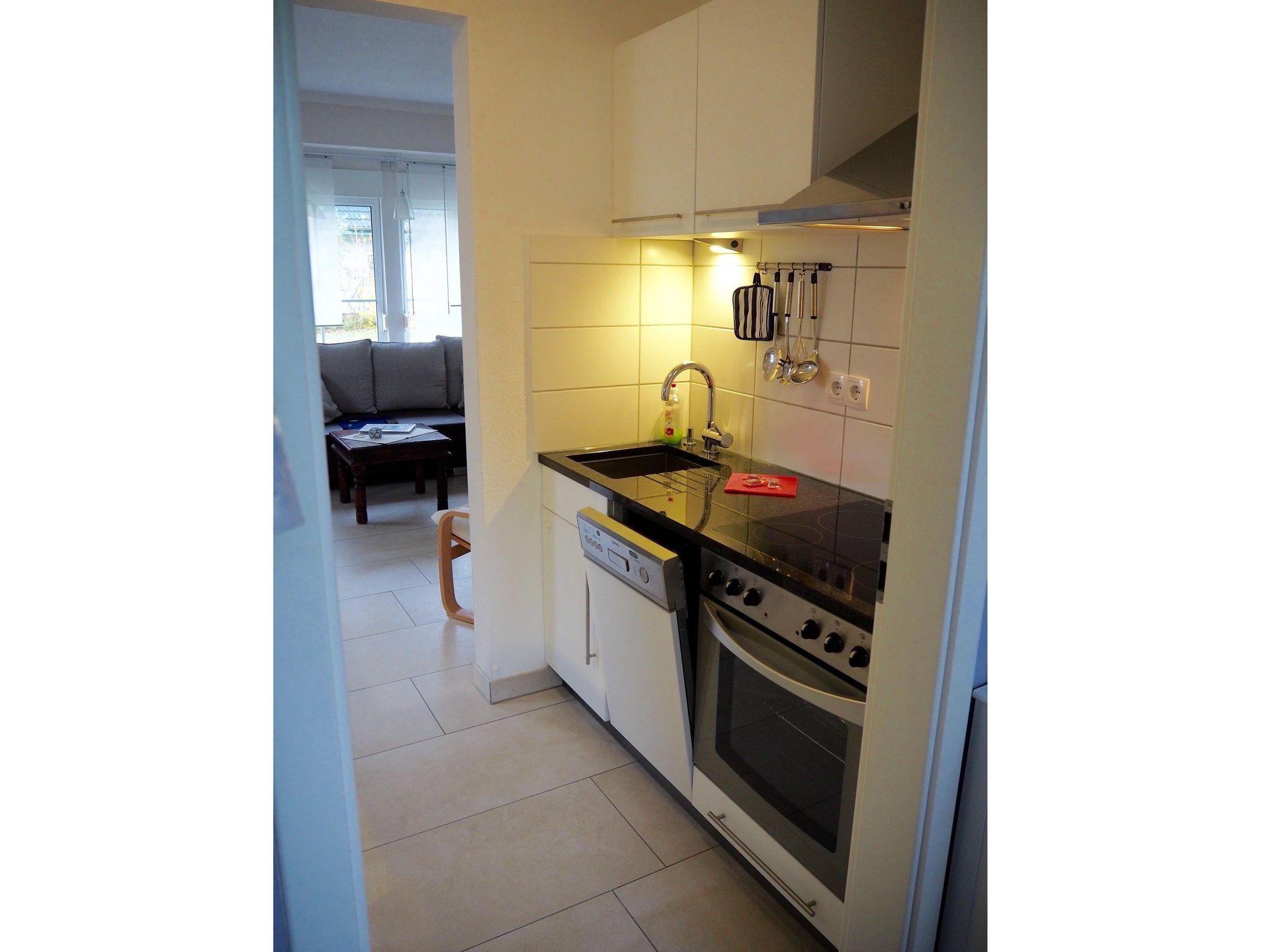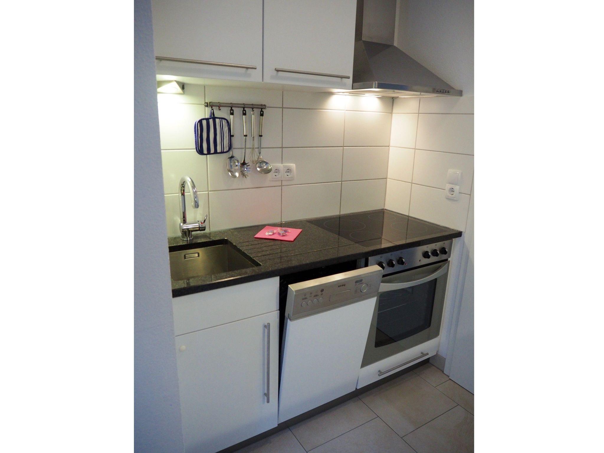 1 Küchenzeile mit Cerankochfeld, Backofen, Mikrowelle und Geschirrspüler