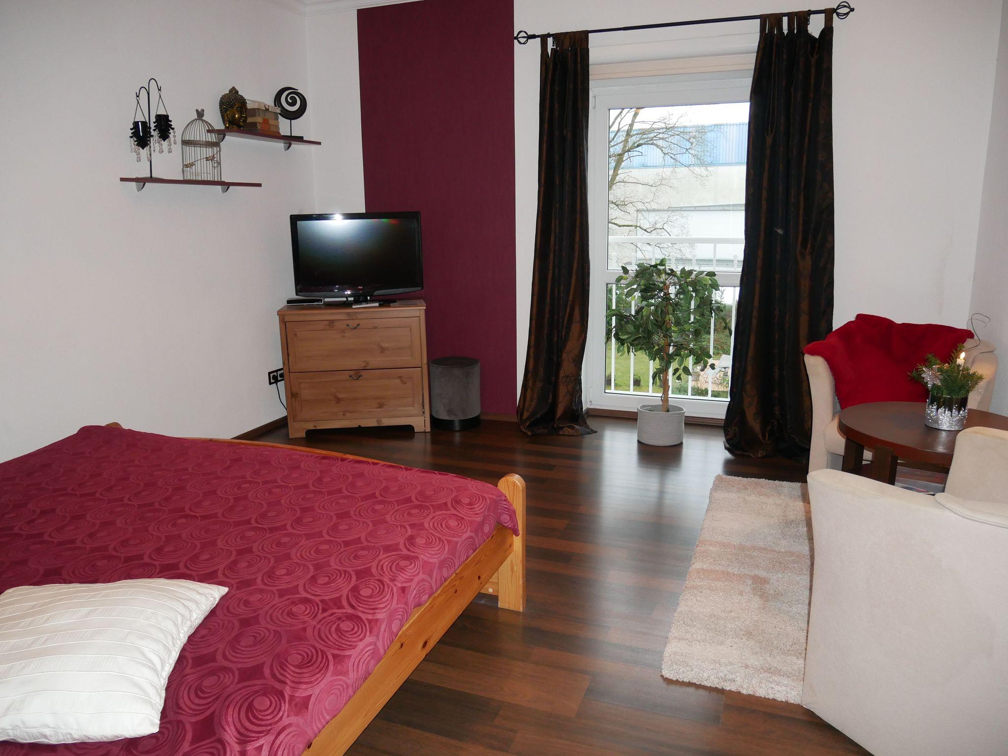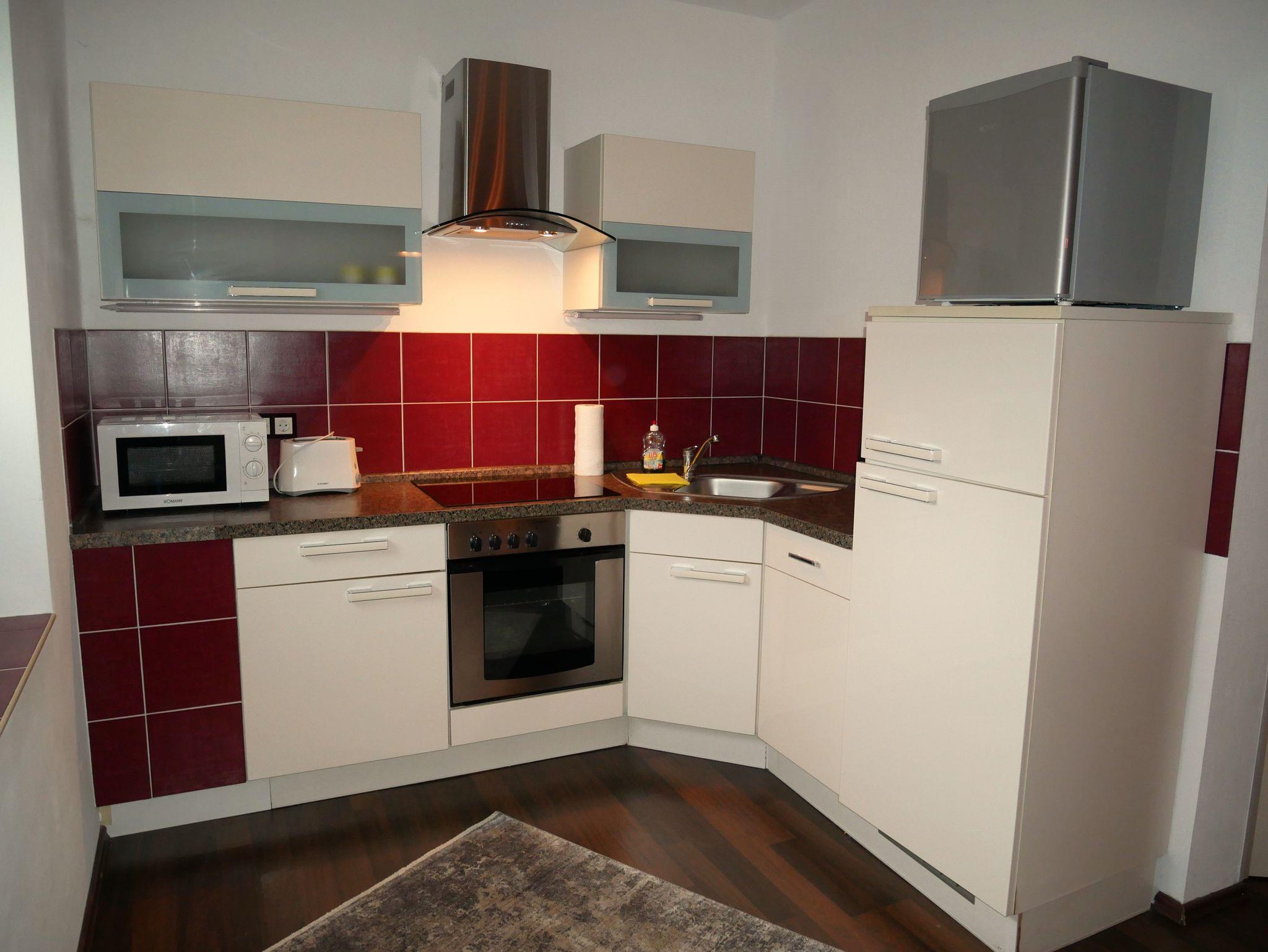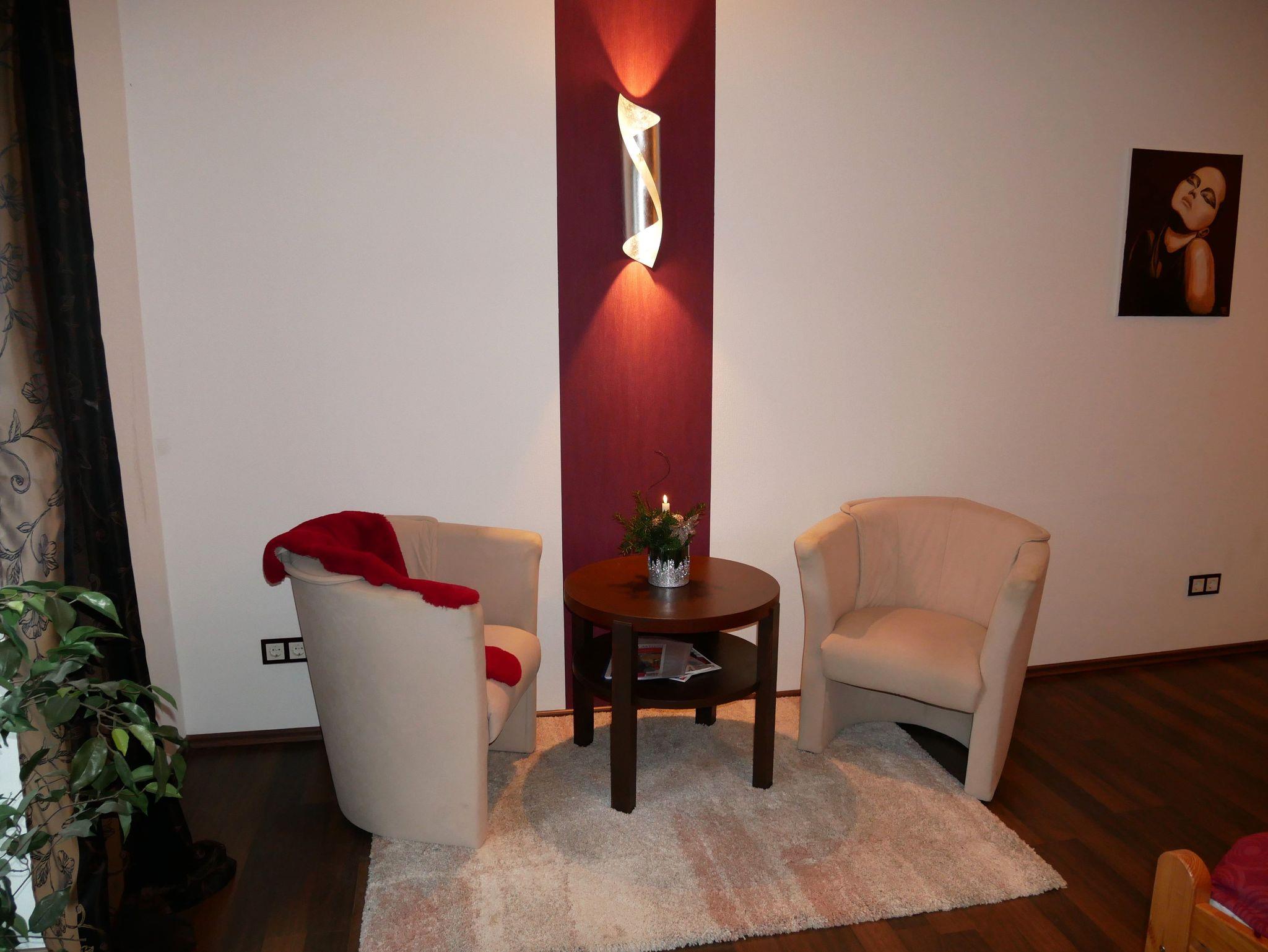 Neue kleine Luxusferienwohnung im Obergeschoss mit kombiniertem Wohn- und Schlafraum, mit geschmackvoller Innenausstattung für 2 Personen und mit moderner Lichtsteuerung. Die Wohnung verfügt über eine komplett ausgestattete offene Küche mit 4 Platten-Herd, Kühlschrank, Gefrierschrank, Spülmaschine und einer Sitzecke. Das schöne Badezimmer verfügt über Waschbecken, Dusche und WC. Ideal für Paare.