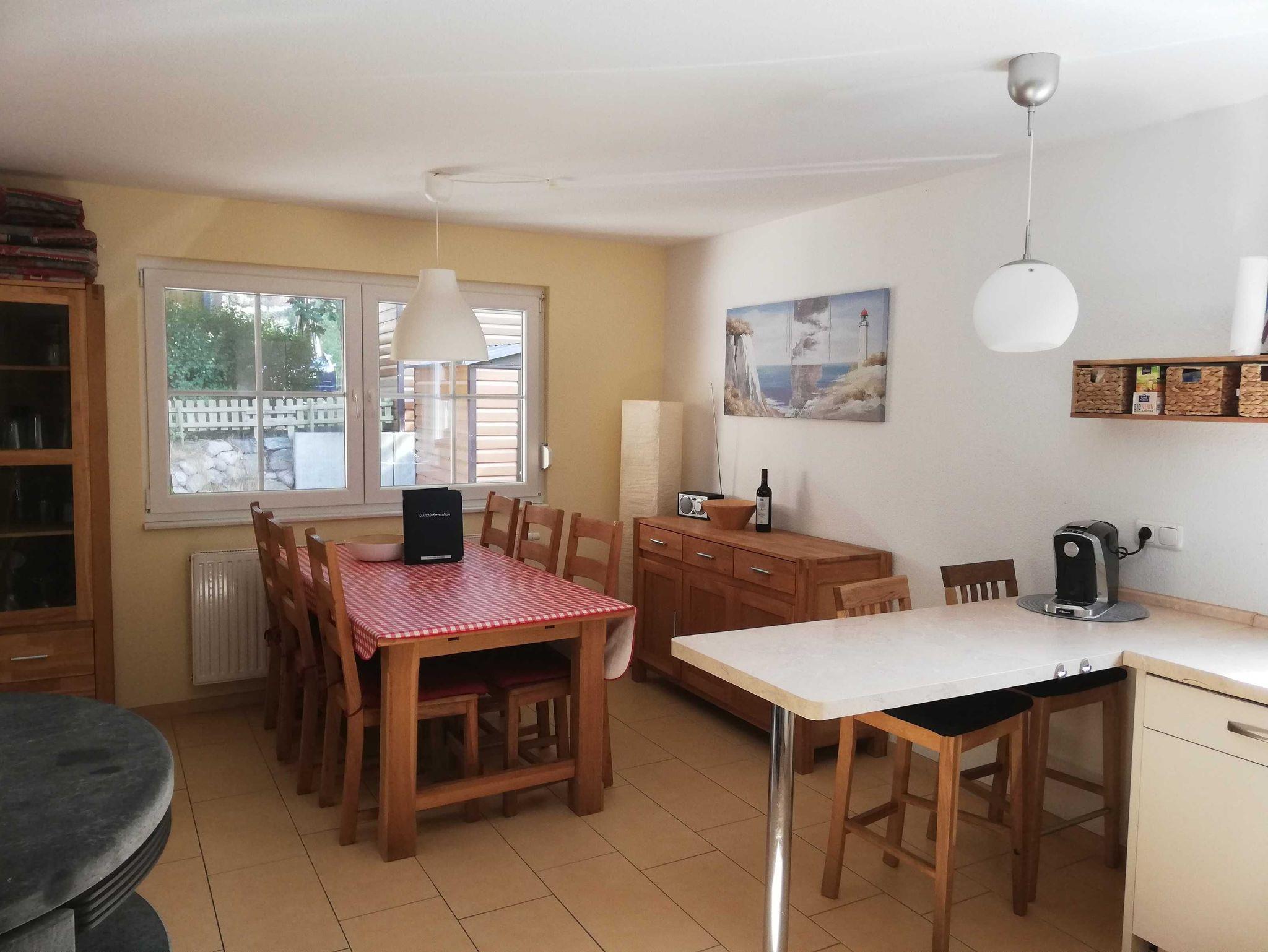 gut ausgestattete Küche mit Geschirrspüler, Cerankochfeld, Mikrowelle, Kühlschrank, Tiefkühlfach, Wasserkocher, Gläser, Geschirr, Besteck, Kaffeemaschine, Toaster, Staubsauger, TV + Kabel, WLAN, CD/DVD Player, Kamin, Kinderreisebett und Hochstuhl, Waschmaschine, rundherum Außenrollos und Fliegengitter, Sandkasten