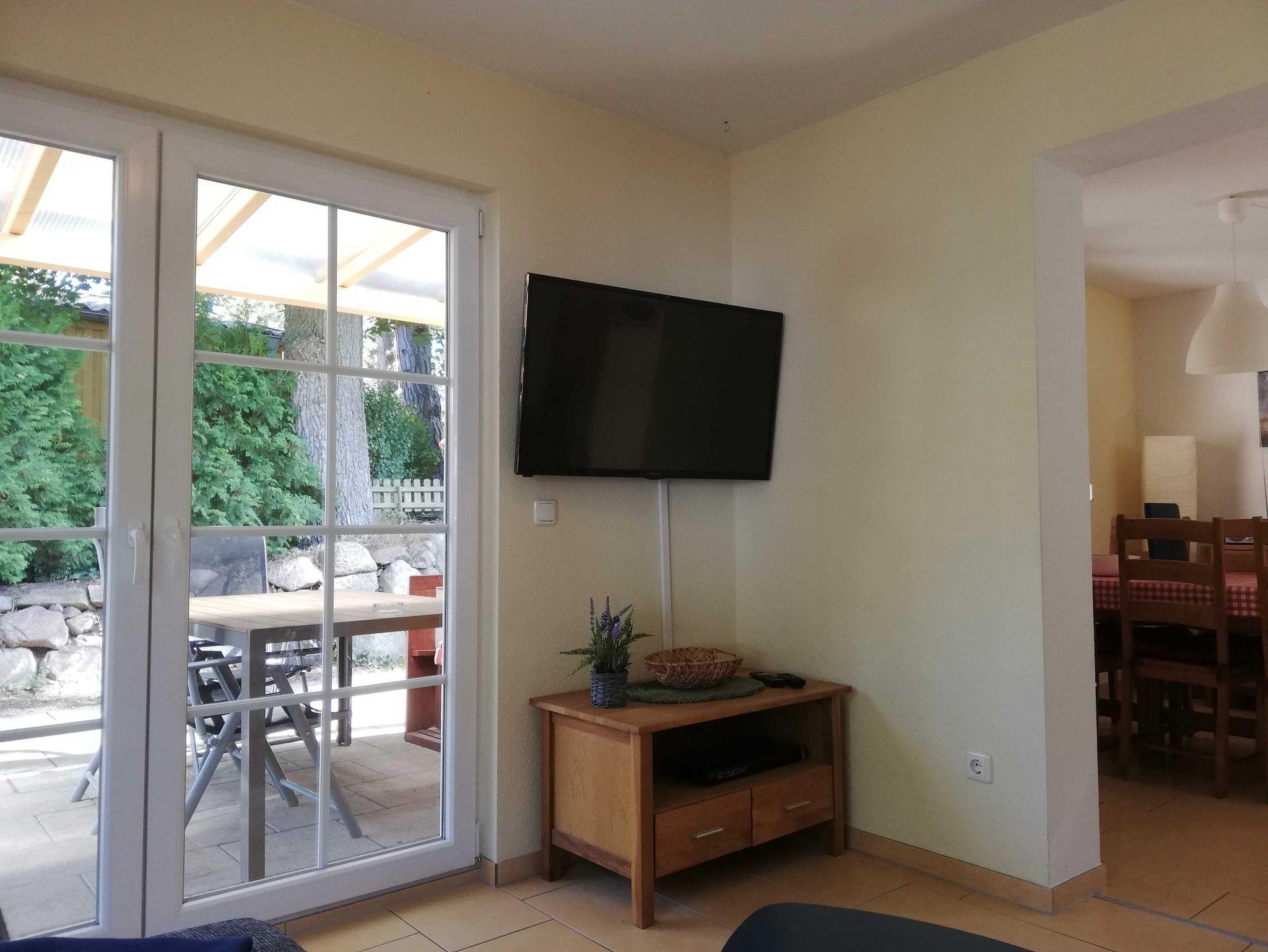 Wir bieten Ihnen hier das gemütliche und familienfreundliche Ferienhaus Kiefernidyll mit 3 Schlafzimmern und einem großen Wohnraum mit Kamin, Essecke & Küche.