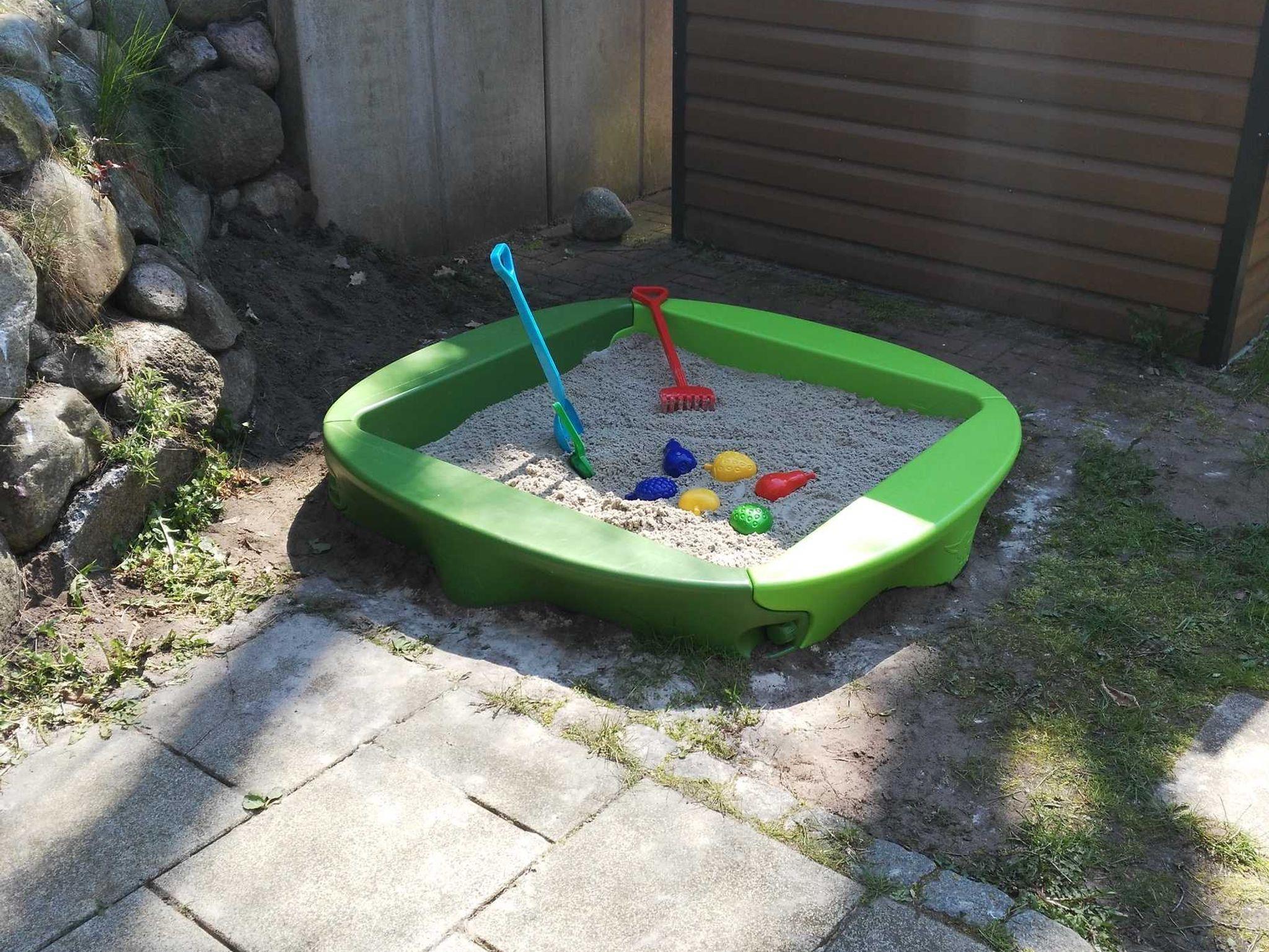 1 Terrasse mit Garten, Strandkorb und Gartenmöbel (Grillmöglichkeiten) & Sandkasten
