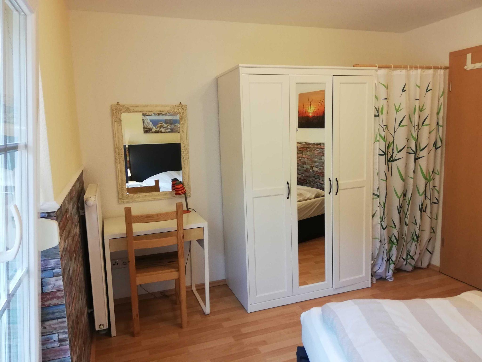 2 Schlafzimmer mit Schrank & Doppelbett (1,80 x 2m)