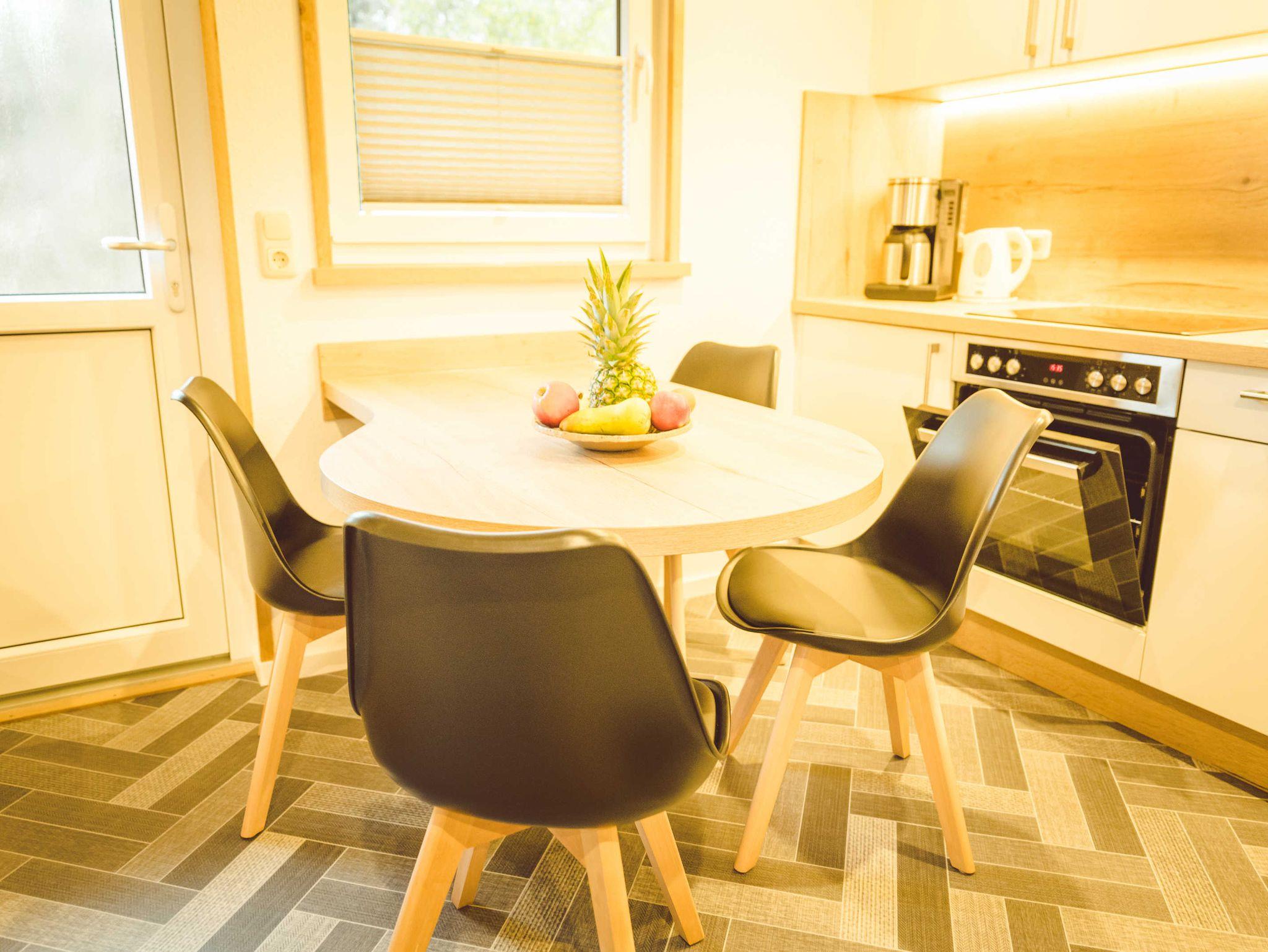 In dem Ferienpark befindet sich ein kleiner Spielplatz und eine Tischtennisplatte.