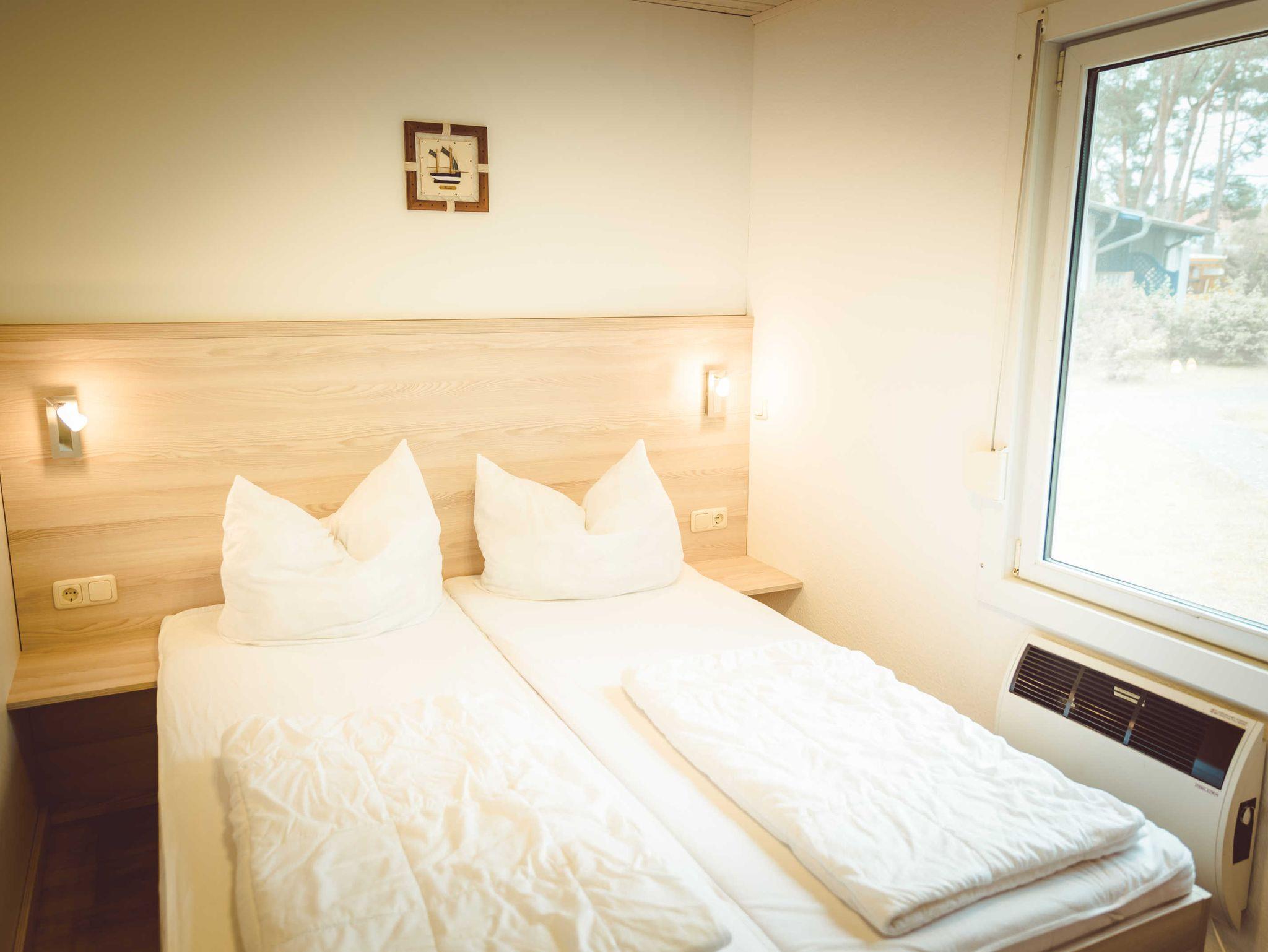 Bungalow mit 2 Schlafzimmern und einem gemütlichen Wohnraum mit Essecke, Küchenzeile und einer Couch. Auf dem idyllischen Grundstück steht Ihnen eine 10 qm große überdachten Terrasse zum Relaxen zur Verfügung. Der Bungalow wurde 2020 komplett renoviert, ist modern eingerichtet und ausgestattet mit Fernseher, Kabel- oder Satellitenanschluss und Radio.