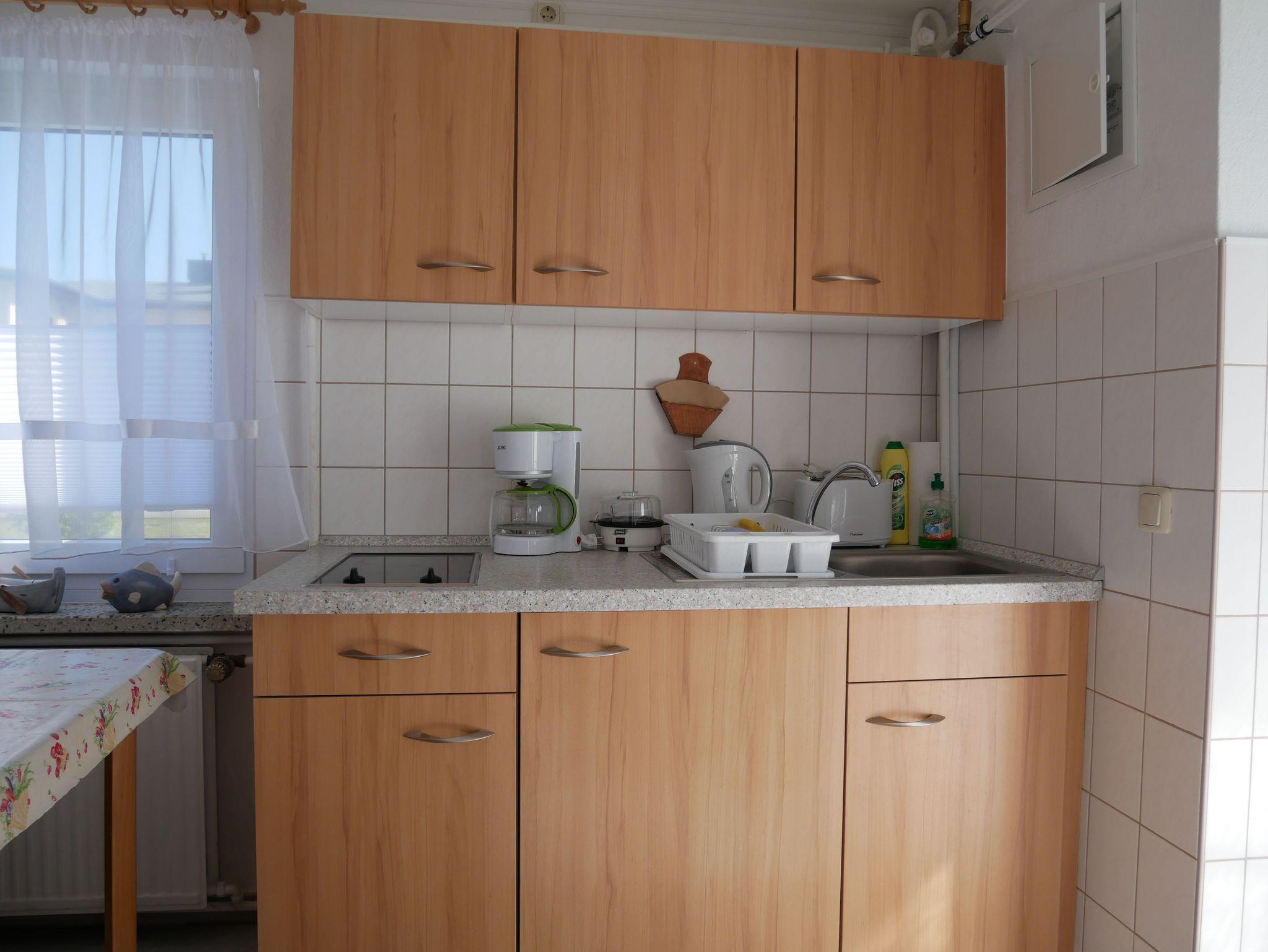 Die Küche verfügt über einen Essbereich und ist ausgestattet mit einem Kühlschrank mit Gefrierfach, Eierkocher, 2-Platten-Herd, Mikrowelle, Kaffeemaschine, Wasserkocher und Toaster. Den Garten mit Pavillon, Sandkasten, Schaukel und Grill finden Sie hinter dem Bungalow, auf dem Grundstück.