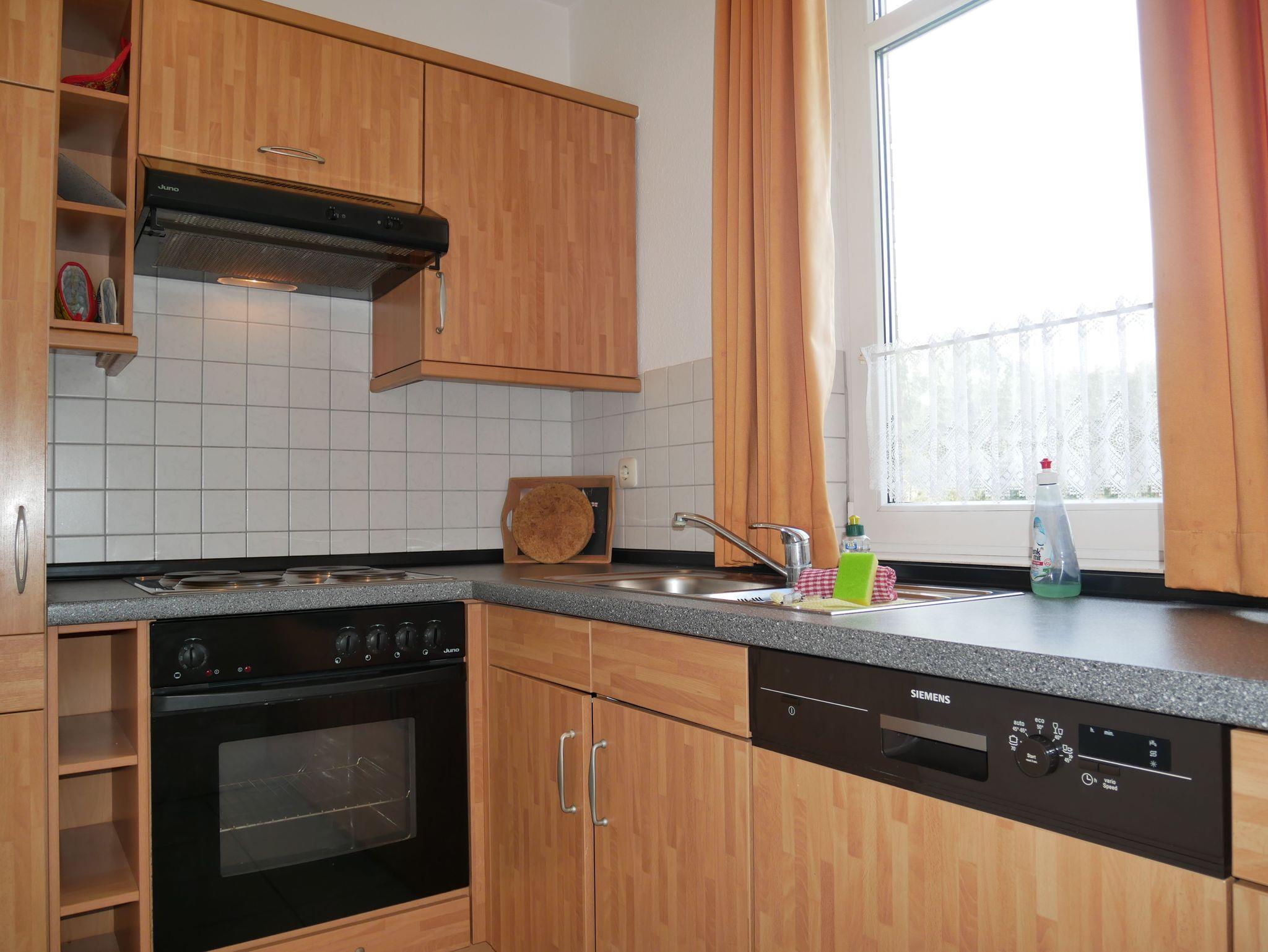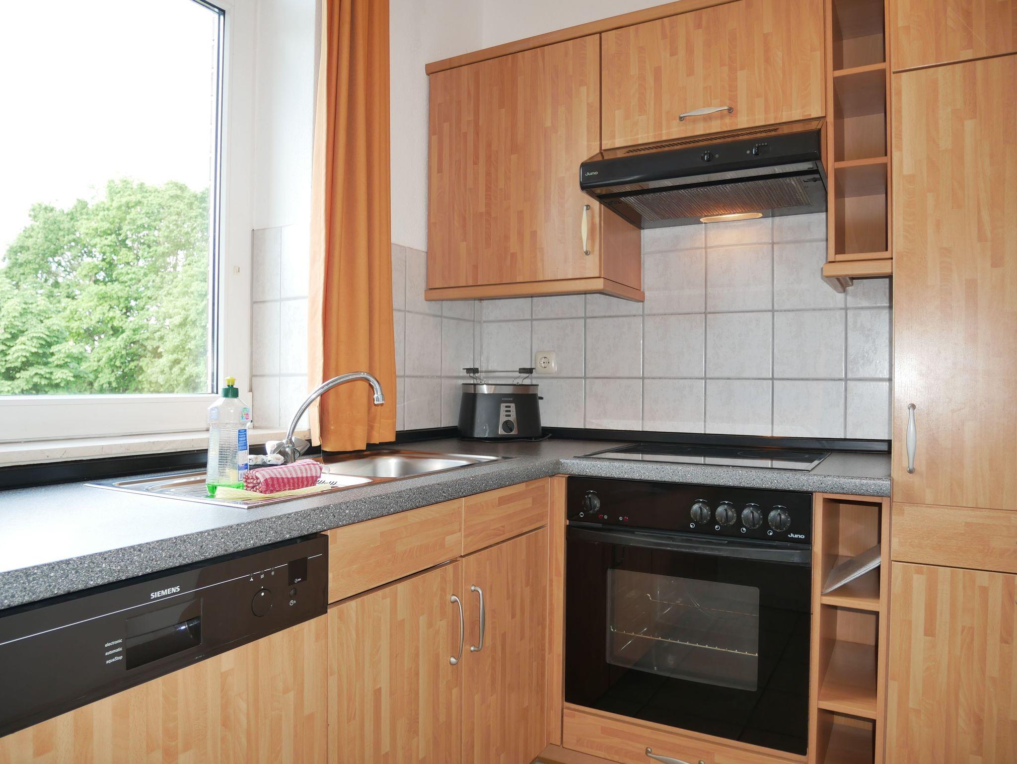Zur Wohnung gehören ein Wohnzimmer, mit einer gemütlichen Essecke und Couchlandschaft mit TV, eine separate Küche, die über ein 4 Platten Kochfeld mit Backofen, Spülmaschine, Kühlschrank, Wasserkocher, Toaster und Kaffeemaschine verfügt.