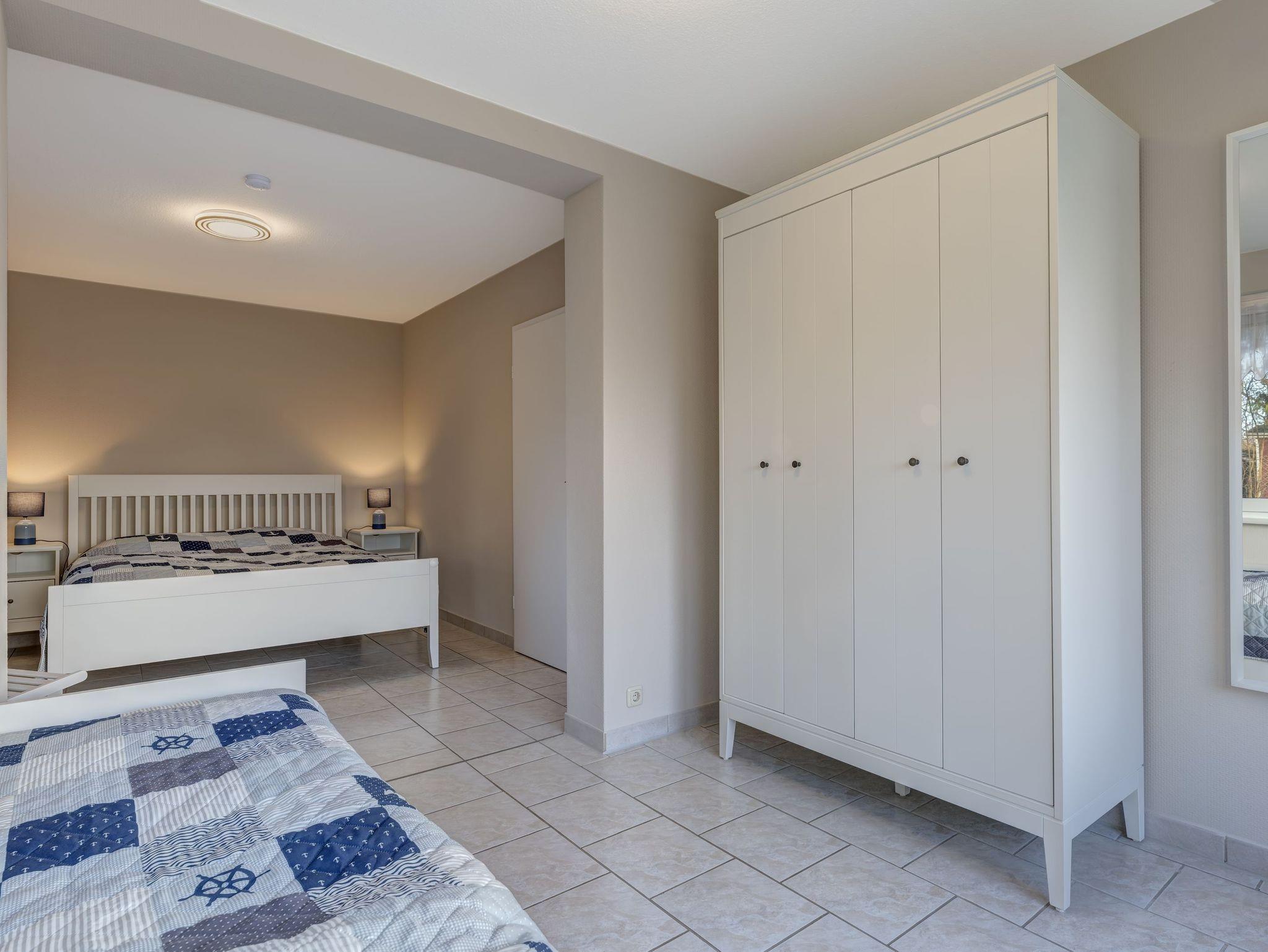 Es bietet Zugang zum Schlafzimmer mit Doppelbett und Einzelbett.