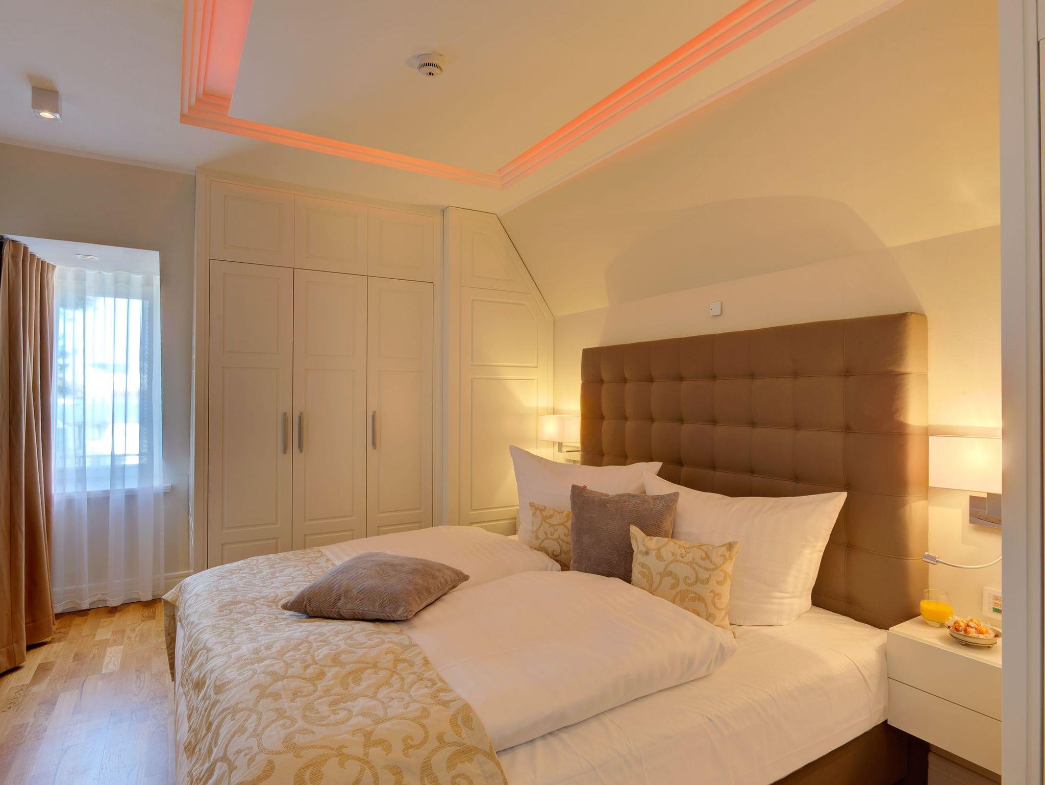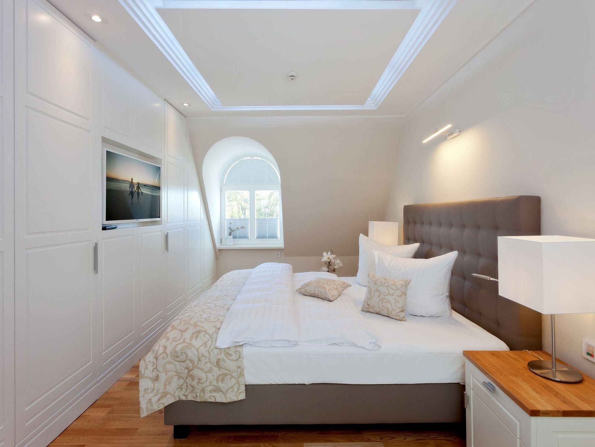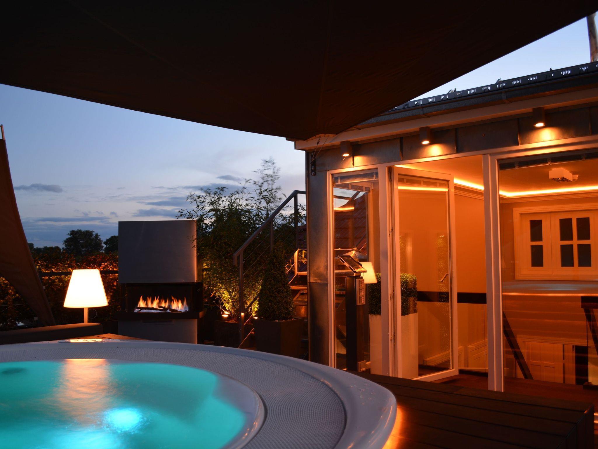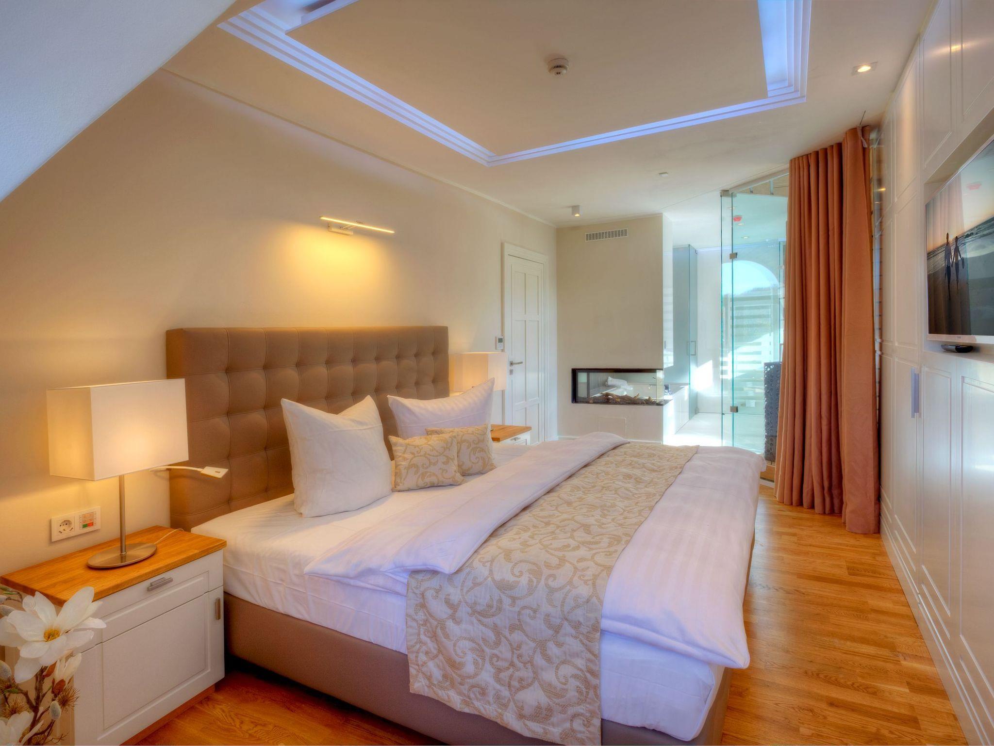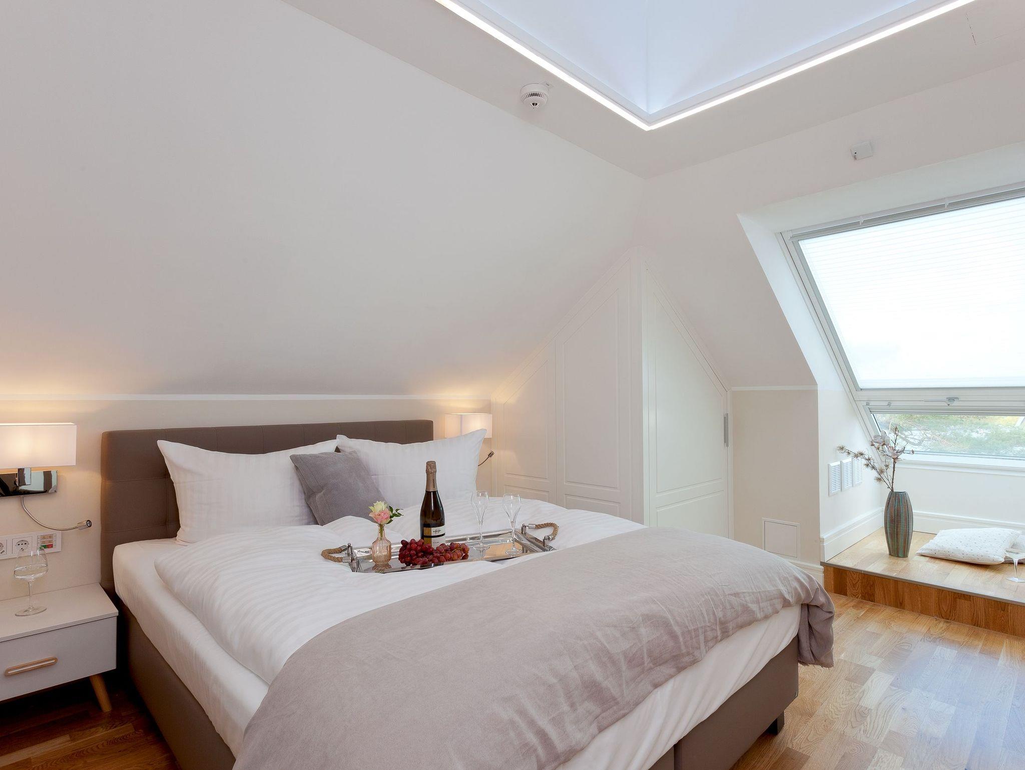 Luxuriöse Präsidentensuite in der Villa Gruner auf Usedom mit Dachterrasse, Sauna und Whirlpool für unvergesslichen Komfort.