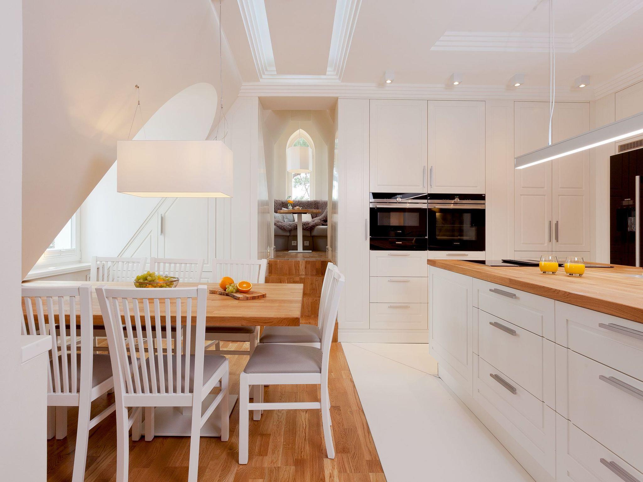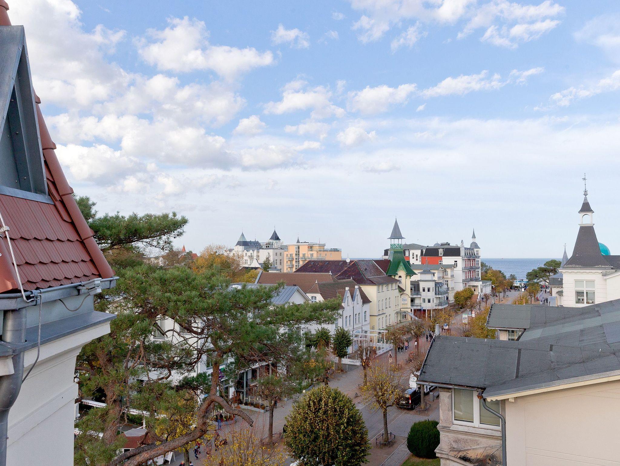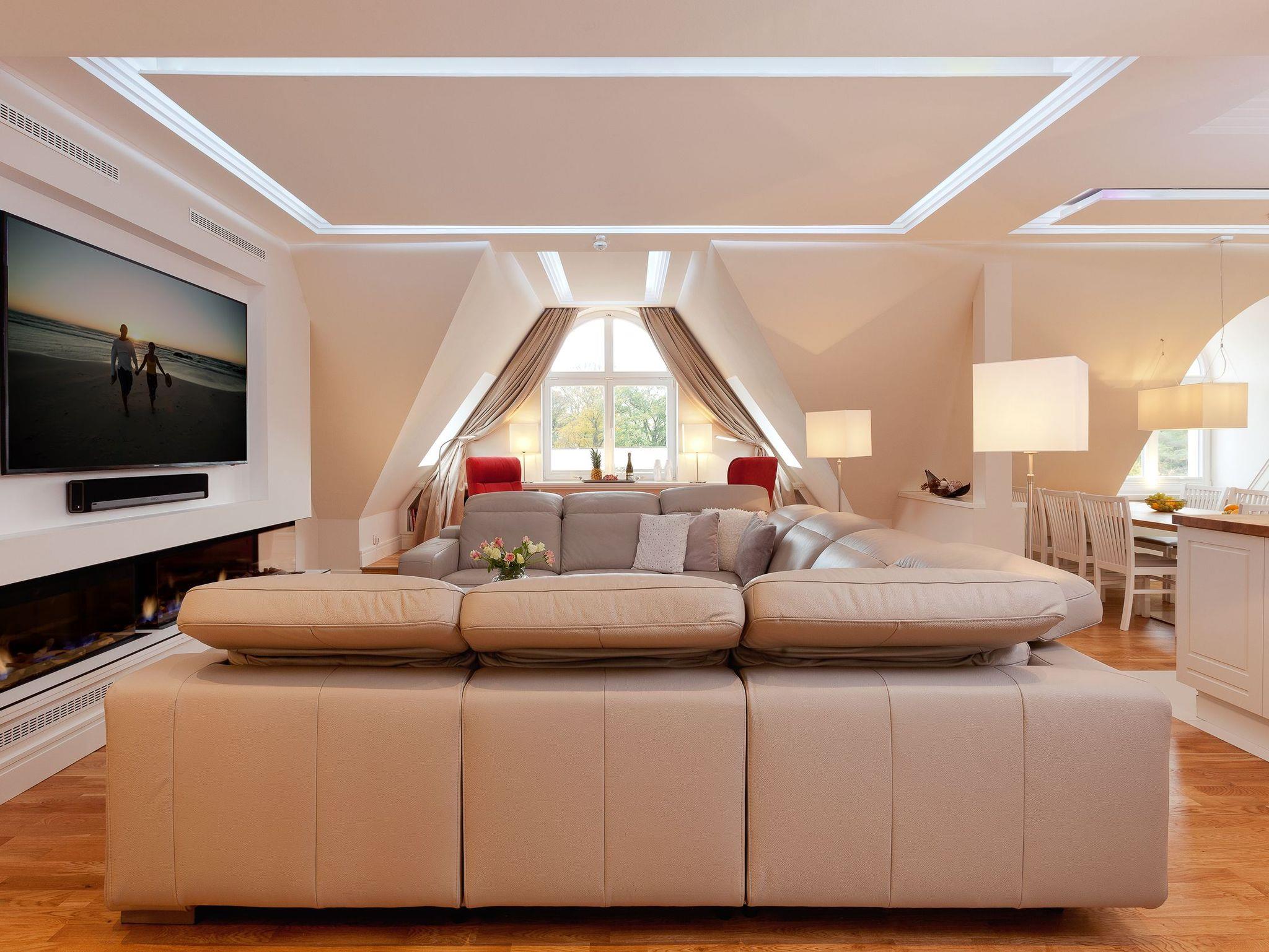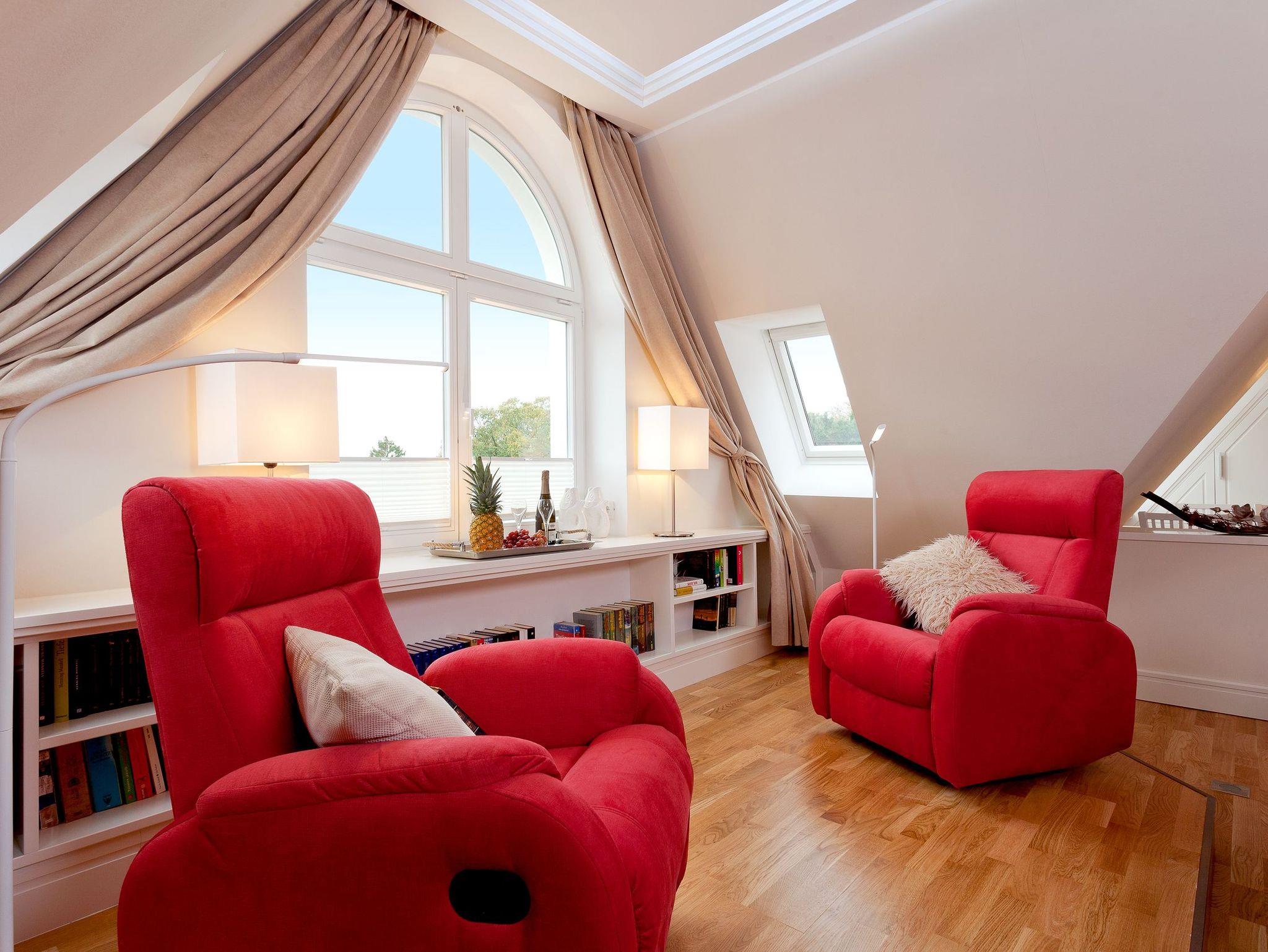 Nun haben Sie den höchsten Punkt der Villa erreicht. Genießen Sie den atemberaubenden Fernblick über Zinnowitzs Dächer bis hin zum Meer. Lassen Sie hier den Abend bei einem gemütlichen Glas Wein ausklingen und fühlen sich wie Gott auf Usedom. Für die wohlige Wärme zu jeder Jahreszeit sorgen Fußbodenheizung und Klimaanlage.