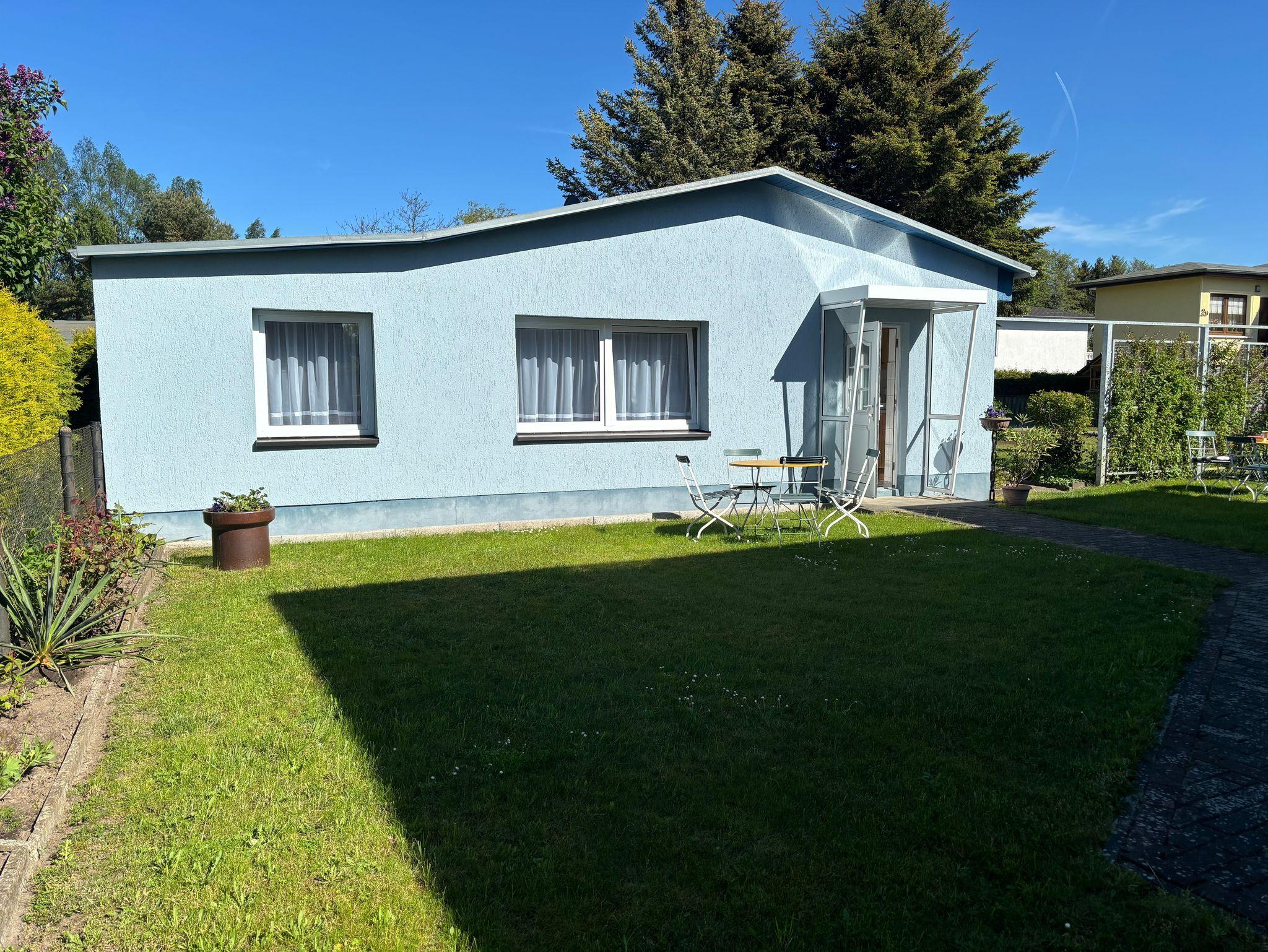 Den Garten mit Pavillon, Sandkasten, Schaukel und Grill finden Sie hinter dem Bungalow, auf dem Grundstück.
