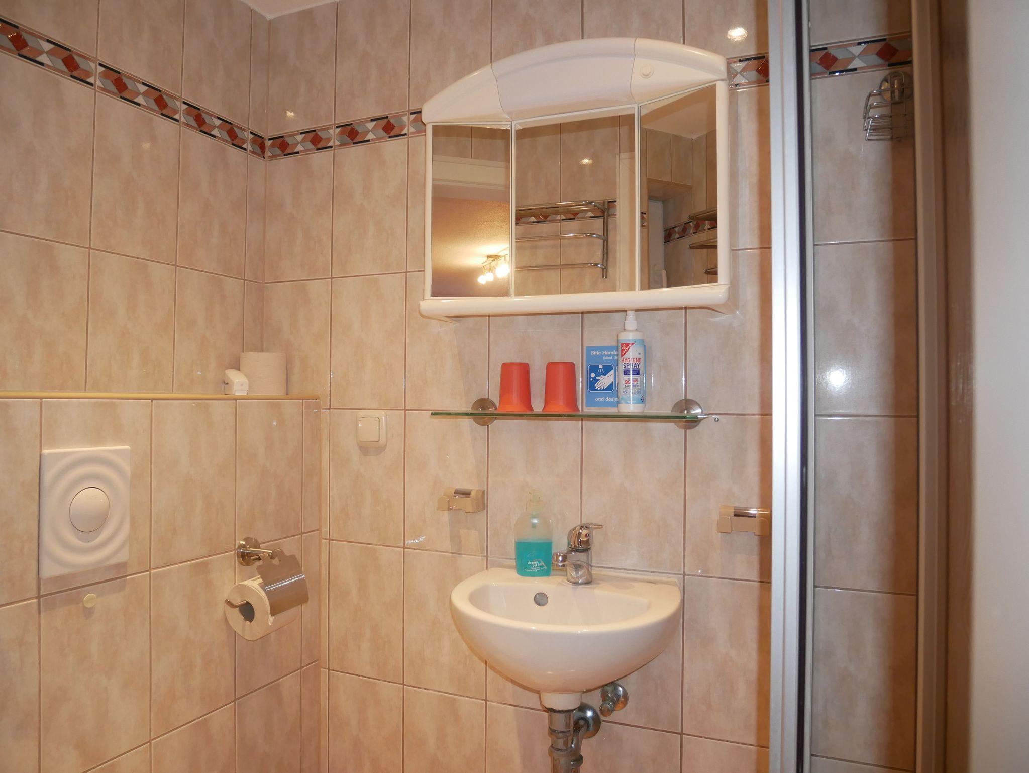 Das separate Badezimmer befindet sich im Ferienzimmer und ist mit einer Dusche ausgestattet.
