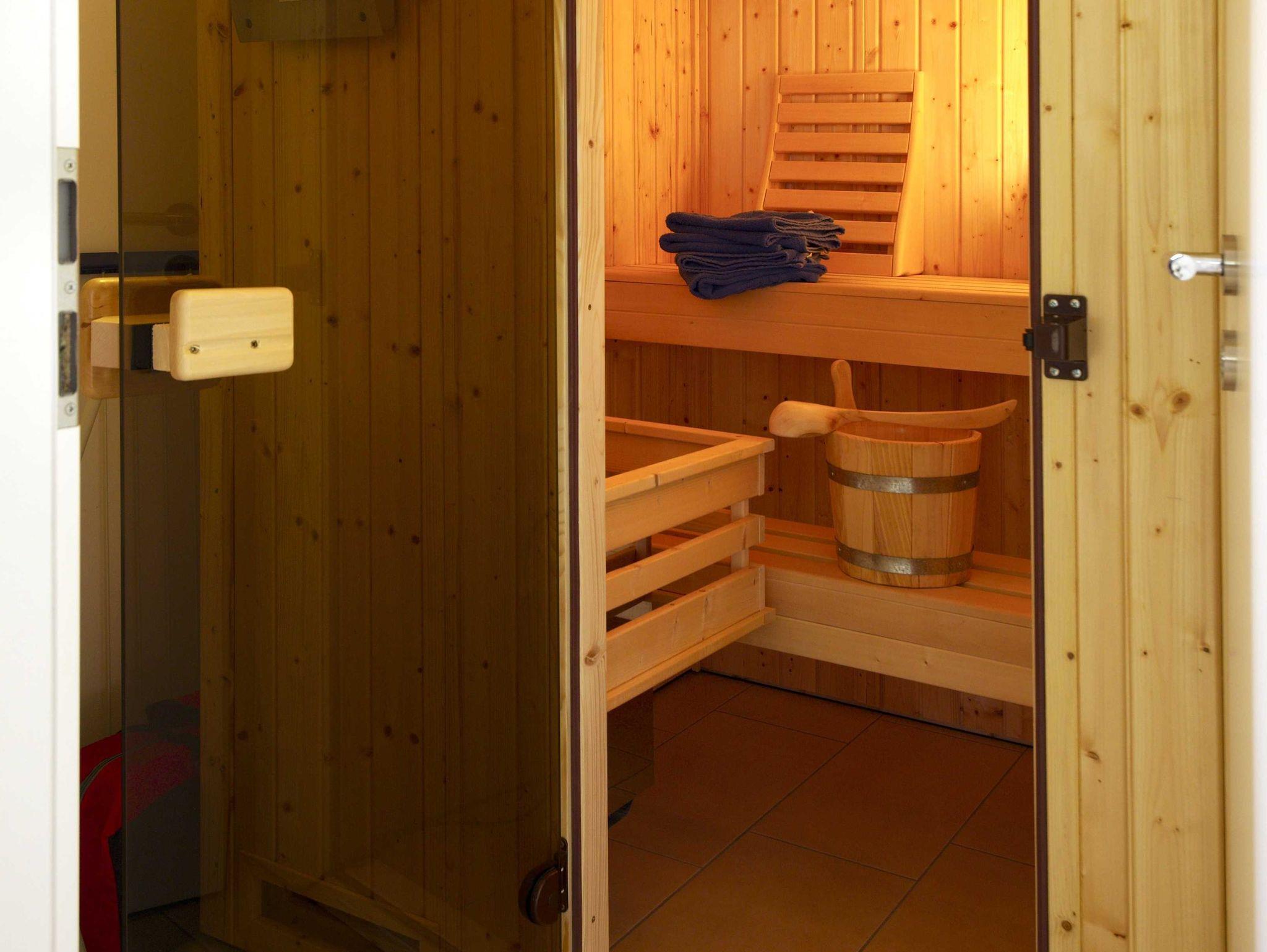• Dampfsauna bis 80°C für zwei Personen mit Münzzähler (20 Minuten ca. 50 Cent)