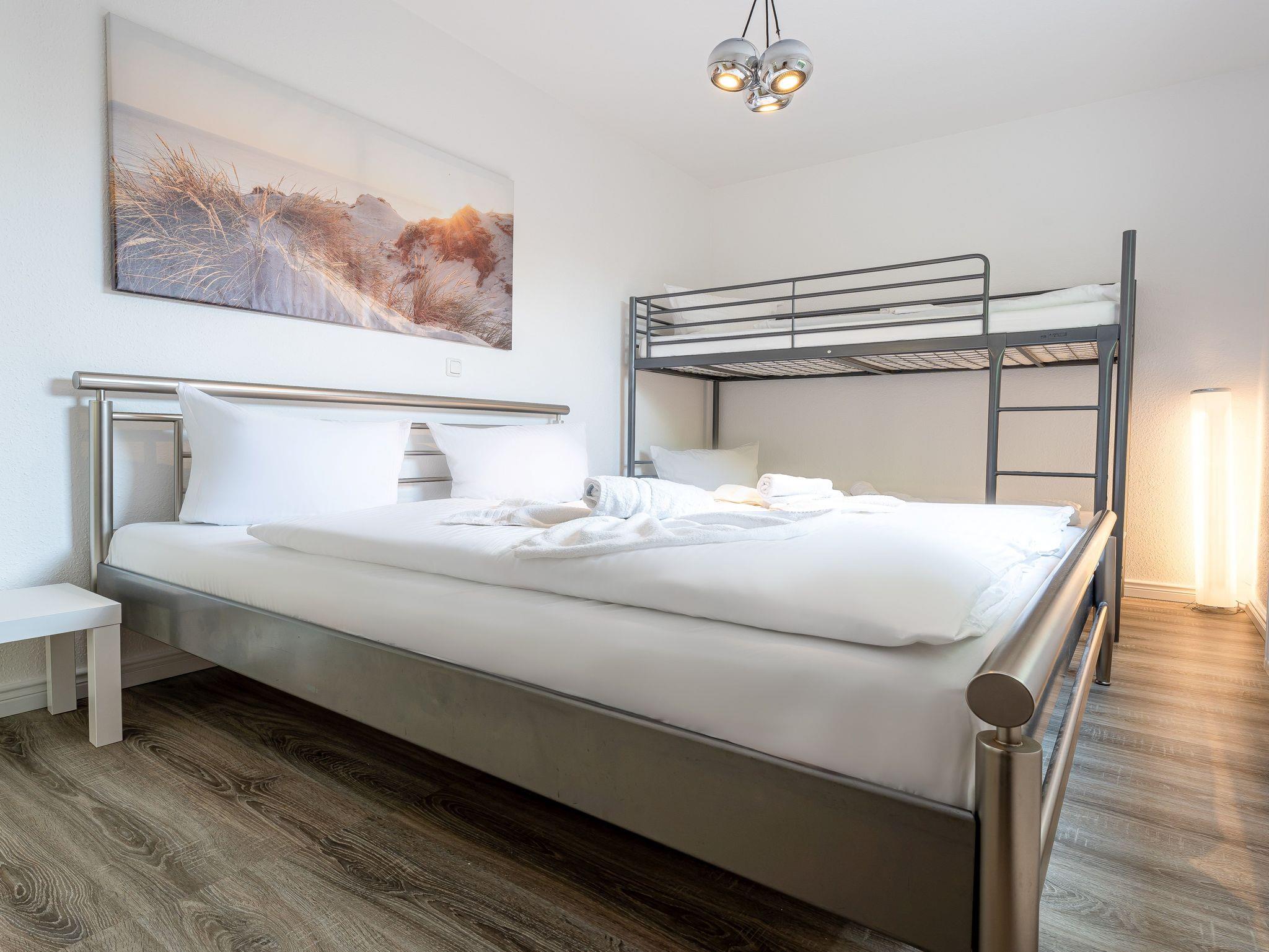 Im Erdgeschoss der liebevoll sanierten Villa Helga finden Sie als Paar oder in Familie genügend Raum mit sechs Schlafplätze. Im Schlafzimmer befinden sich ein großes 180 cm breites Doppelbett und ein Etagenbett mit zwei 90 cm breiten Matratzen. Für etwas mehr Ruhe haben wir auch ein zweites Schlafzimmer mit einem 140 cm breiten Doppelbett zu bieten.