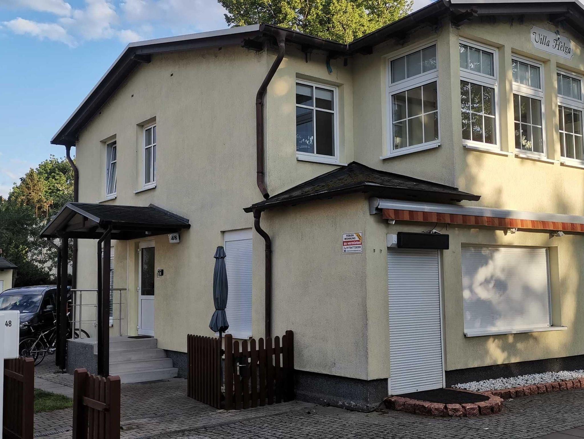 Die Ferienwohnung mit 2 Schlafzimmern liegt im Erdgeschoß der Villa Helga im Herzen des Ostseebad Zinnowitz. Lassen Sie sich von der Morgensonne auf der Terrasse begrüßen. Ein Parkplatz ist auf dem Grundstück vorhanden ebenso eine Fahrradunterstellmöglichkeit. Auch für einen gemütlichen Grillabend steht Ihnen ein Außengrill auf der Terrasse sowie 2 Strandkörbe zur gemeinschaftlichen Nutzung zur Verfügung. Es sind maximal 2 Haustiere gegen Gebühr erlaubt.