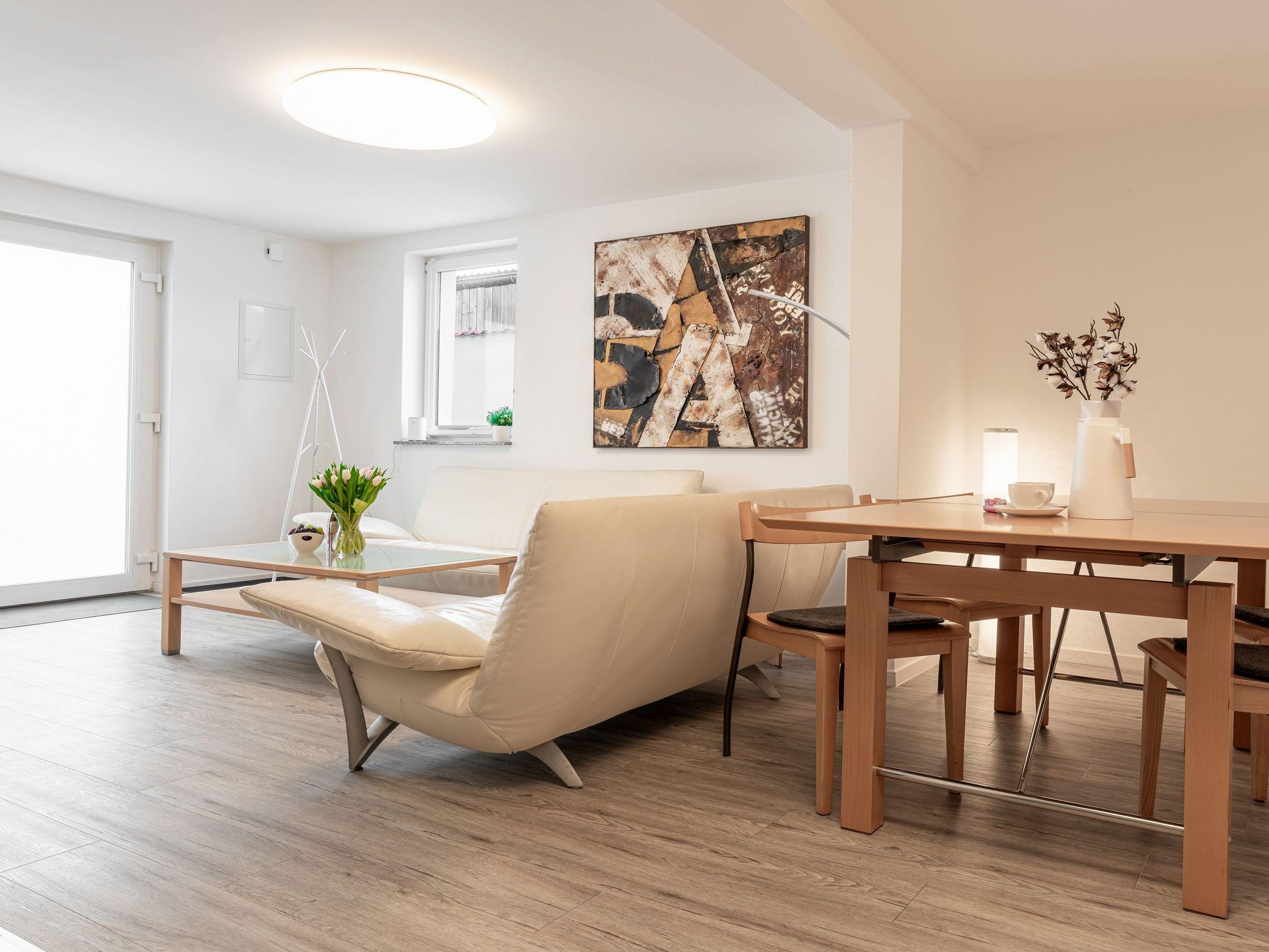 Gemütliche Ferienwohnung Glück in Zinnowitz mit Terrasse, Kamin und moderner Fußbodenheizung für entspannte Urlaubstage.