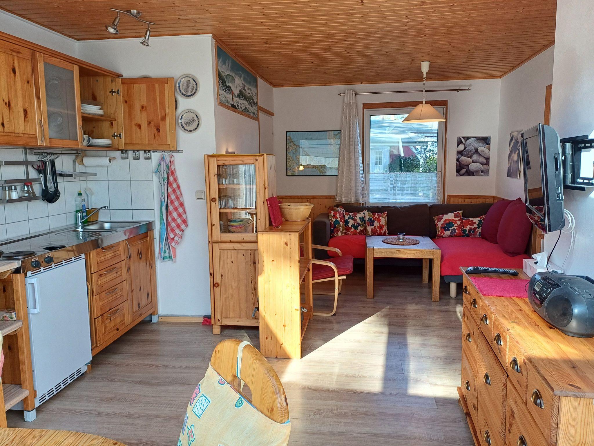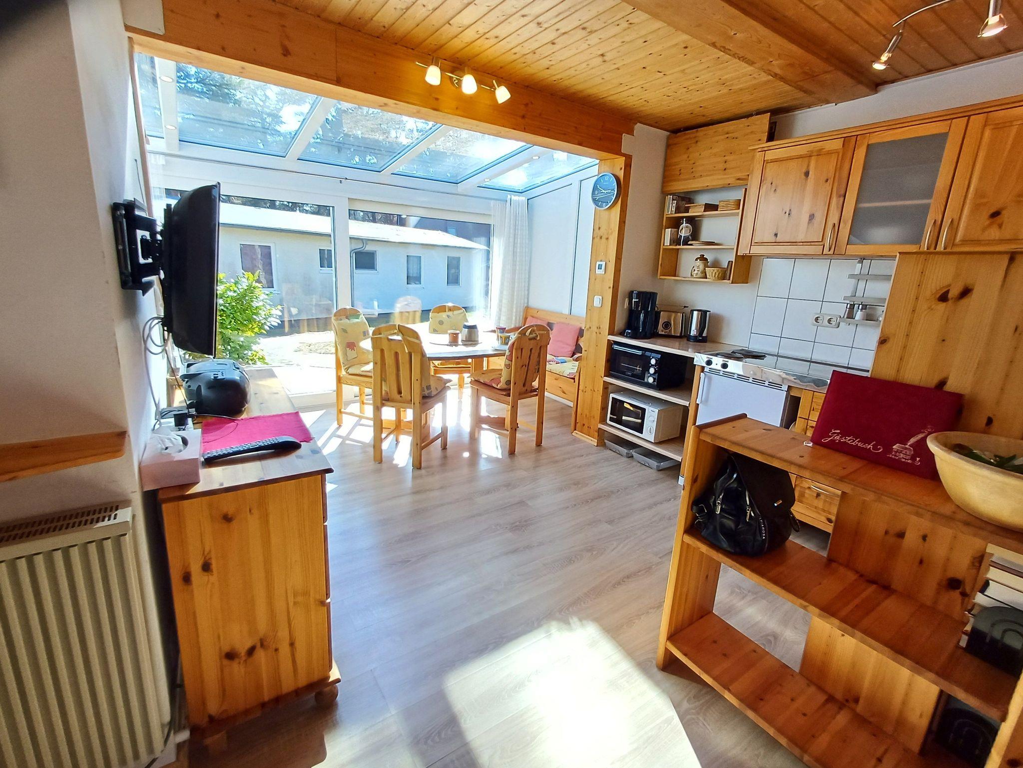 Ausgebauter Bungalow mit hellem, geräumigem Wohnraum, Essplatz im Wintergarten, Küchenzeile, 2 Schlafzimmer sowie Dusche/ WC.