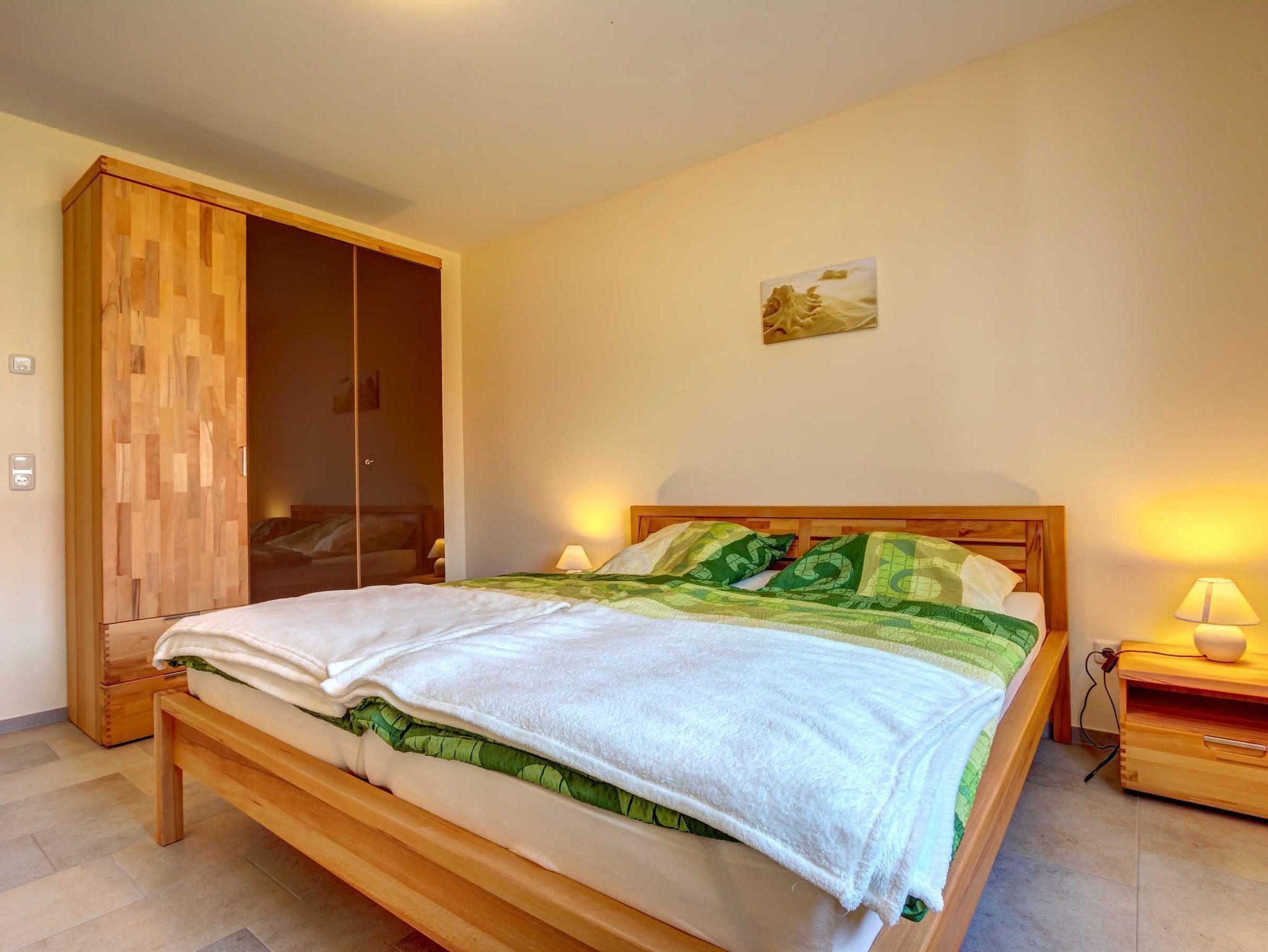Die Wohnung besitzt 1 Schlafzimmer im EG mit einem Doppelbett und zwei Aufbettungsmöglichkeiten im Wohnzimmer.