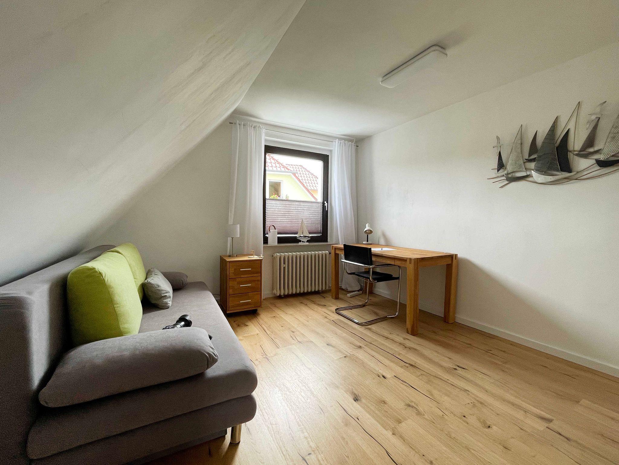 Einer der beiden Schlafbereiche ist so eingerichtet, dass er auch sehr gut als Lese- bzw. Arbeitszimmer genutzt werden kann.
