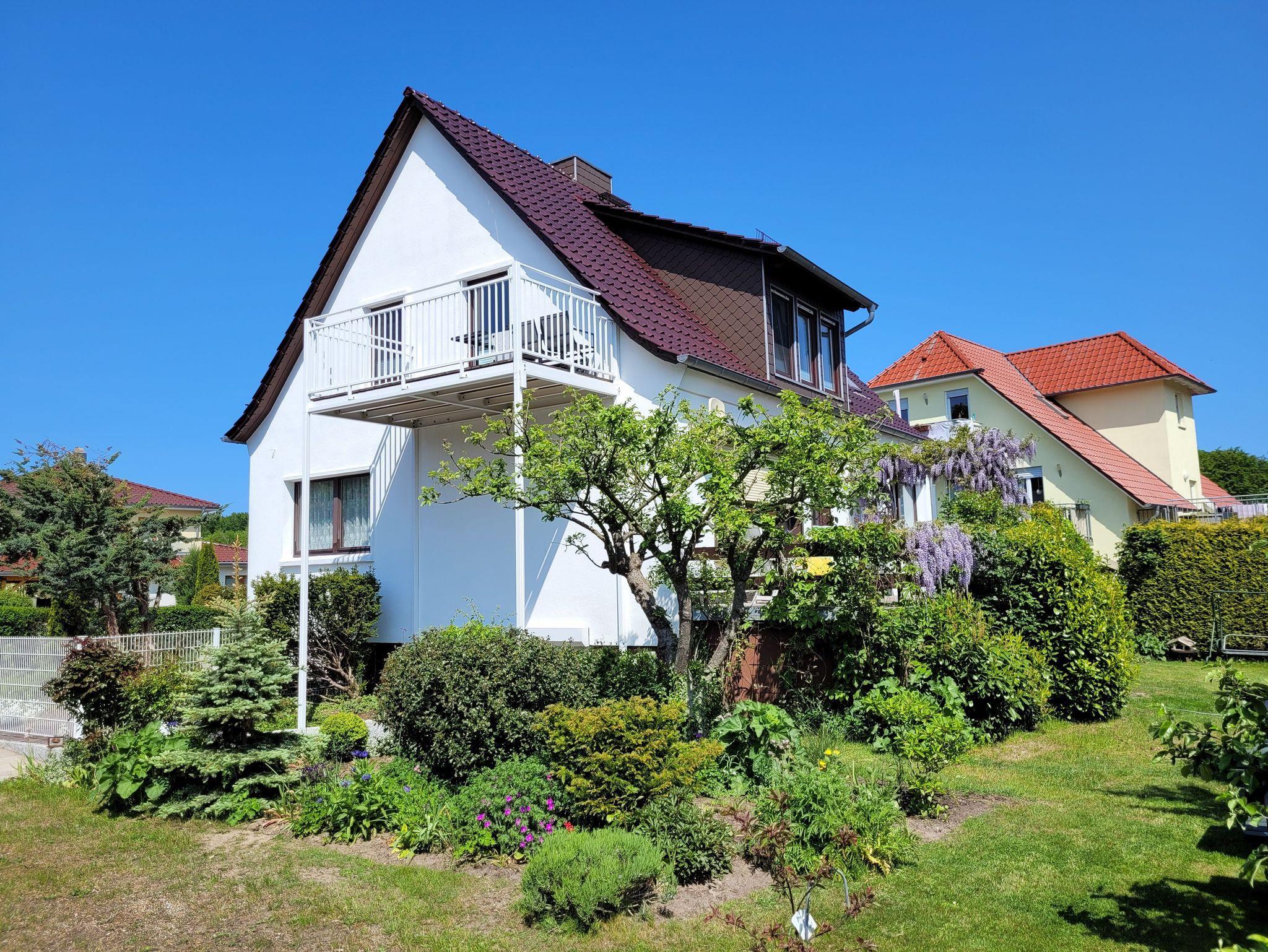 Die sonnige Ferienwohnung in Zinnowitz bietet Komfort nahe Strand und Wald mit eigenem Parkplatz und Balkon.