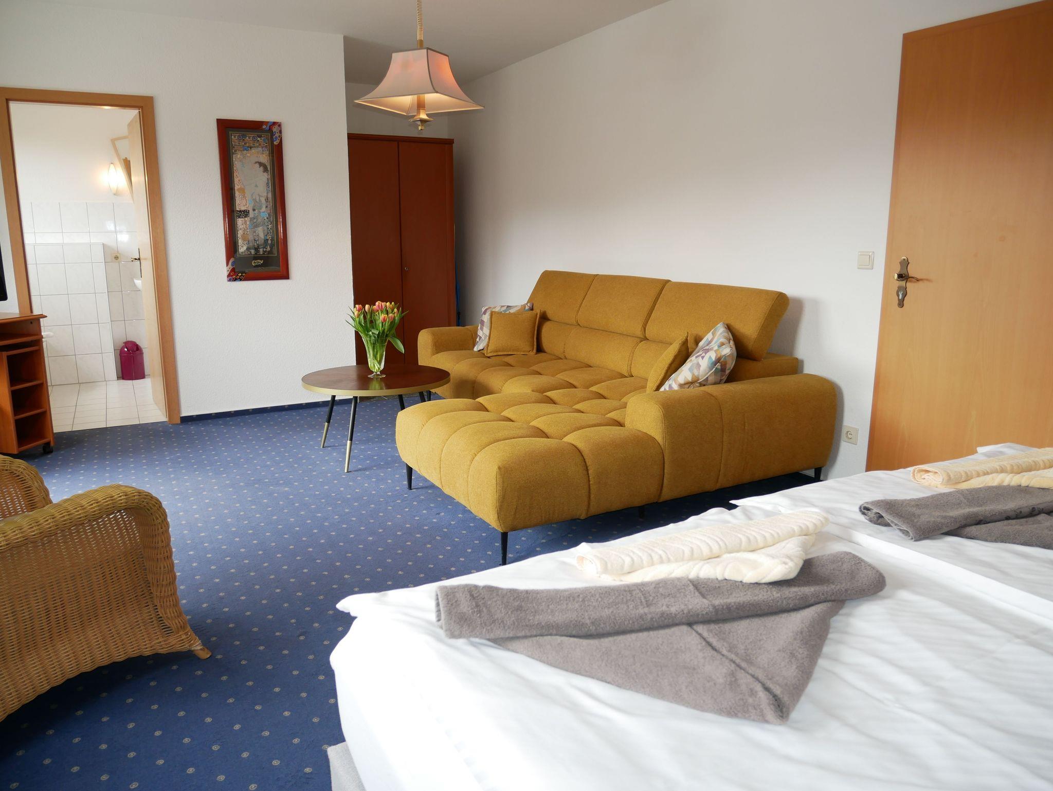 Das Doppelzimmer ist mit einem Doppelbett, einer Sitzecke, einen Flachbild-TV und einen Radio ausgestattet.
