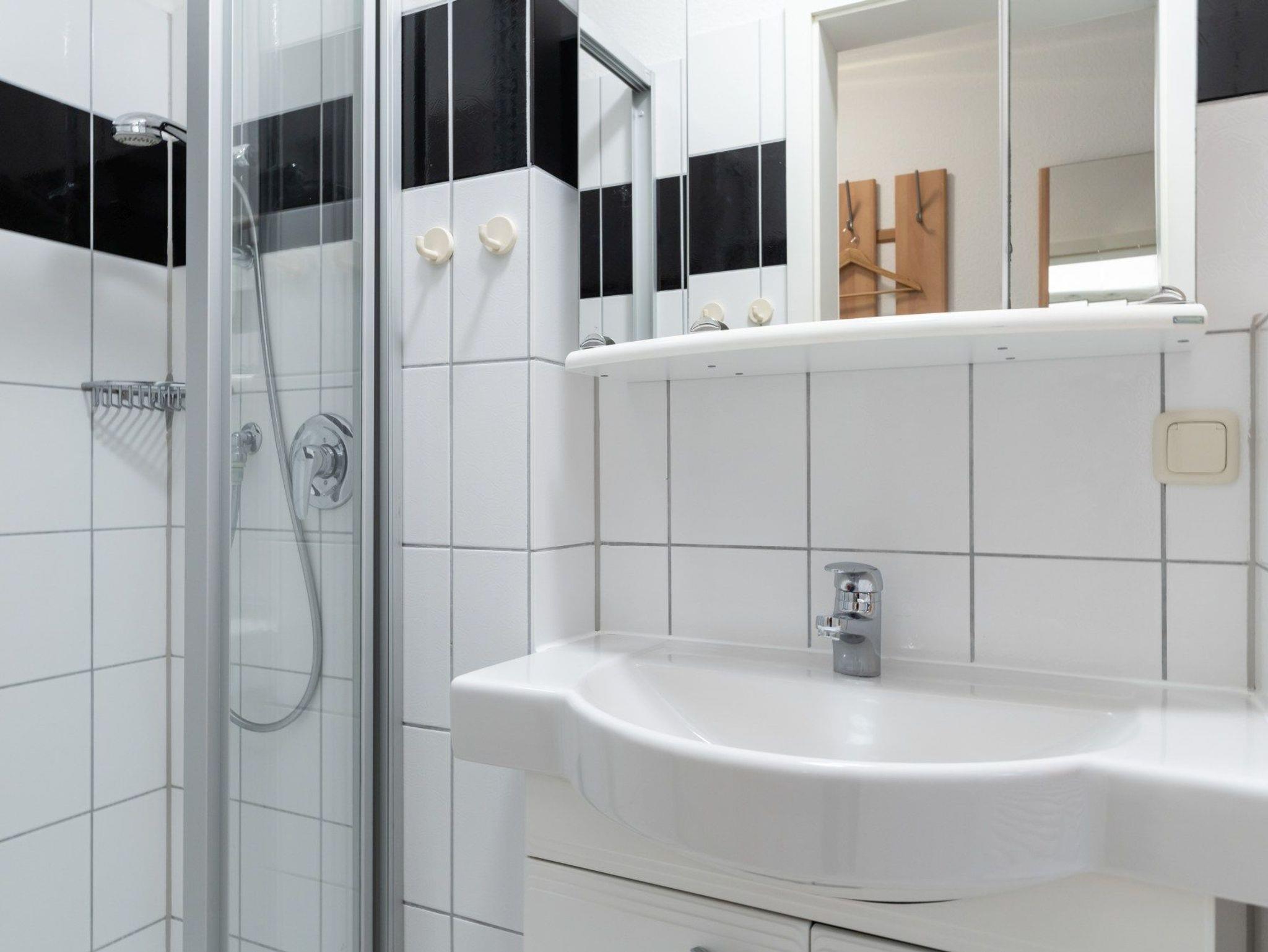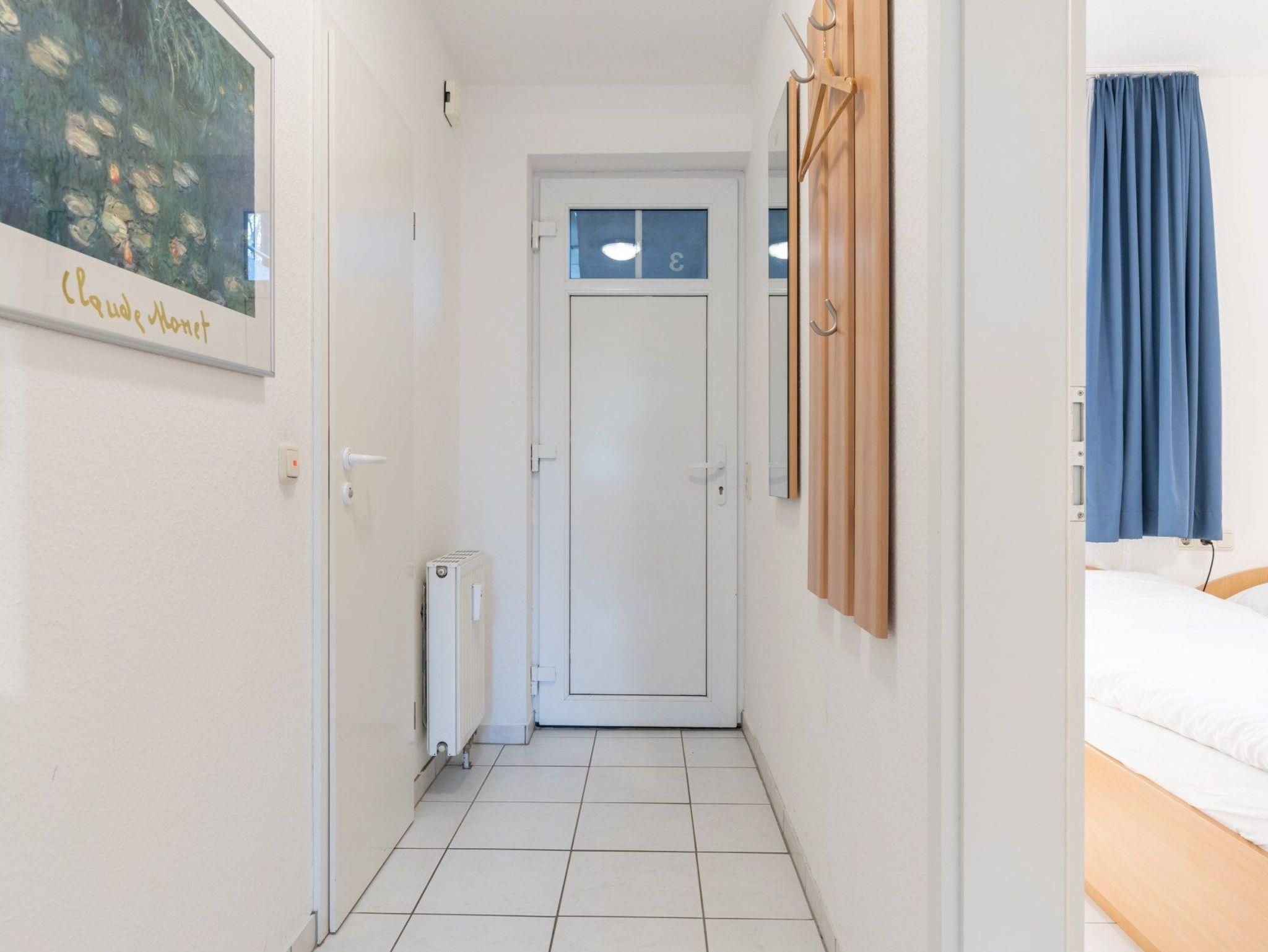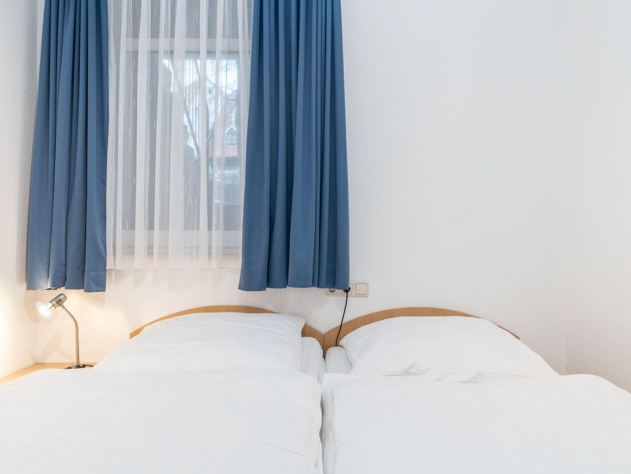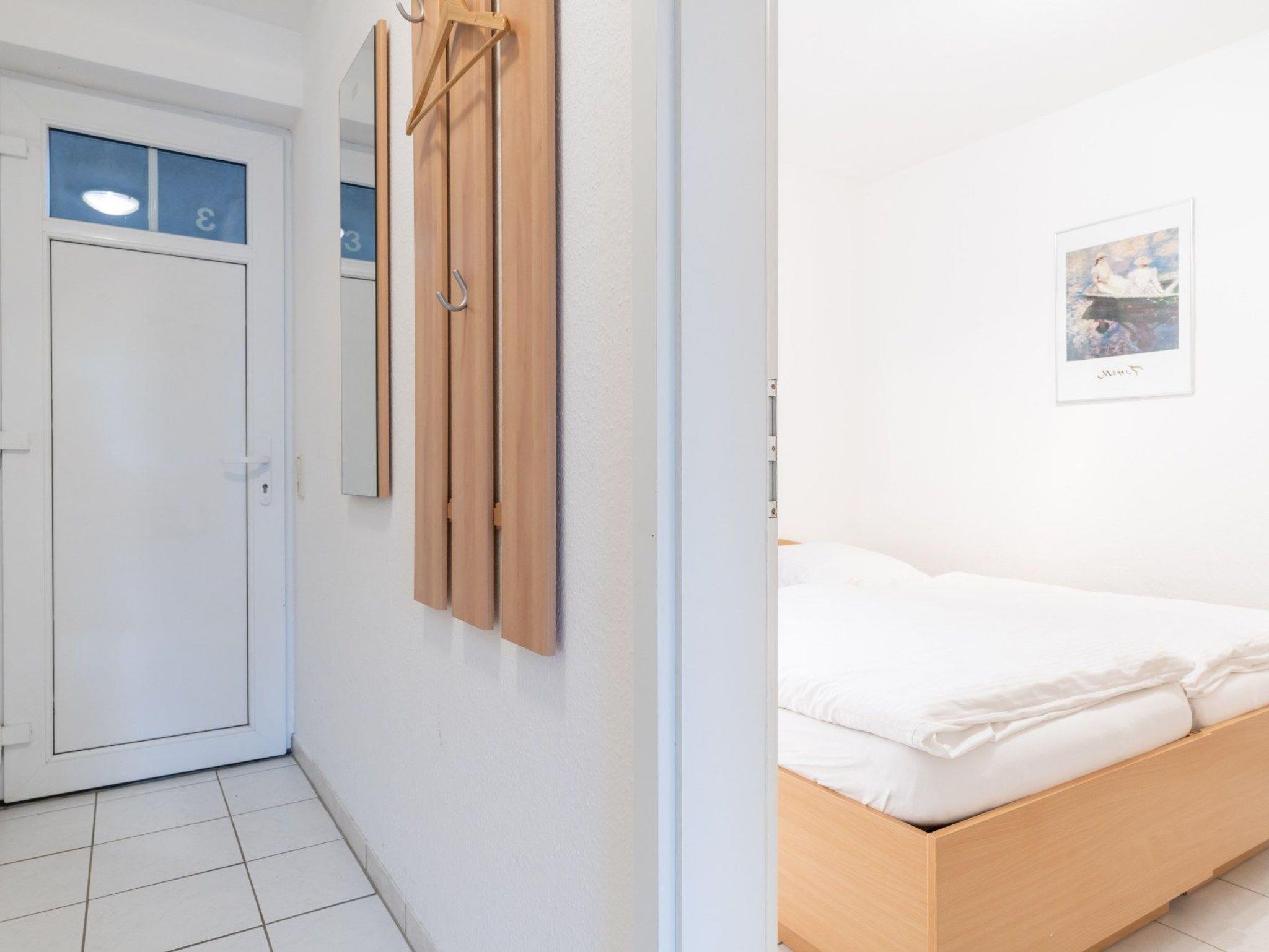 Die 36 m ² große Ferienwohnung 03 befindet sich im Erdgeschoss im Haus Roland (rechtes Gebäude vom Parkplatz aus gesehen). Sie bietet mit ihren zwei Zimmern ausreichend Platz für bis zu 4 Personen.