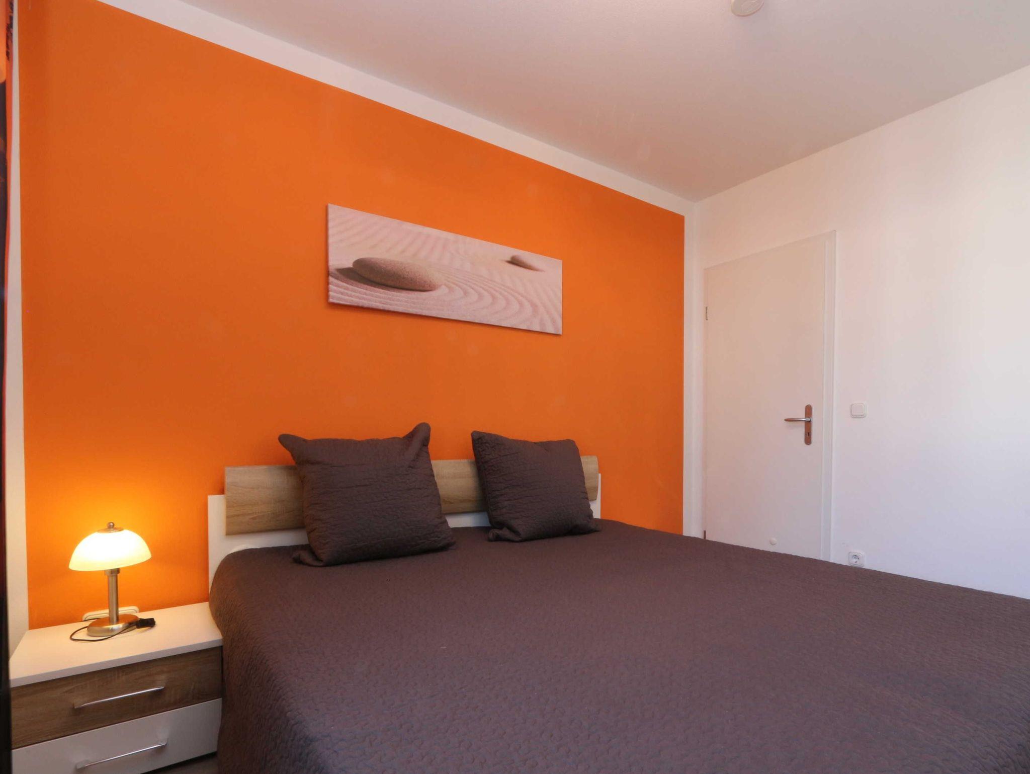 • Das Schlafzimmer verfügt über ein Doppelbett (ca. 180 x 200 cm) für 2 Personen und Kleiderschrank.