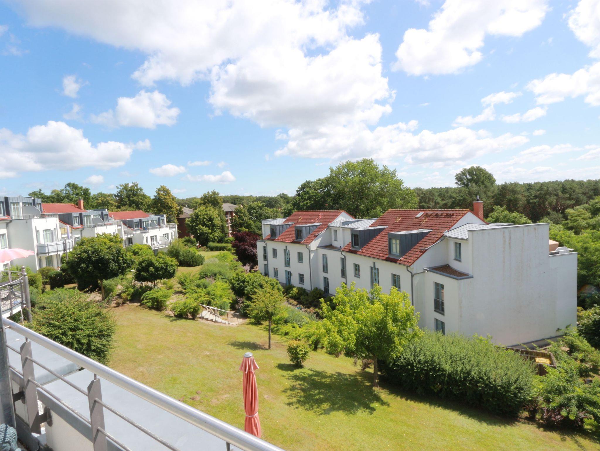 Die 2-Zimmer-Wohnung Nr. 34 (ca. 55 m²) im 1. Obergeschoss mit exklusiver Ausstattung und einem überdachten windgeschützten Balkon befindet sich in der Residenz Bellevue in 17454 Zinnowitz, Heimweg 11.