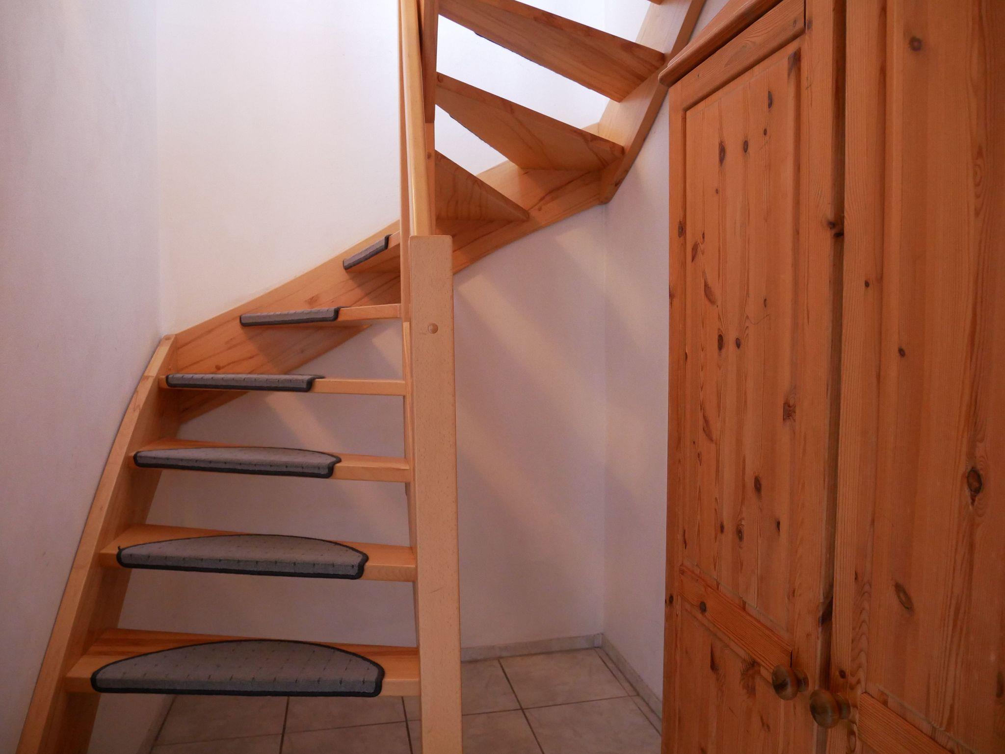 Die Ferienwohnung liegt im Dachgeschoss (2.OG) und ist für bis zu 3 Personen gut geeignet. Sie teilt sich auf in einen Wohnraum mit Küche, zwei abgeteilten Schlafräumen mit Doppel- bzw. Einzelbett und Kleiderschrank, sowie einem Bad mit Dusche und WC. Die Küche ist mit einem Elektroherd mit Ceranfeld, Kaffeemaschine, Wasserkocher, Toaster, Kühlschrank und Geschirrspüler ausgestattet.