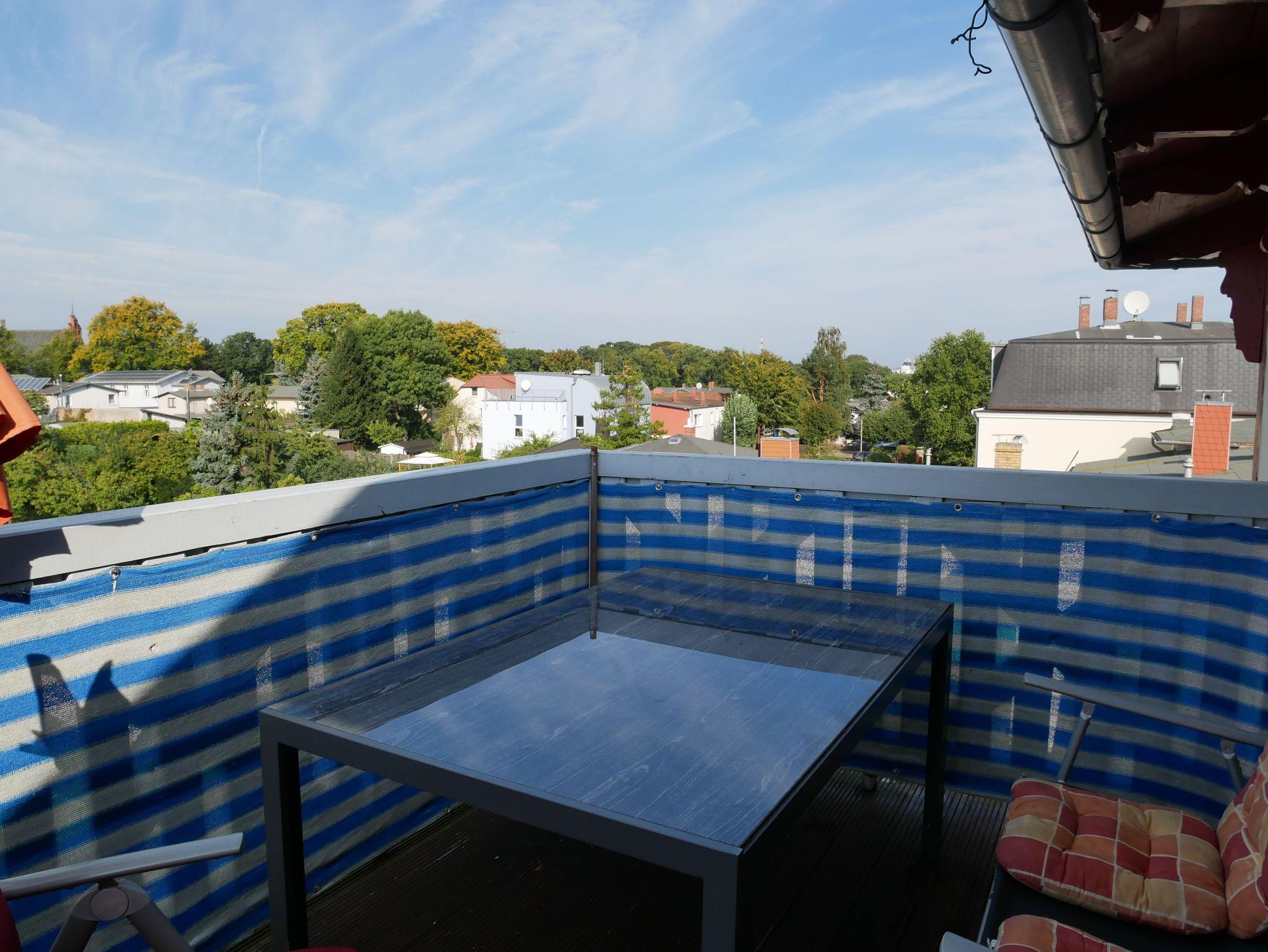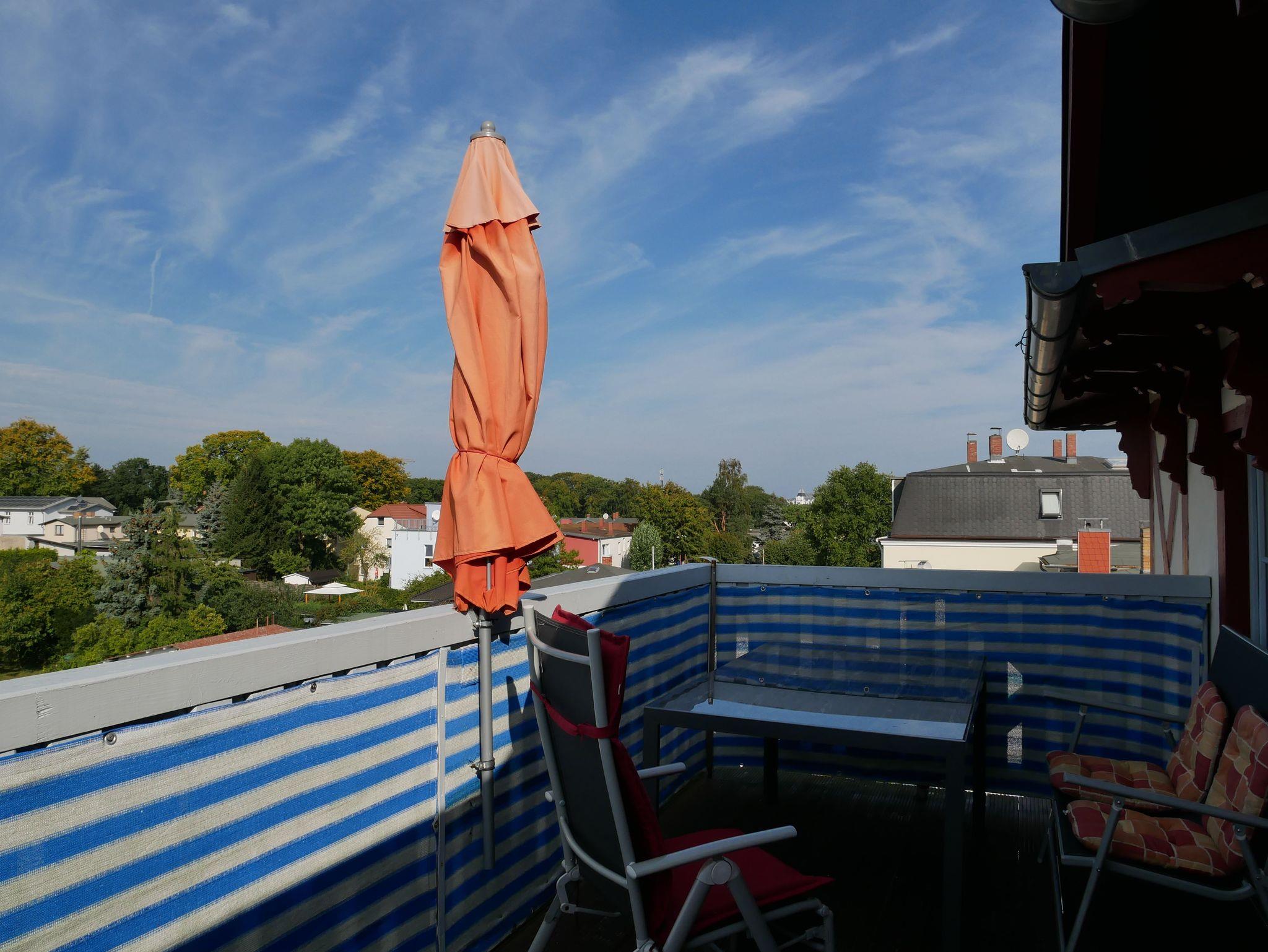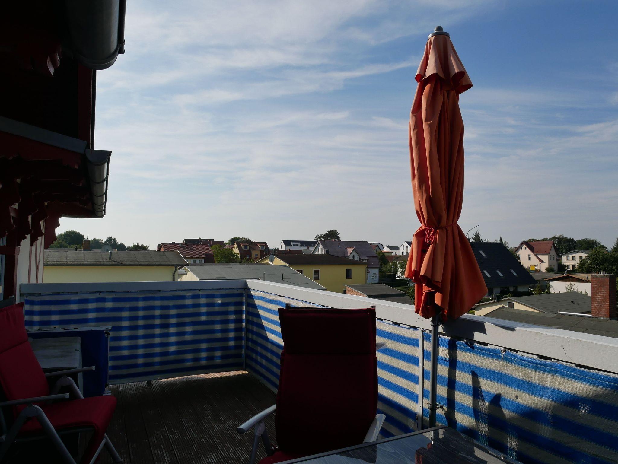 Zur Fewo 1 mit HD-TV und WLAN gehört eine großzügige Dachterrasse, sowie ein PKW-Stellplatz auf dem Grundstück unmittelbar am Haus.