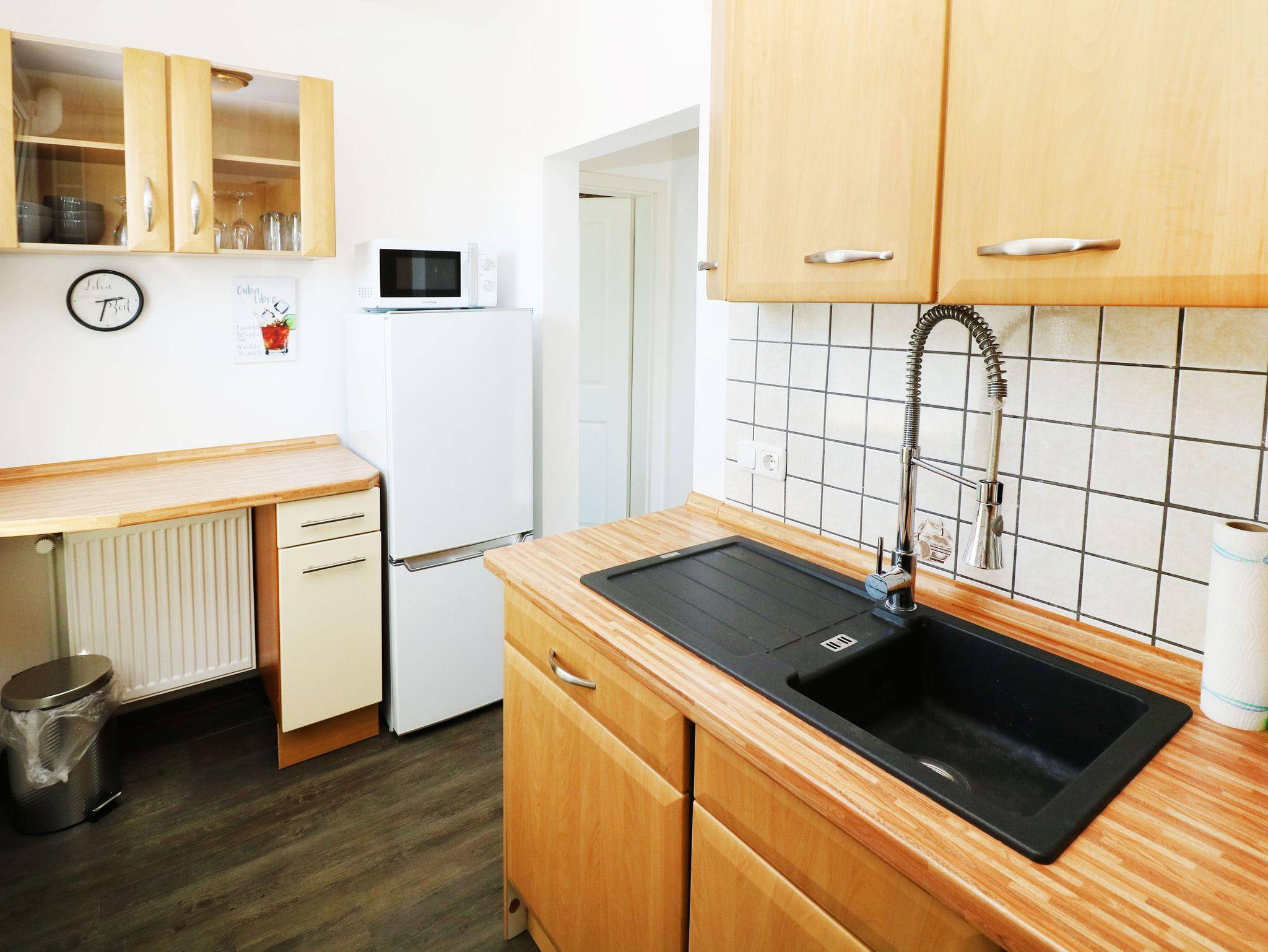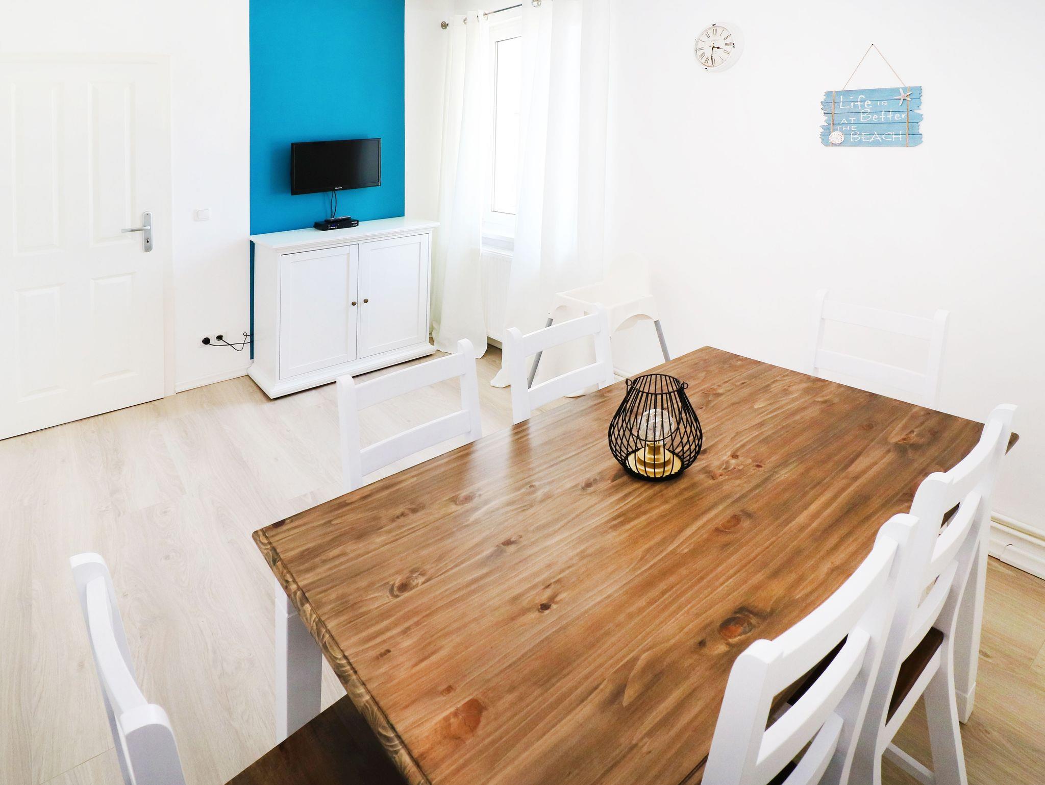 • Die Unterkunft Ferienwohnung Aurora bietet Übernachtungsmöglichkeiten für 6 Personen mit kostenlosem WLAN und ist 700 m von Strand in Zinnowitz. Diese Ferienwohnung befindet sich in einer Gegend mit Möglichkeiten zum Wandern und Fahrradfahren und natürlich zum Baden am weißen Ostseestrand. Diese Ferienwohnung bietet: 1 SZ mit Doppelbett, 1 WZ mit 1 Schlafcouch für 2 Personen mit einem Flachbild-TV, 1 Durchgangszimmer mit Esstisch und Schlafcouch für 2 Personen, 1 Küche mit Vollausgestatteung wie mit einem Kühlschrank und einem Geschirrspüler; 1 Badezimmer mit einer Dusche.