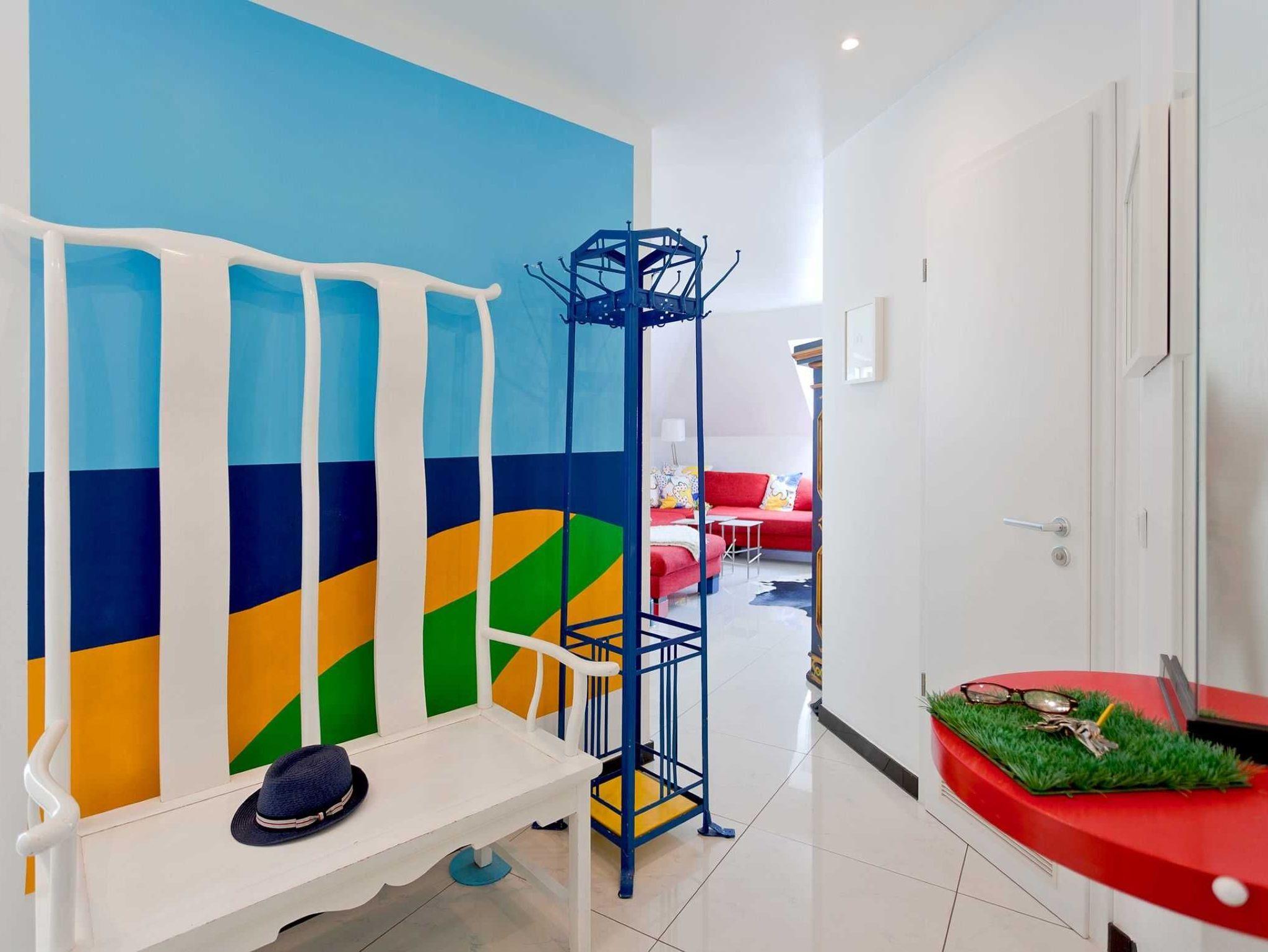 Die ausgefallene Maisonettenwohnung Jelena bietet Platz für bis zu 6 Personen. Auf 88 m² befinden sich drei Schlafzimmer, ein großzügiger Wohn- und Essbereich sowie eine Küche, zwei Badezimmer und drei Balkone.