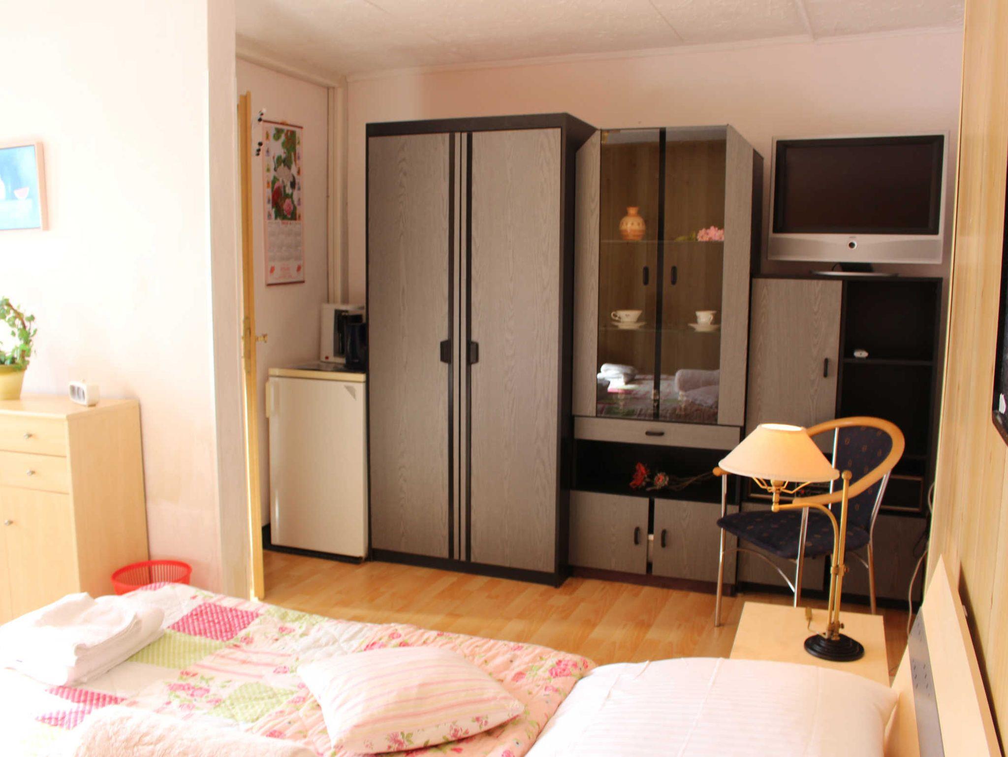 Das Ferienzimmer ist einfach aber zweckmäßig ausgestattet. Es besteht aus einem Wohnraum mit Aufbettungsmöglichkeit, DU/WC,TV, Kaffeemaschine, Toaster, Wasserkoche, Kühlschrank. Das Zimmer hat einen separaten Eingang. Kostenfreie Parkmöglichkeiten sind auf dem Grundstück vorhanden. Nebenkosten wie Strom,Wasser sowie Bettwäsche und Handtücher sind im Preis enthalten.