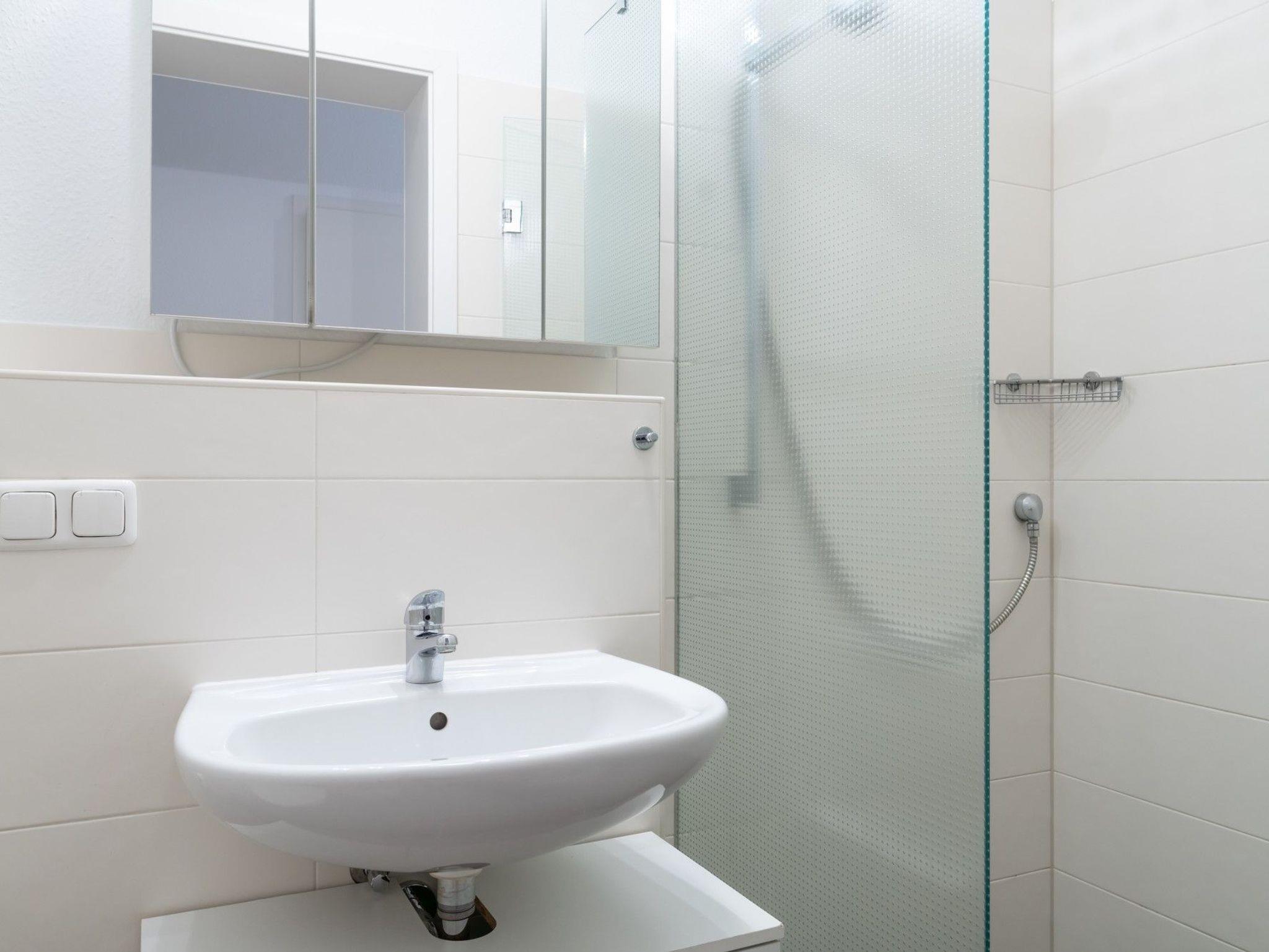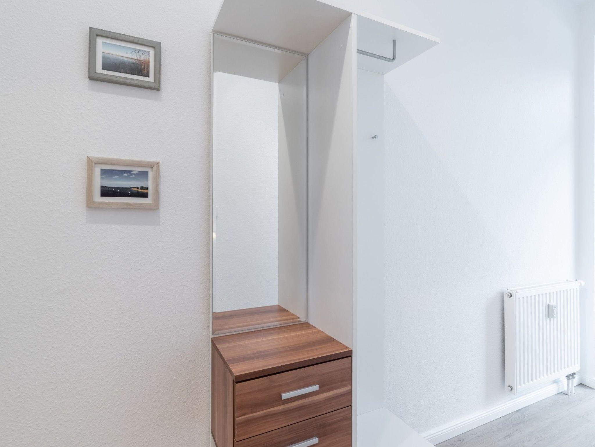 Die Ferienwohnung verfügt über einen Wohnbereich mit offener Küche, ein Schlafzimmer, ein Bad mit Dusche und eine Terrasse (Südseite).