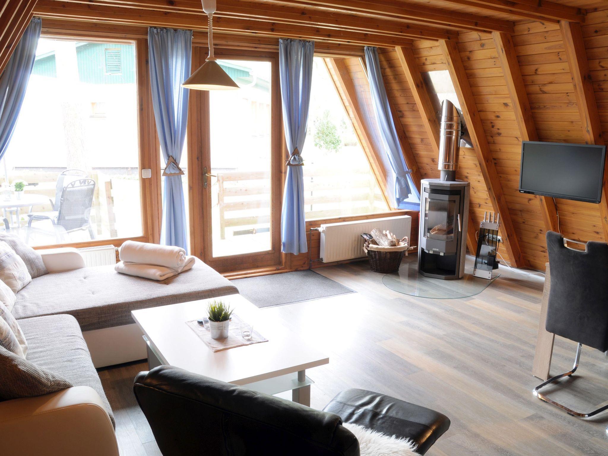 Unsere Familien-Finnhütten sind für 4-5 Personen ausgelegt. Die Möglichkeit zur Aufbettung im Wohnzimmer auf einer Schlafcouch mit einer Liegefläche von 1,30 m x 2,15 m besteht auf Anfrage für bis zu zwei Personen.