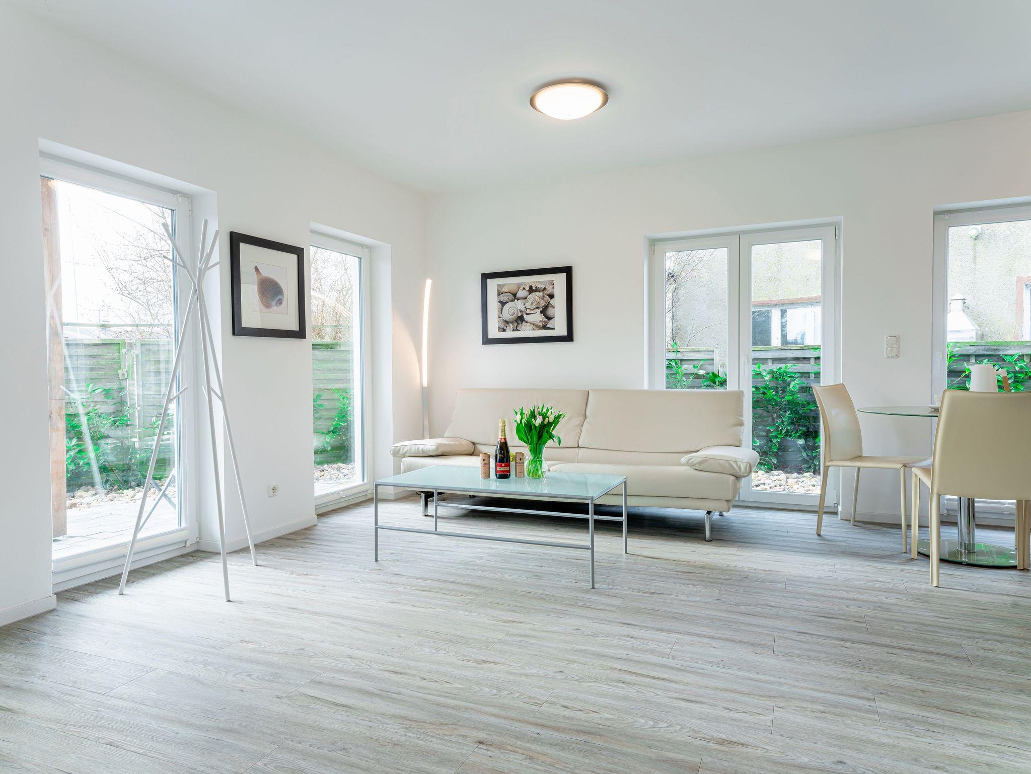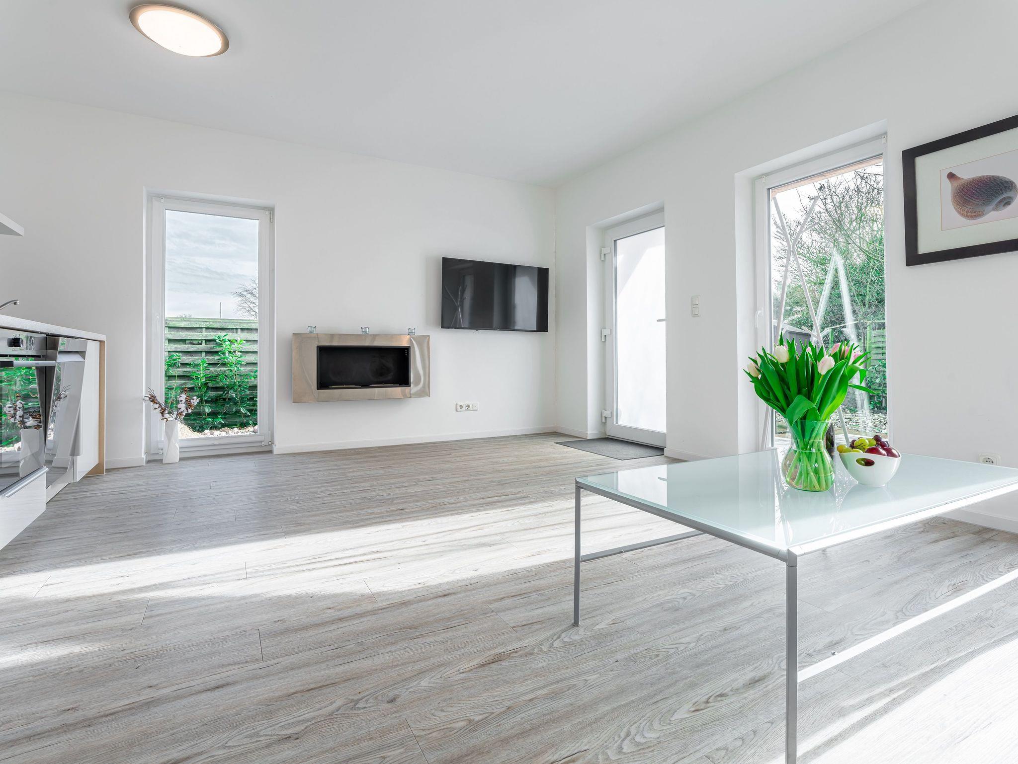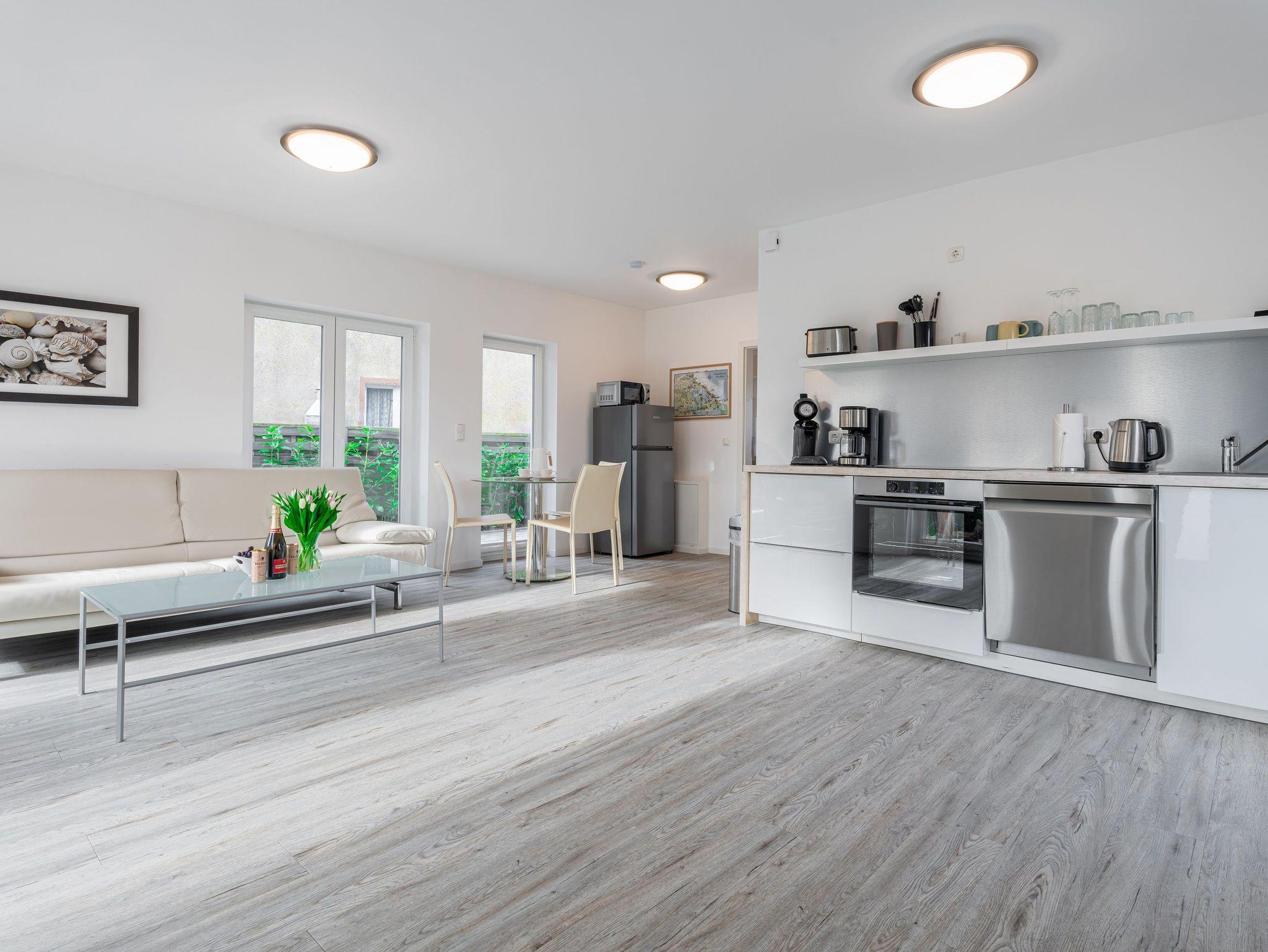 Sie suchen Ruhe? Der Alltagsstress hat Sie überschwemmt? Dann kommen Sie zu uns in die Ferienwohnung Traum mit 52 qm. Hier können Sie sich treiben lassen. 2023 wurde unser Ferienhaus Wolkentraum neu erbaut und mit einer nachhaltigen Photovoltaikanlage ausgestattet. Überall finden Sie eine moderne Fußbodenheizung, so dass Sie es zu jeder Jahreszeit kuschelig warm haben. Auf einer Ebene finden Sie eine Wohnküche, mit einem großen Sofa (80x200), wo auch eine Person schlafen kann. Im Schlafzimmer sind zwei Schlafplätze in einem Doppelbett (160x200). Nach einem ausgiebigen Frühstück, vielleicht sogar auf unserer Terrasse, entscheiden Sie, wohin Sie sich treiben lassen wollen: Ob landeinwärts Richtung Achterwasser oder mit einem 20-minütigen Spaziergang an den kilometerlangen Sandstand der Ostsee. Ihr Rückweg führt Sie vorbei an der schönen Seebrücke und den vielen kleinen Lädchen von Zinnowitz, die regelrecht zum Schlendern einladen. Kommen Sie dann erschöpft in die Wohnung zurück, wartet schon eine heiße Dusche auf Sie. Wie wäre es zum Ausklang eines romantischen Abends mit etwas Leckerem vom rustikalen Außengrill auf der Terrasse oder einem Rotwein am kuscheligen Bio-Kamin? Legen Sie die Beine hoch und entspannen Sie sich. Bei uns bleiben keine Wünsche offen. Kommen Sie mit dem Auto oder vielleicht ganz sportlich mit dem Fahrrad? Für beides haben wir selbstverständlich einen Platz auf dem Grundstück. Das ist noch längst nicht alles. Sie finden bei uns kostenfreies WLAN, Smart-TV mit Streamingfunktion, Geschirrspüler, Kühlschrank mit Gefrierfach, Backofen mit Induktions-Kochfeld, Mikrowelle, Wasserkocher, Kaffeemaschine, Kaffeepadmaschine, Toaster, Föhn, Babybett, Babyhochstuhl und vieles mehr.