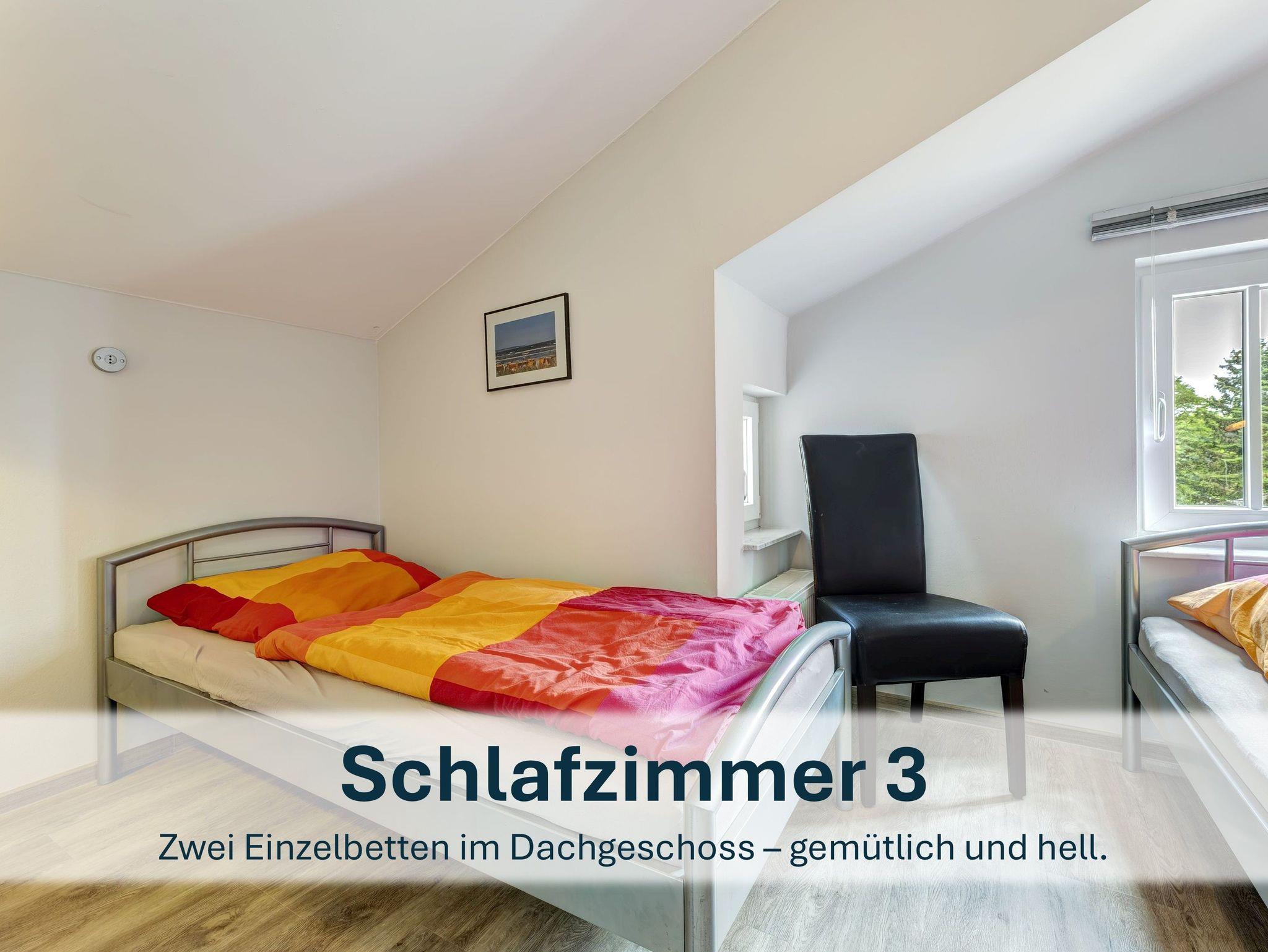 ? Schlafzimmer mit zwei Einzelbetten & Kommode,