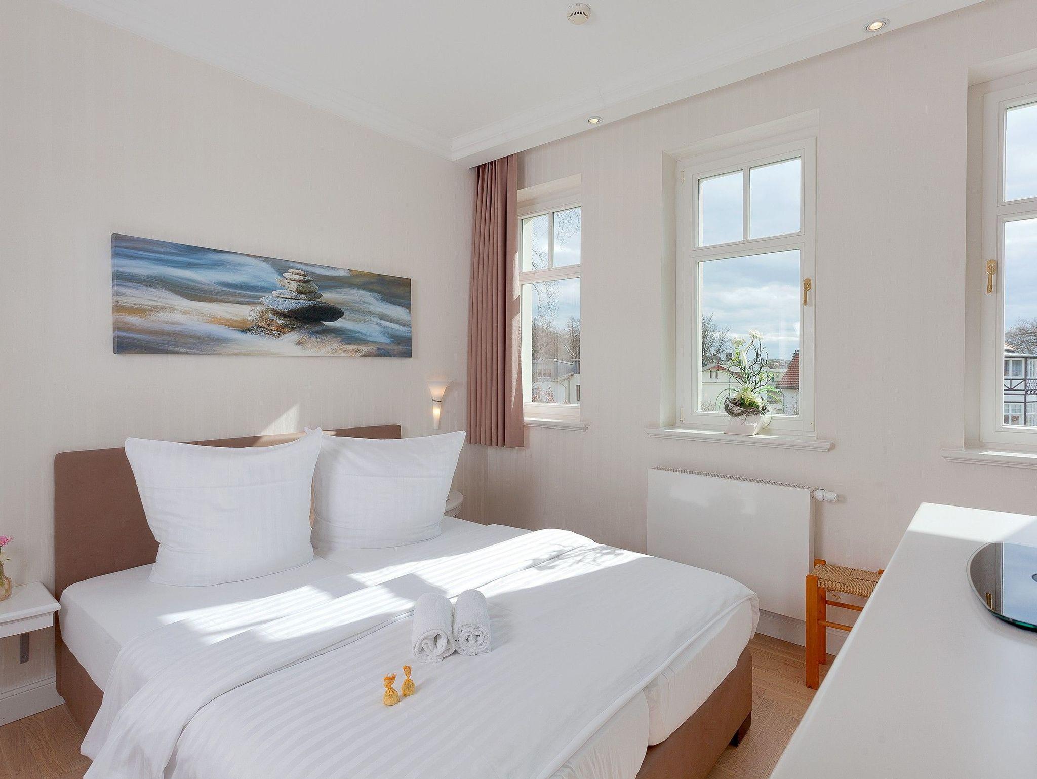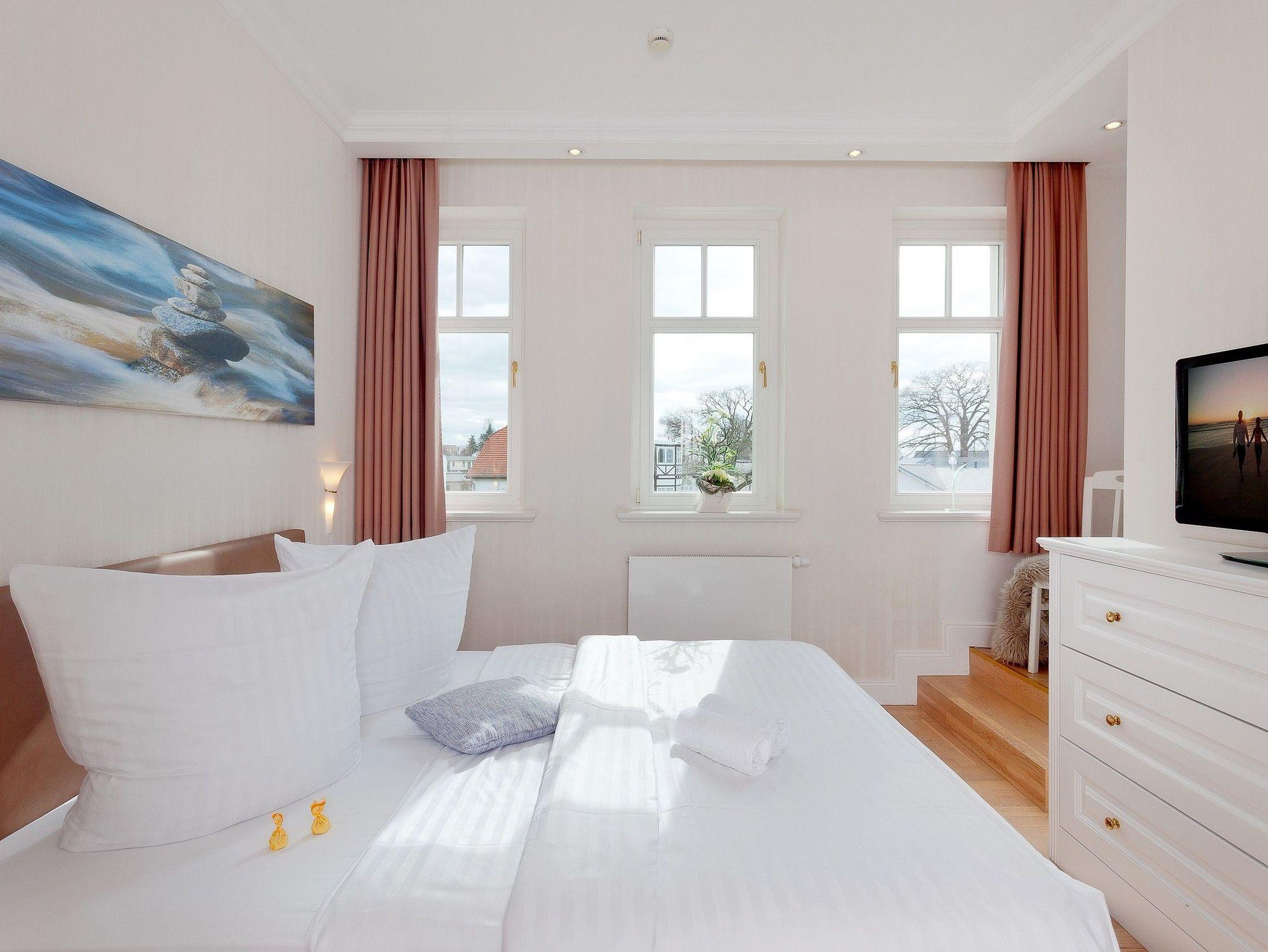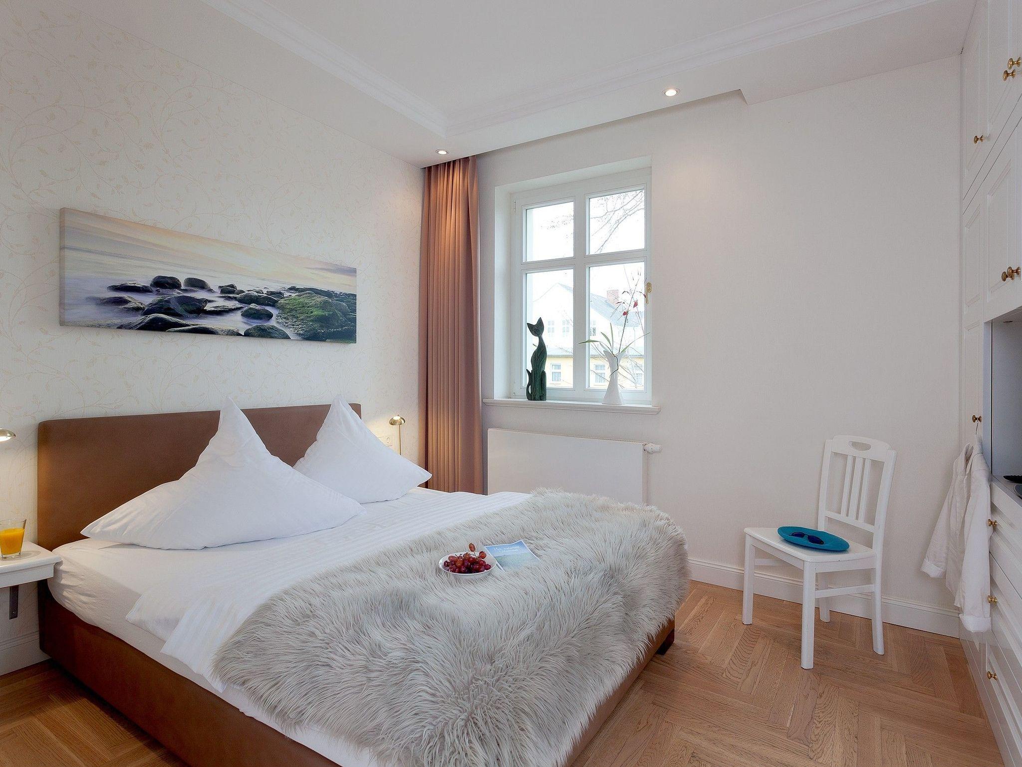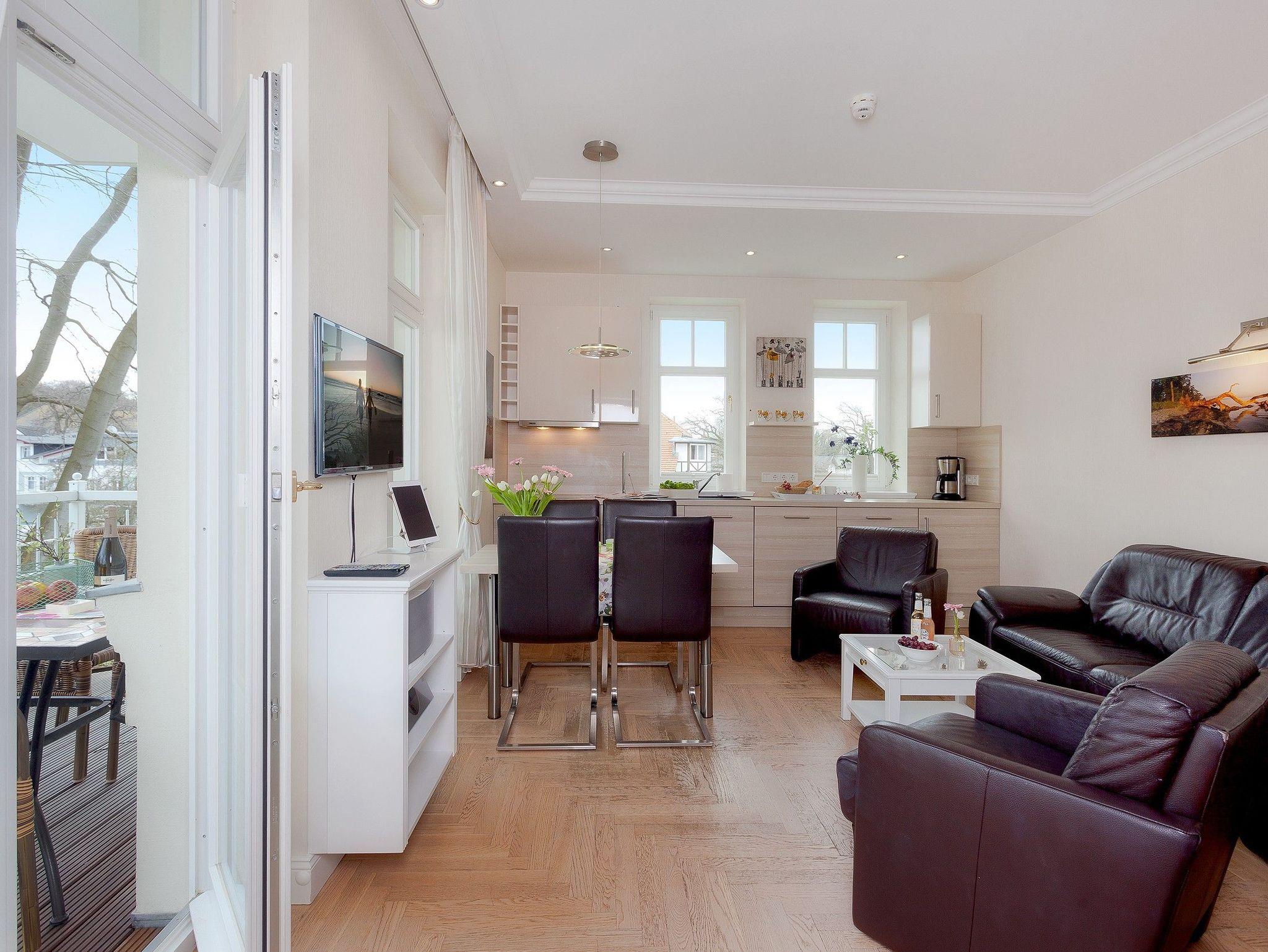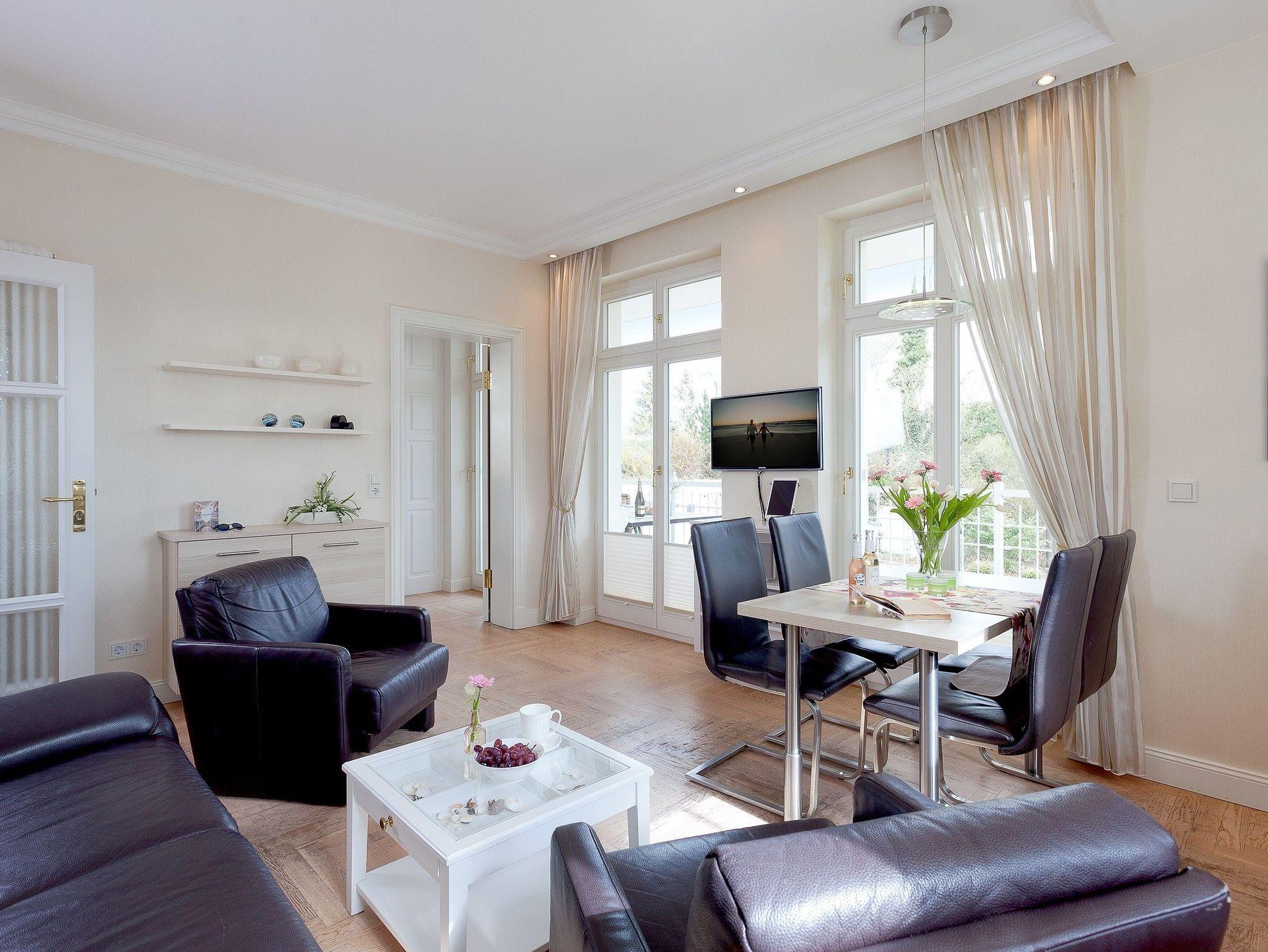 Das ruhige, familienfreundliche 3-Zimmer-Appartement mit Südost-Ausrichtung befindet sich im 1. Obergeschoss der Villa Gruner und bietet auf 56 Quadratmetern ausreichend Platz für bis zu vier Personen. Es eignet sich ideal für Familien mit Kindern sowie für die Gäste, die auch im Urlaub auf ihren treuen Wegbegleiter ? dem Hund ? nicht verzichten möchten. Der helle Wohnbereich ist modern und freundlich eingerichtet; ein moderner 50-Zoll-OLED-Smart-TV sowie kostenfreies, leitungsstarkes WLAN stehen Ihnen während Ihres Aufenthaltes zur Verfügung. Auf dem sonnigen Balkon können Sie entspannt in den Tag starten und die Morgensonne genießen.