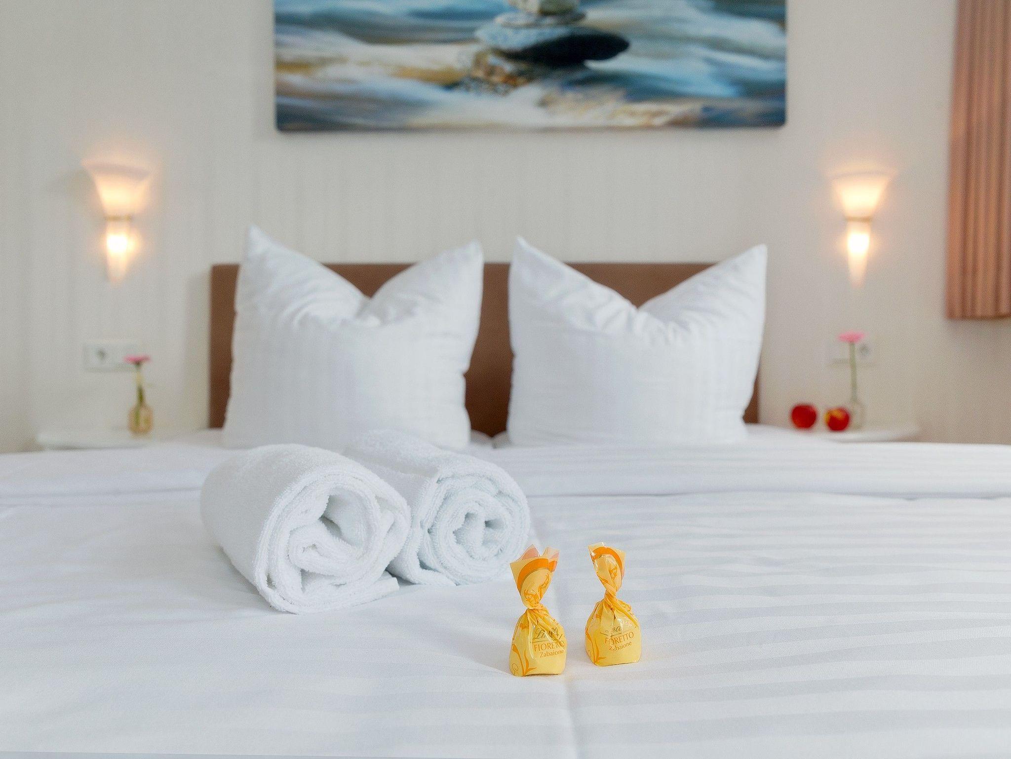 Damit Sie Ihre Auszeit von Beginn an entspannt genießen können, sind die Betten bei Ihrer Ankunft bereits bezogen. Ein Duschtuch und ein kleines Handtuch liegen ebenfalls für Sie bereit. Das moderne, helle Badezimmer mit Fenster ist mit einer ebenerdigen Echtglasdusche, einem WC und einem Haartrockner ausgestattet.
