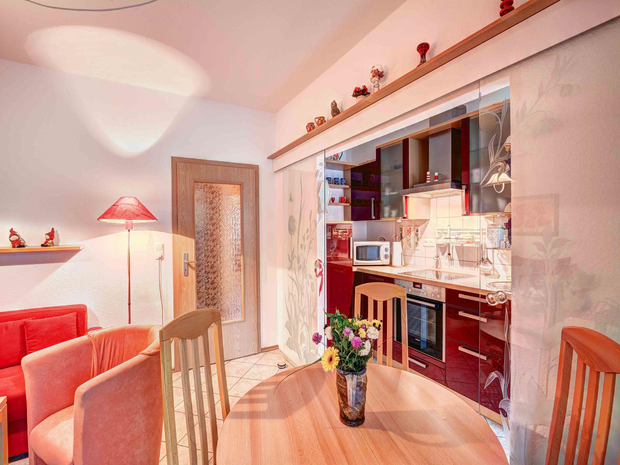 In der Küche finden Sie alles, was Sie für die Zubereitung leckerer Mahlzeiten benötigen. Der Esstisch lädt zu gemeinsamen Mahlzeiten ein, während die gut ausgestattete Küchenzeile mit Kochfeld, Kühlschrank (mit Frostfach), Mikrowelle und Toaster keine Wünsche offenlässt. Der morgendliche Kaffee oder Tee ist dank der Kaffeemaschine und dem Wasserkocher im Handumdrehen fertig - der ideale Start in den Tag!