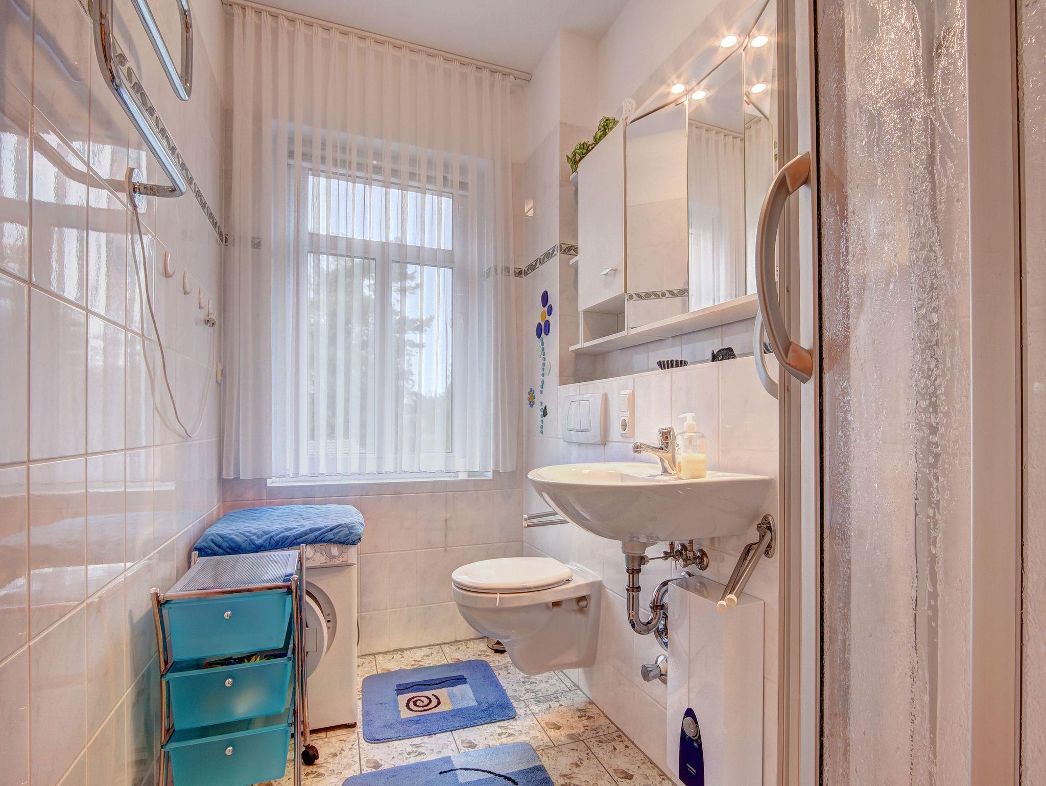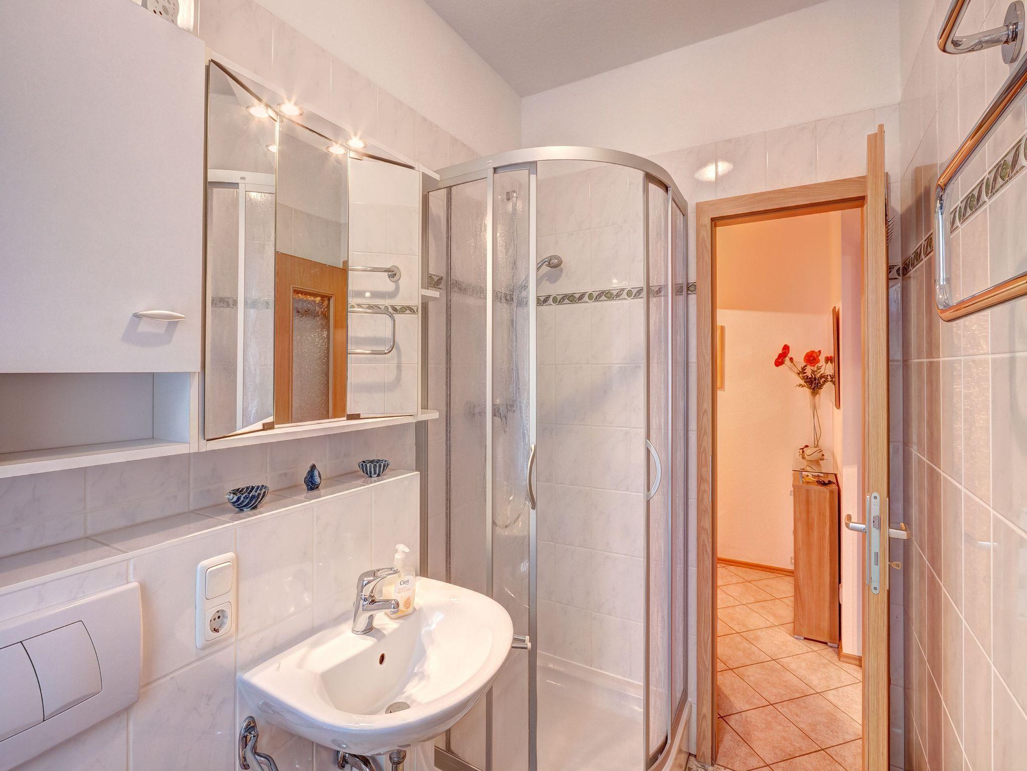 Das Tageslichtbad bietet eine erfrischende Dusche und ein WC.