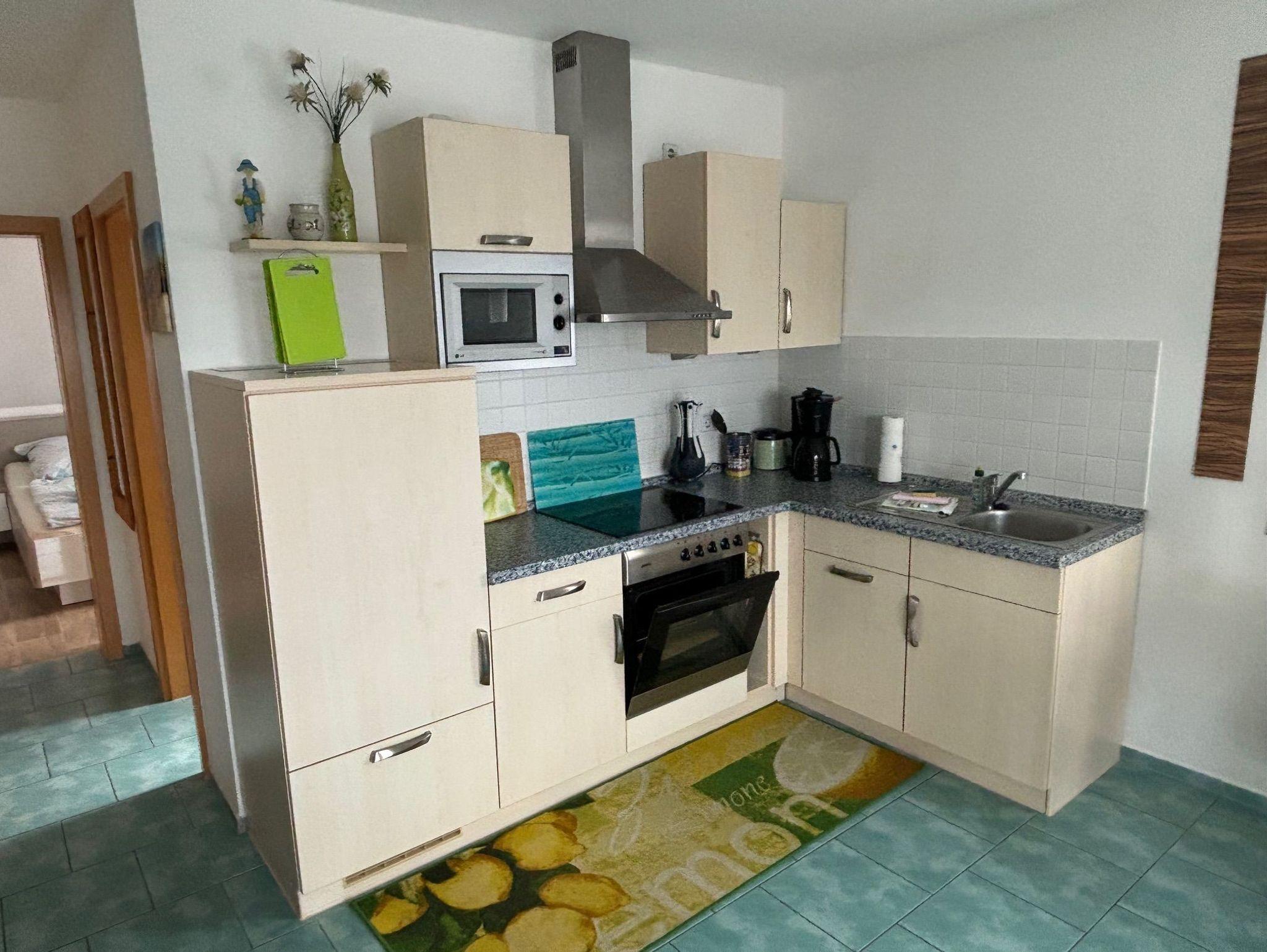 Die helle 2-Raum-Wohnung GREEN ist im Obergeschoss unseres Ferienhauses gelegen und bietet Ihnen mit 47 m² die perfekte Unterkunft für Ihren Urlaub am Meer. Hier finden Sie alles, was Sie für Ihren erholsamen Urlaub benötigen. Die Räumlichkeiten teilen sich in ein Schlafzimmer mit Doppelbett, ein Wohnzimmer mit offener, komplett ausgestatteter Einbauküche und Doppelbettcouch (Übernachtungsmöglichkeit für 2 weitere Personen) sowie ein Tageslichtbad mit Dusche und WC auf. Bestenfalls wohnen Sie hier zu weit, aber auch 4 Personen sind möglich.