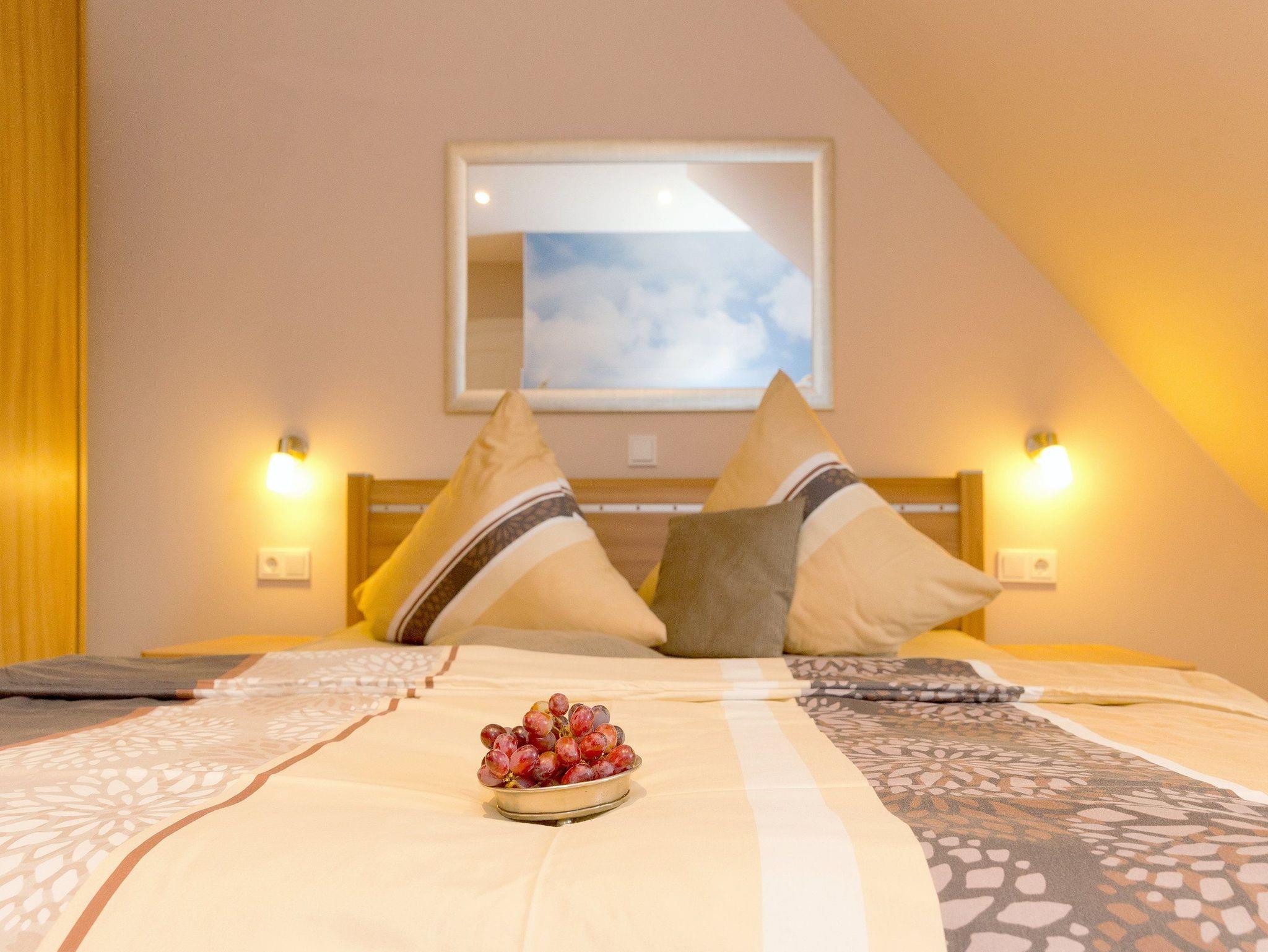Damit Sie Ihre wohlverdiente Urlaubszeit bereits am Anreisetag in vollen Zügen genießen können haben wir das Bett für Sie und das für Ihre lieben Mitreisenden bereits bezogen und ein Duschtuch sowie ein kleines Handtuch bereitgelegt. Im Badezimmer befindet sich eine ebenerdige, vollverglaste Regenwalddusche und ein Doppelwaschtisch sowie ein WC und ein Haarfön.