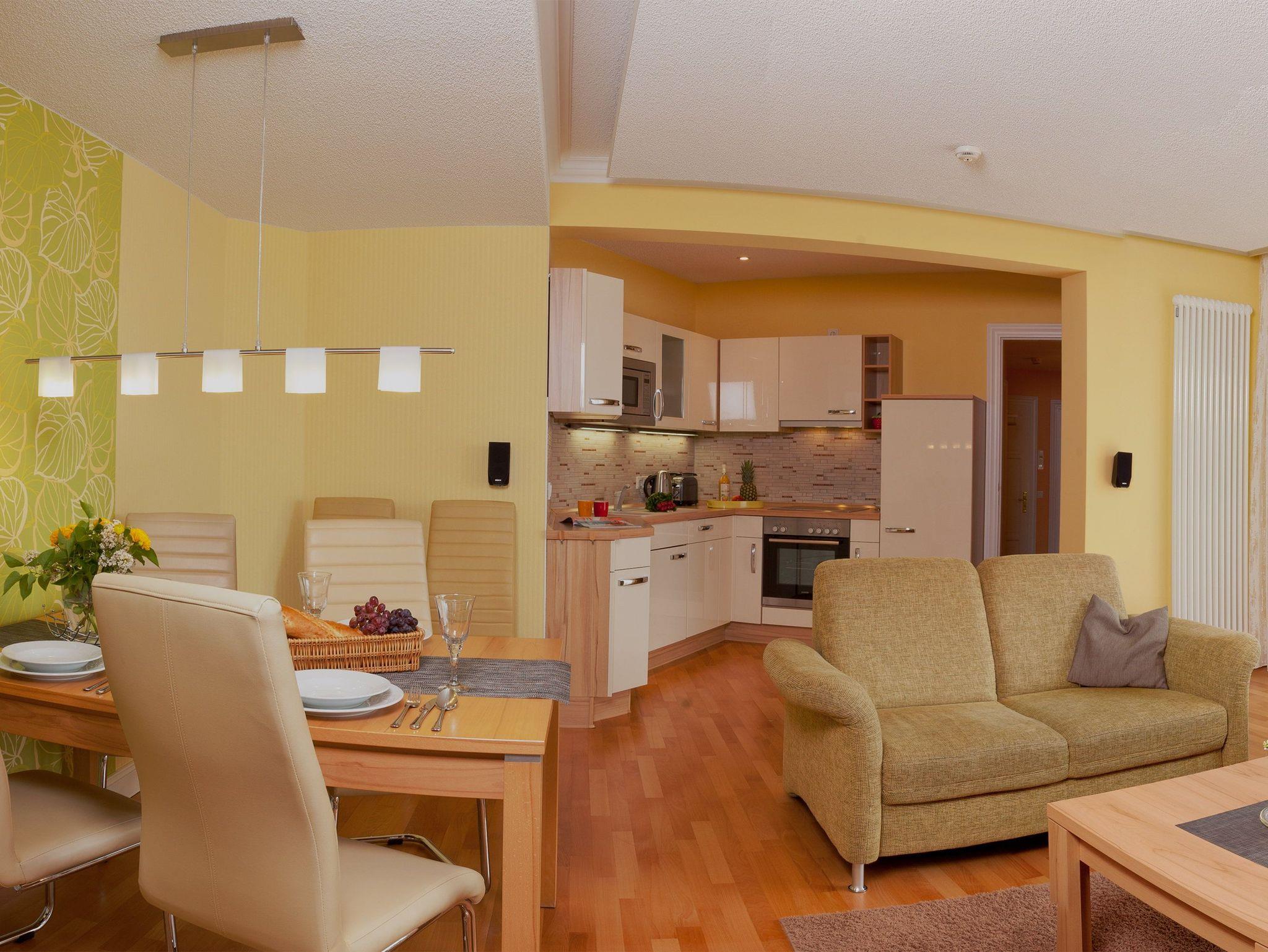 Ein Parkplatz direkt am Haus, Nutzung des Saunabereiches, ein gemeinschaftlicher Fahrradabstellraum sowie ein WLAN-Zugang stehen kostenfrei während Ihrer Urlaubszeit mit zur Verfügung und runden den Urlaubskomfort dieses Appartements ab.