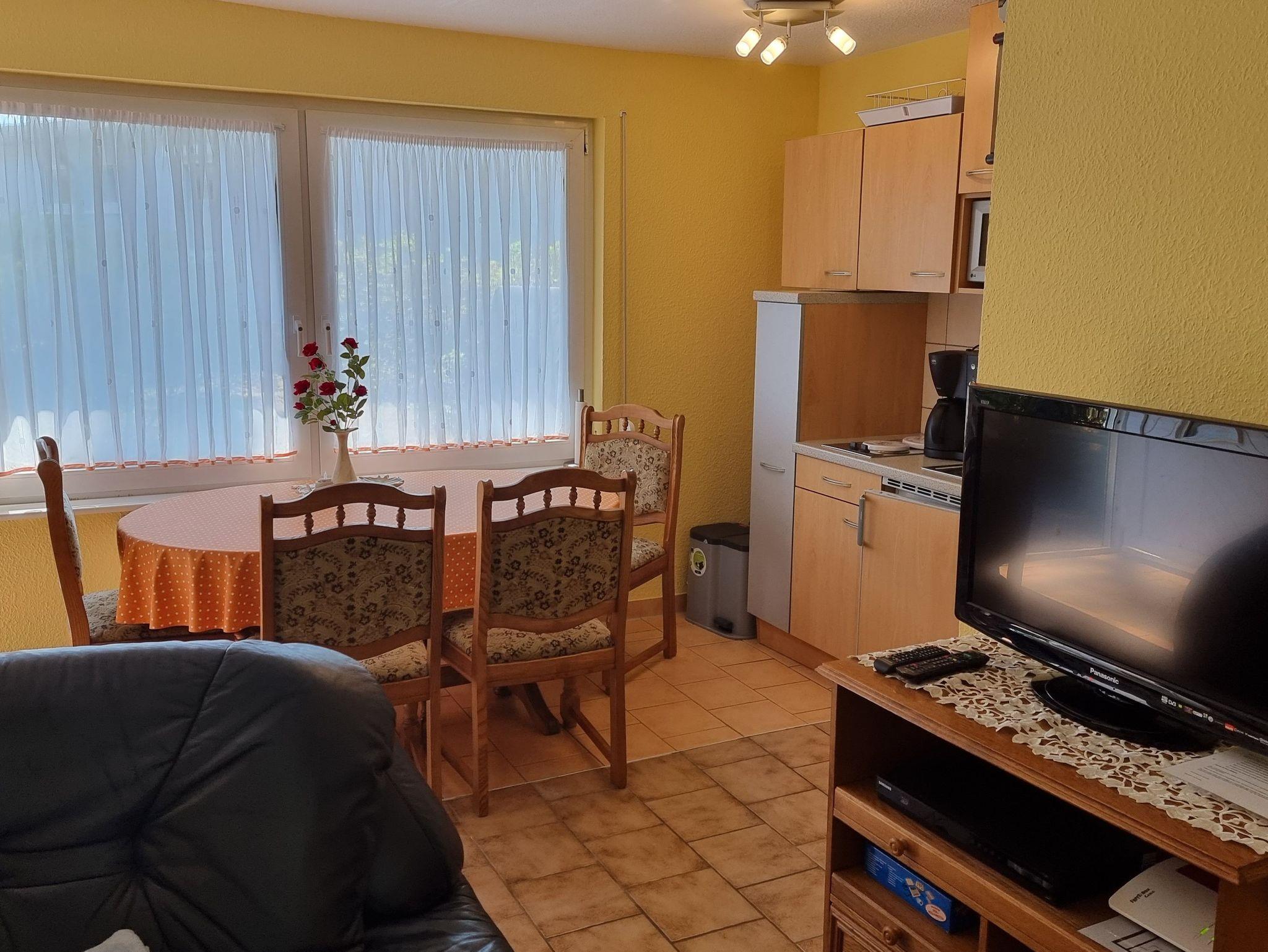 gut ausgestattete Küche mit Herd, Wasserkocher, Gläser, Geschirr, Besteck, Kaffeemaschine, Toaster, Kühlschrank, TV + Kabel, Radio, Kinderreisebett und Hochstuhl